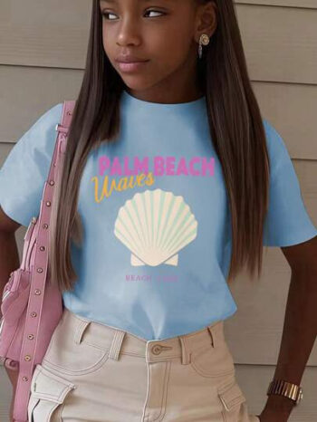 1pc Girls Casual English Letter Graphic Crew Neck Short Sleeve T-Shirt, Young Student Summer Wear – Inspiring Imagination And Self-Expression TG-8-12-00036