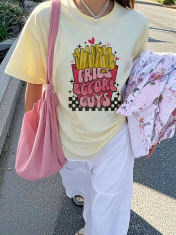 1pc Casual Letter Graphic Round Neck Short Sleeve T-Shirt For Girls, Summer Student Youth Apparel – Minimalist English Text Design Inspires Imagination And Self-Expression TG-8-12-00037