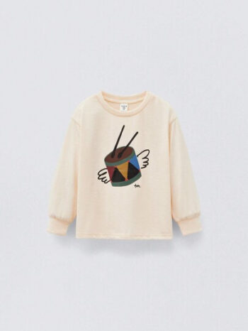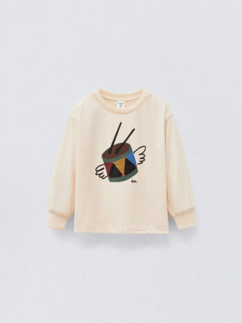THE HAPPY LOOK Young Boys Beige Drum Print Knitted Pullover Puff Sleeve T-Shirts, Casual Style YB00084