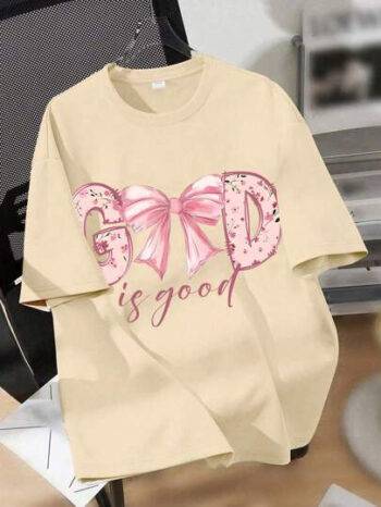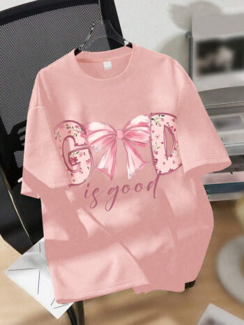 Tween Girl Casual Minimalist Girl Graphic Bow Letter Slogan Print Pullover T-Shirt, Round Neck Short Sleeve, New Spring/Summer Collection TG-8-12-00091