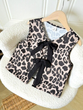 Tween Girls Leopard Print Front Knot Sleeveless Blouse TG-8-12-00018