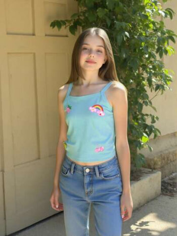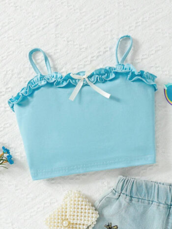 Tween Girls Frill Trim Bow Decor Cami Top For Summer TG-8-12-00024