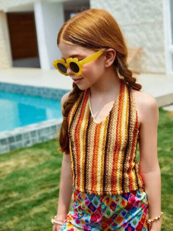 Tween Girl Retro Blue & White Retro Print Cropped Camisole Top TG-8-12-00002