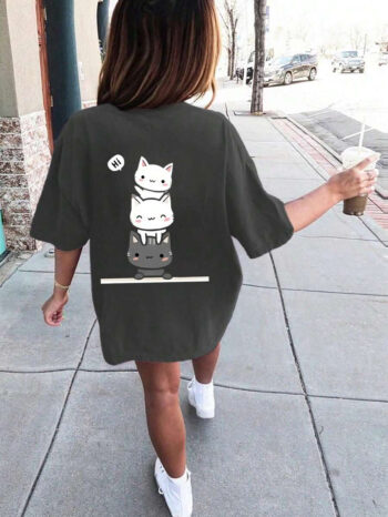 Tween Girls Casual Cat Print Round Neck Short Sleeve T-Shirt, Summer Top TG-8-12-00097