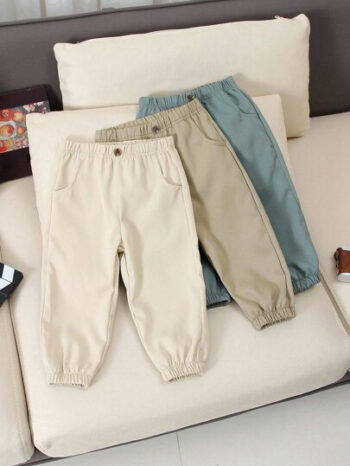 Souflis Souflis 3pcs/Set Toddler Baby Boys Casual Elastic Waist Pocket Pants, Button Decor, All-Match Style, Suitable For Daily Wear, School, Travel, Sports, All Seasons Unisex S Pants For Baby Pants For Baby Boy Baby Boy Clothes Pants Unisex Baby Pants BB00092