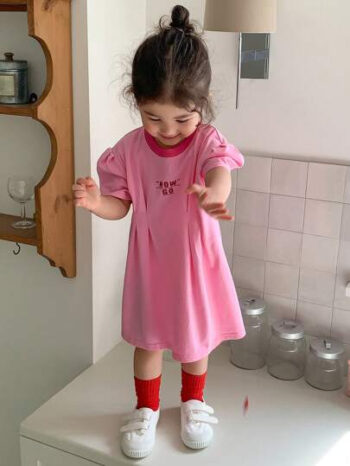 Hapijoa Toddler Girls Casual Letter Print Round Neck Short Sleeve Dress BG00047