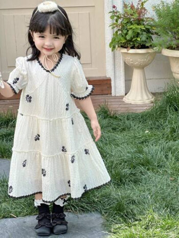 DAZY Toddler Girls’ V-Neck Embroidered Casual Loose Cute Summer Short Sleeve Dress BG00051