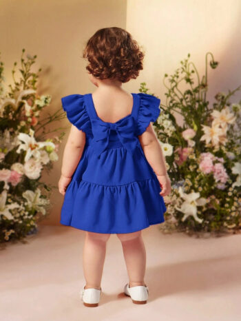 SHEIN Baby Girl Summer & Simple Solid Color Ruffle Hem Sleeveless Dress, Detachable Bowknot BG00079