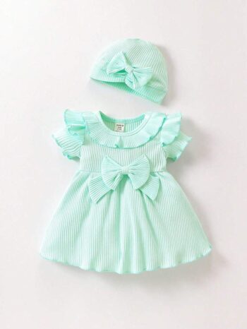 SHEIN Baby Girl Newborn Ruffle Trim Bow Front Dress NB00016