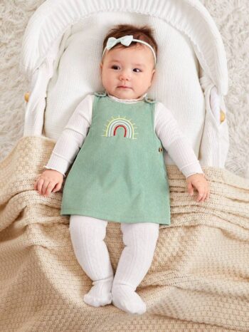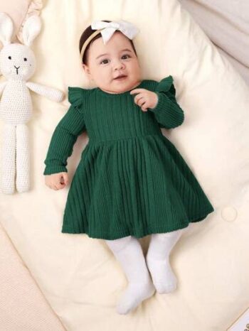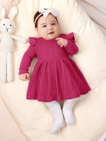 SHEIN Newborn Baby Girls Casual Simple Adorable Knit Elastic Solid Color Long Sleeve Dress NB00050