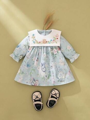 SHEIN Baby Girl’s Cute Rabbit Print Long Sleeve Dress, Spring/Summer NB00045