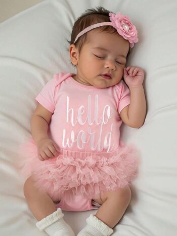 SHEIN 3 Pieces Set Embroidered “Hello World” Baby Birth Announcement Romper Set Newborn Photography Outfits Infant Coming Home Bodysuit Baby Shower Gift NB00081