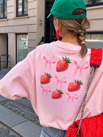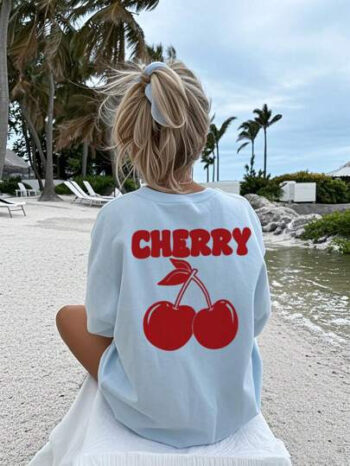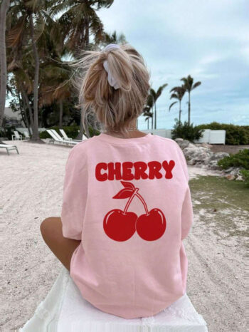A Casual Printed Round Neck Pullover Short Sleeved T-Shirt For Girls And Young Children In Summer – Delicious Cherry Provides A Unique T-Shirt For Cherry Fruit Enthusiasts Who Want To Stand Out! Tween Girl Clothes Girls Graphic Tees Summer Tops Tween Girl Clothes TG-8-12-00081