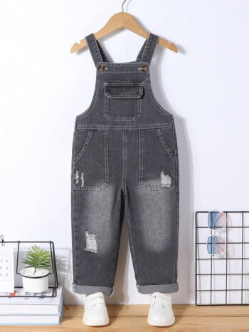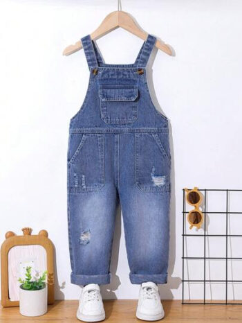 SHEIN Vintaside Kids Young Boy Acid Washed Light Blue Casual Distressed Denim Bib Overalls Summer Holiday YB00059