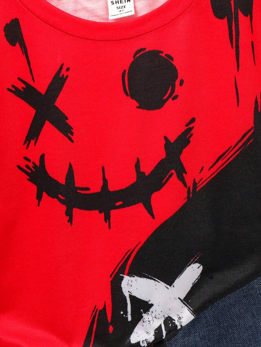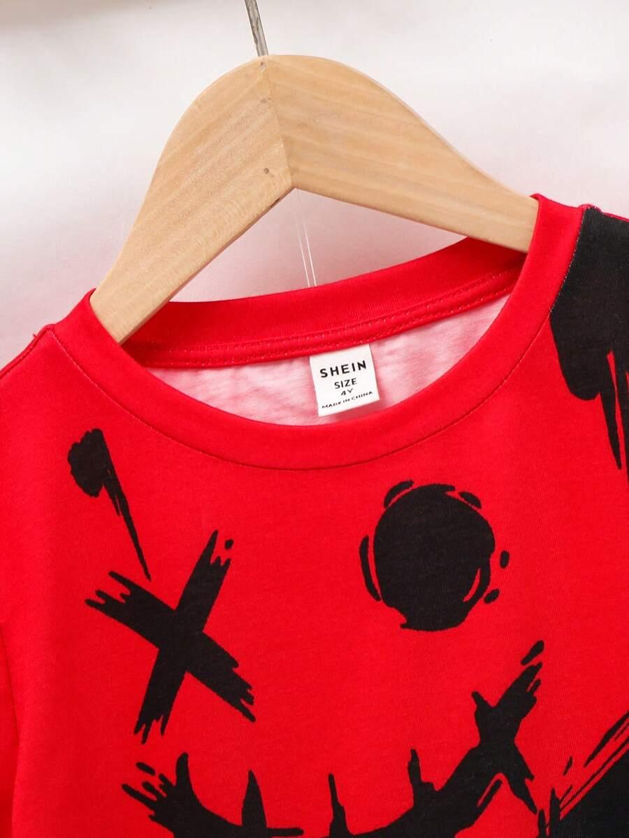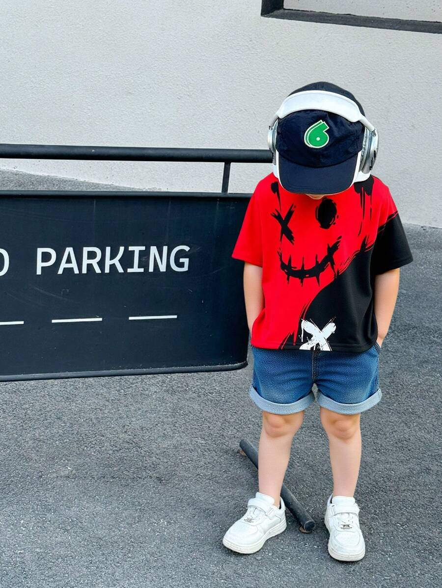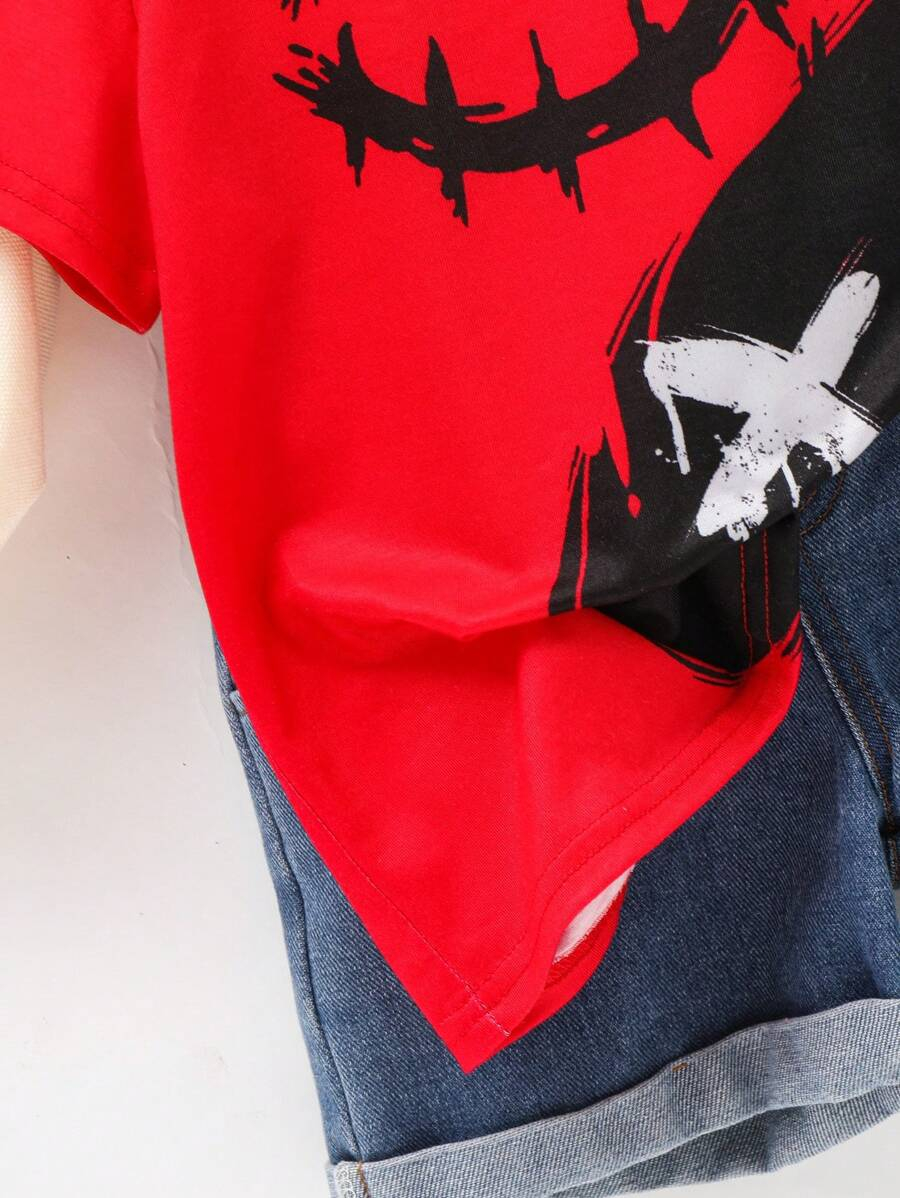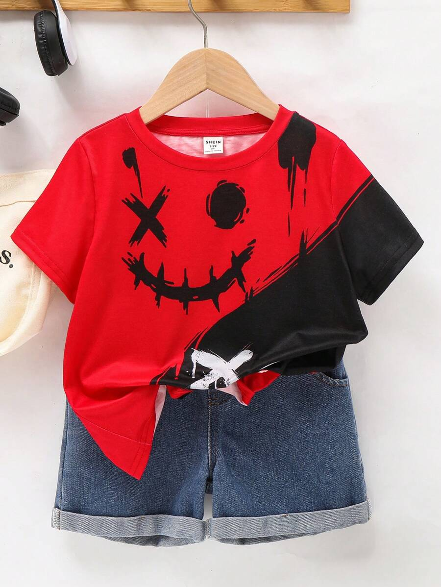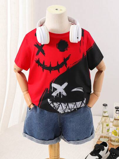 1 Piece Young Boys Boys Casual Sport Loose Street Style Graffiti Yin Yang Smiling Face Pattern Red Round Neck T-Shirt Kids Outfits Young Boy Clothes Back To School Boys Set Suitable For Birthday Party, Party, Performance, Wedding, Baptism, School Opening Ceremony Suitable For Daily Suitable For School Suitable For Travel Suitable For Sports Suitable For Spring And Summer Season YB00070
