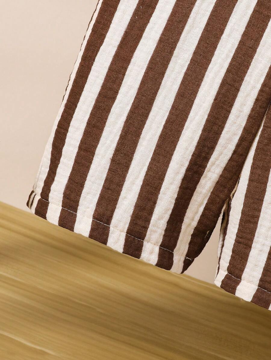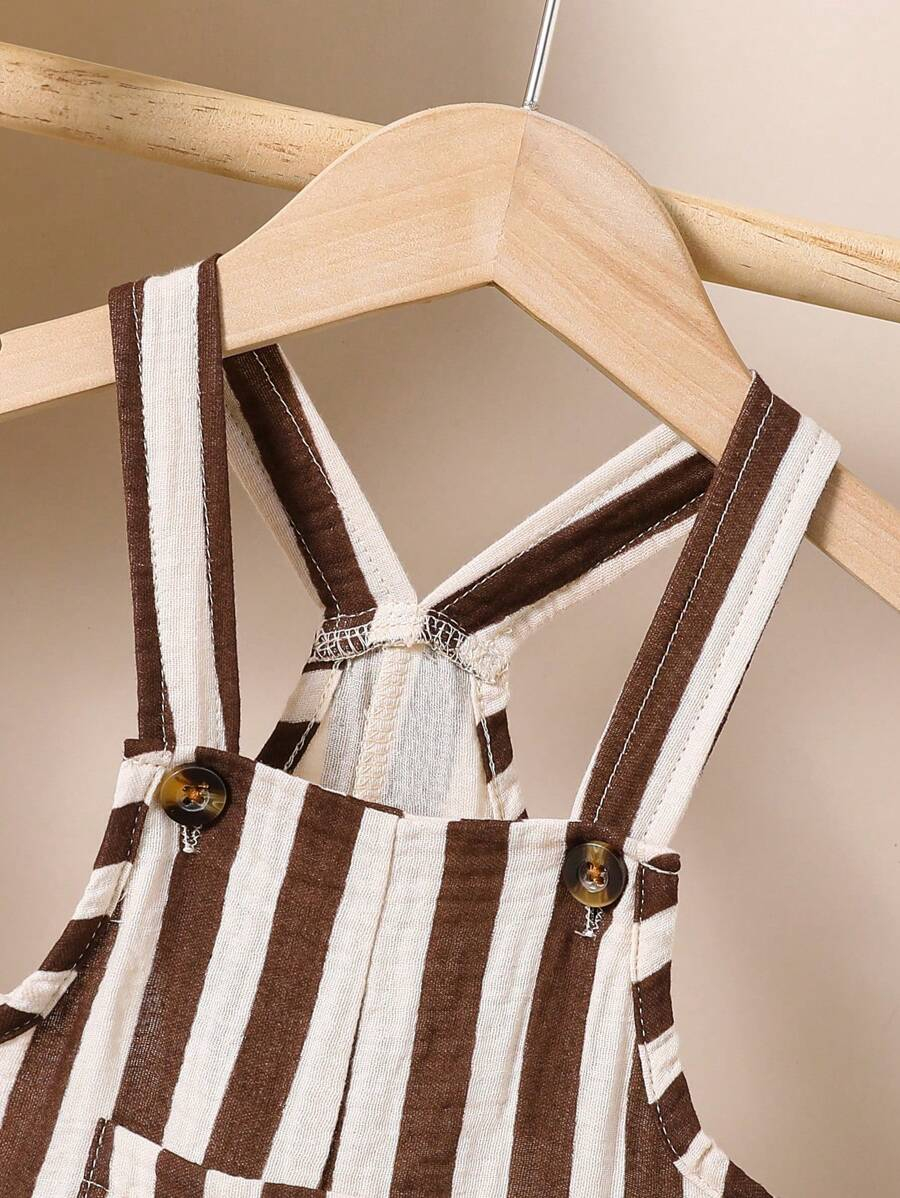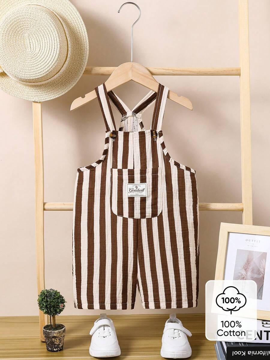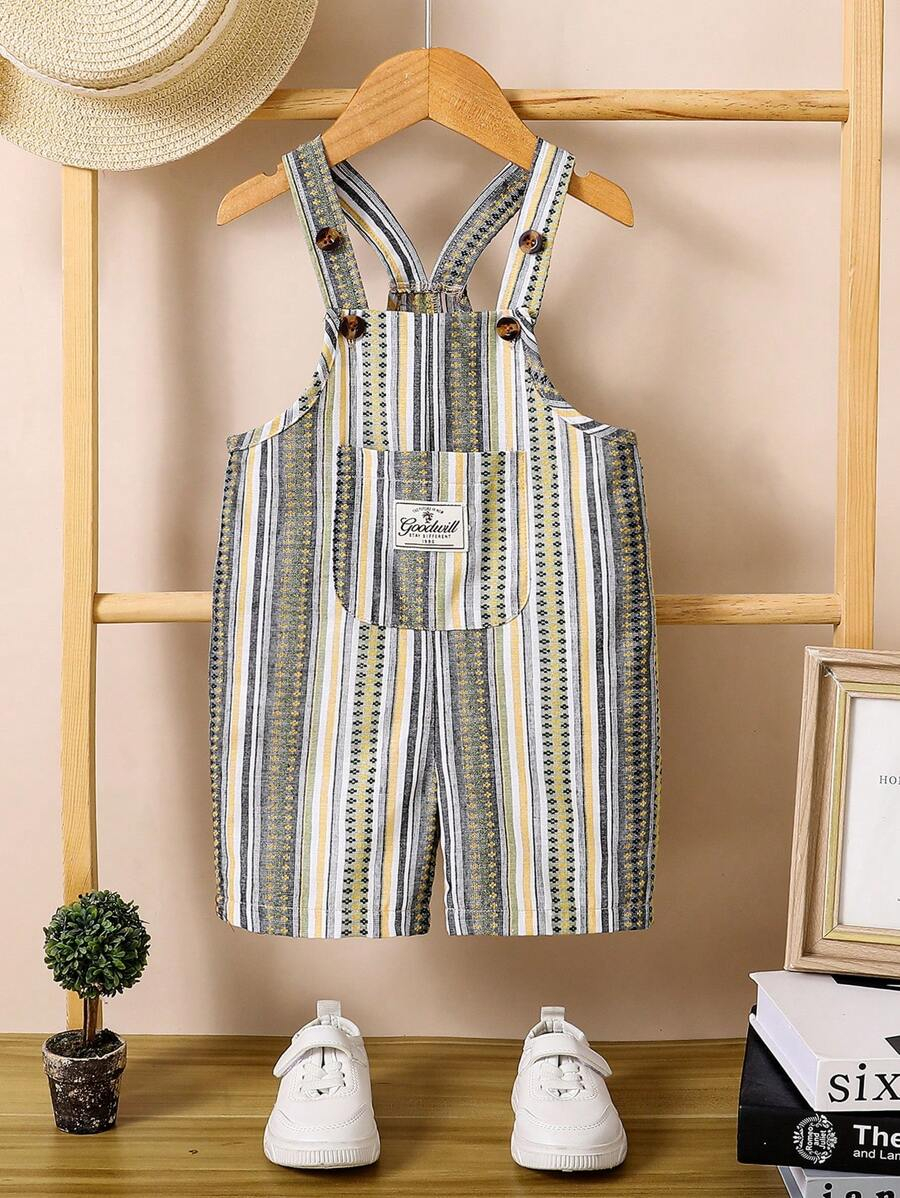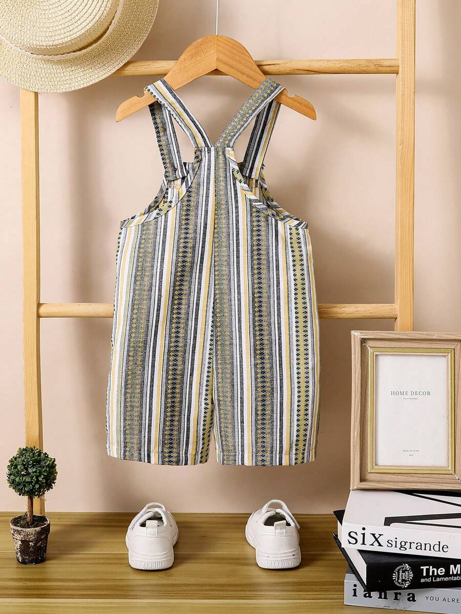1pc Baby Boys’ Casual Striped Colorblock Comfortable Double-Layered Cotton Overalls Shorts, Suitable For Daily Wear And Outdoor Activities, Summer BB00074