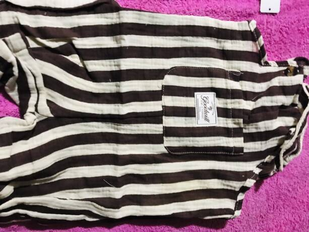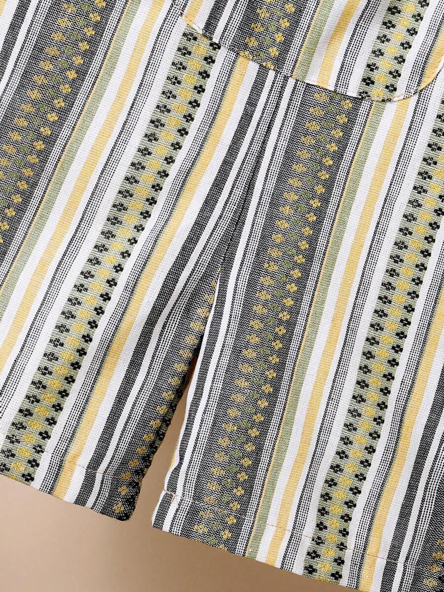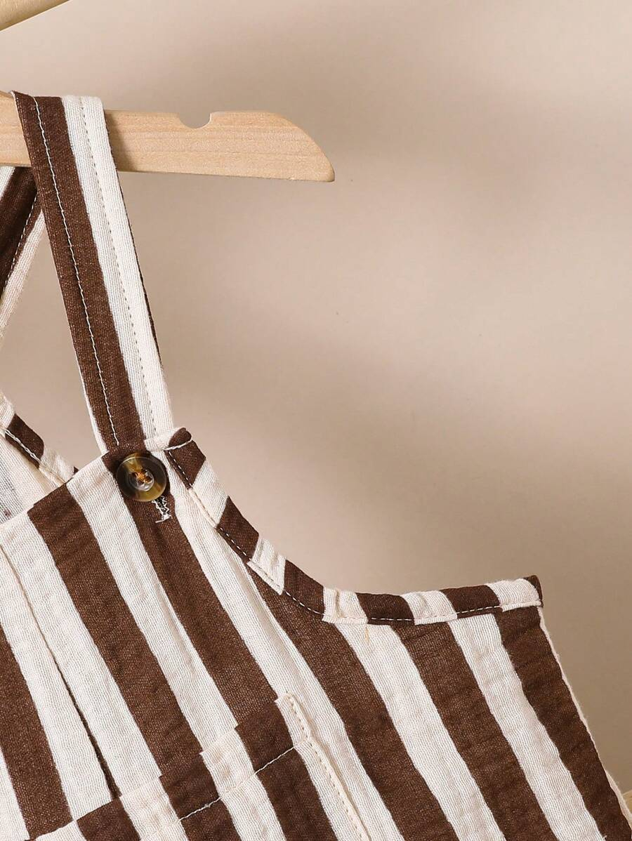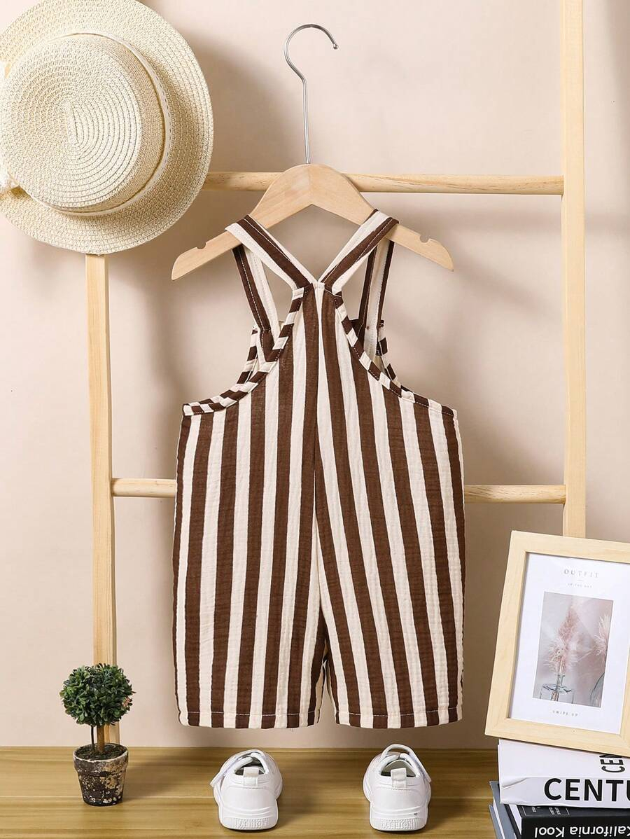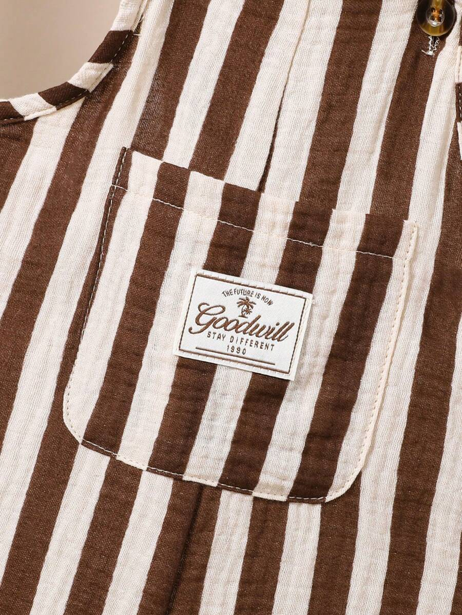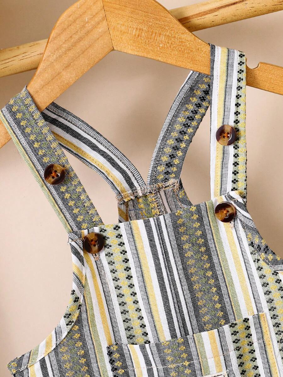 1pc Baby Boys’ Casual Striped Colorblock Comfortable Double-Layered Cotton Overalls Shorts, Suitable For Daily Wear And Outdoor Activities, Summer BB00074