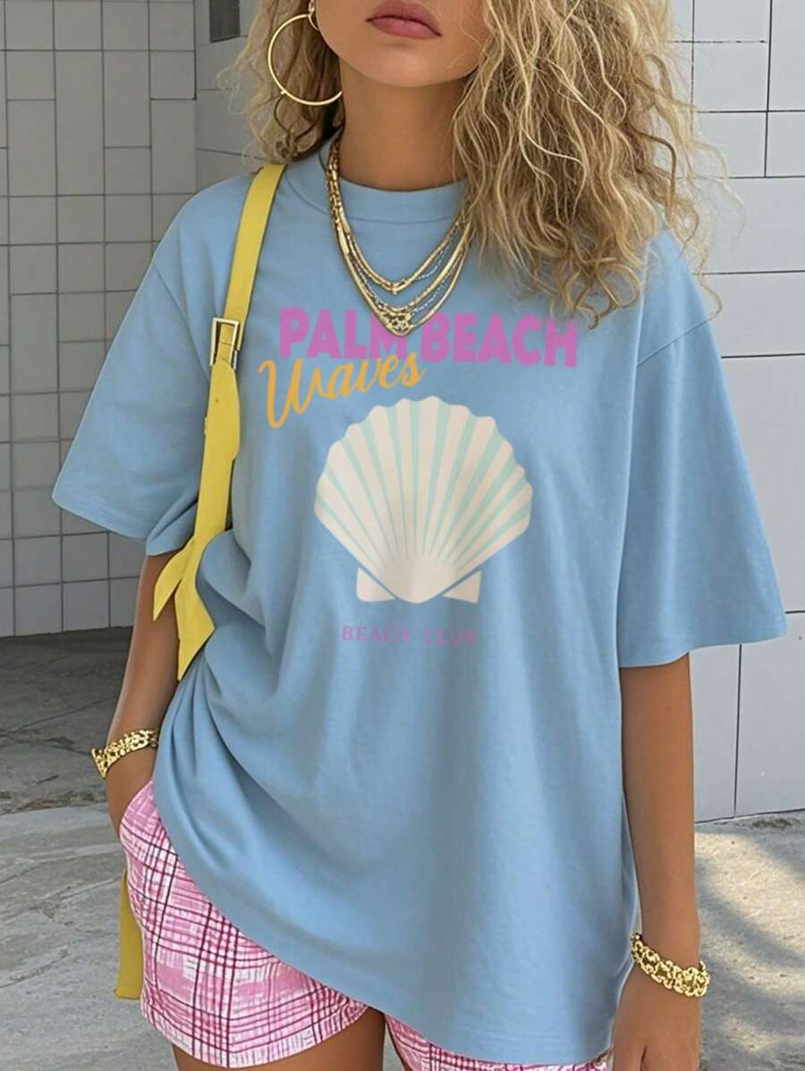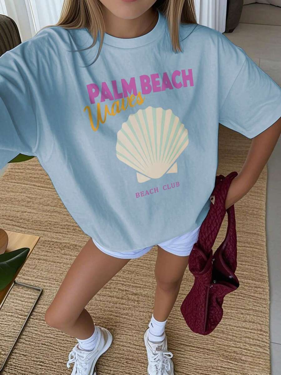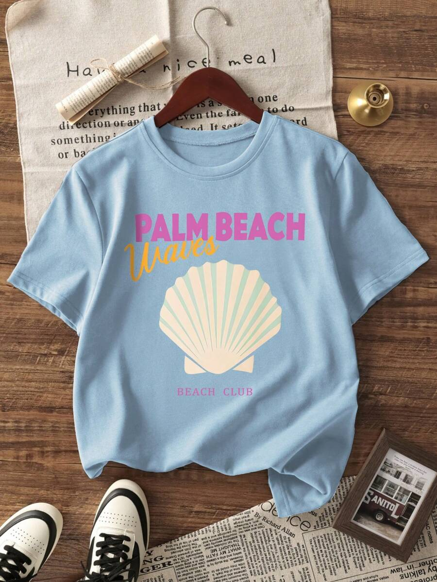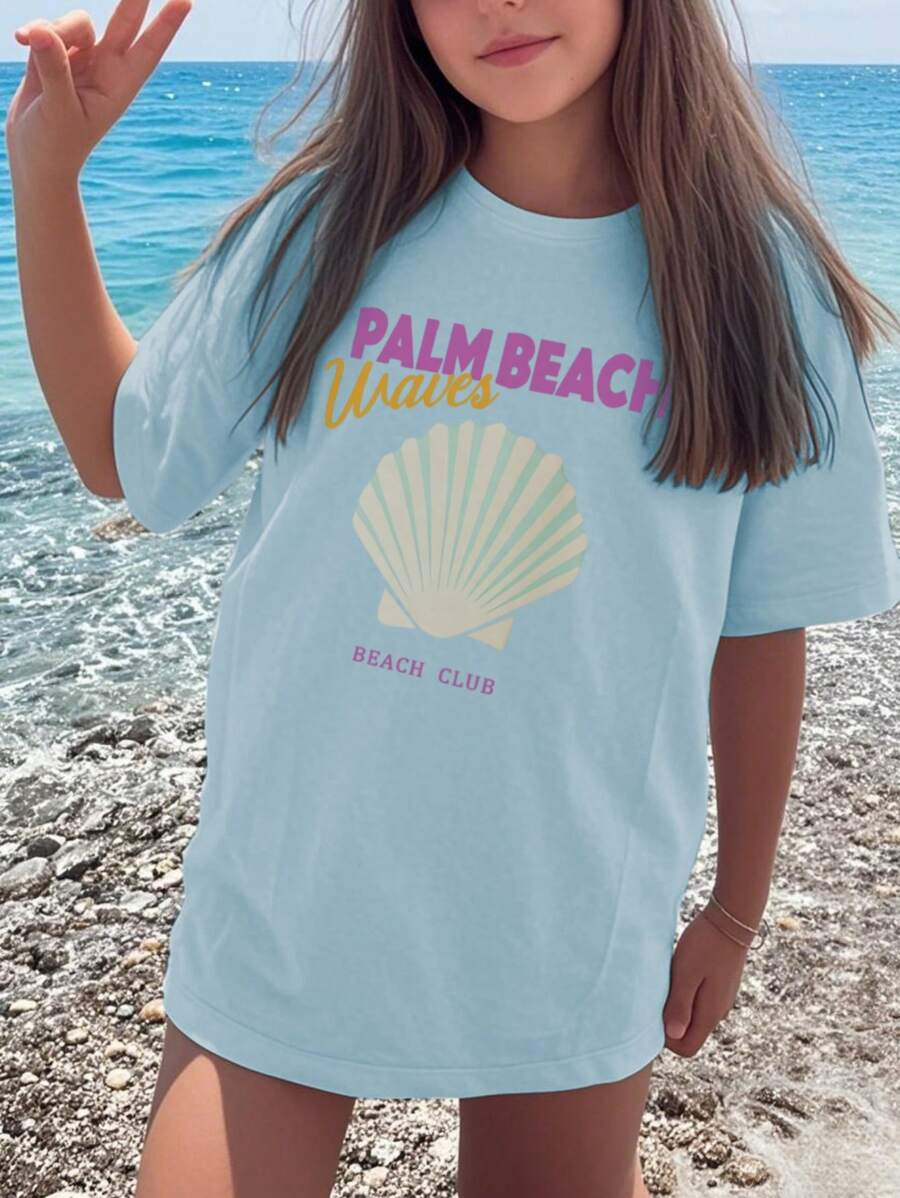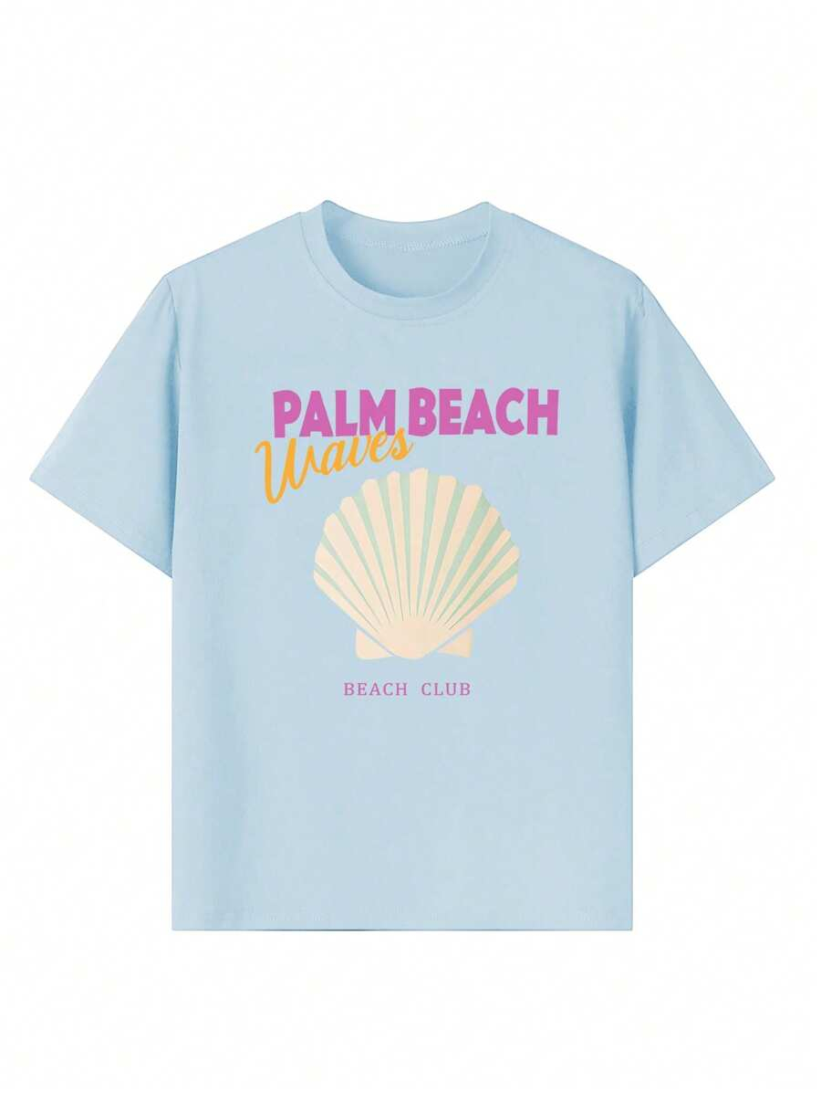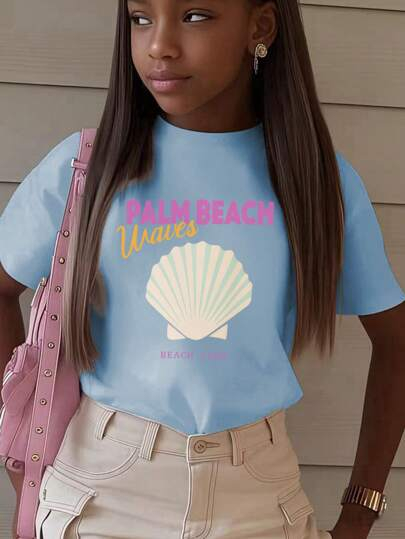 1pc Casual Letter Graphic Round Neck Short Sleeve T-Shirt For Girls, Summer Student Youth Apparel – Minimalist English Text Design Inspires Imagination And Self-Expression TG-8-12-00037
