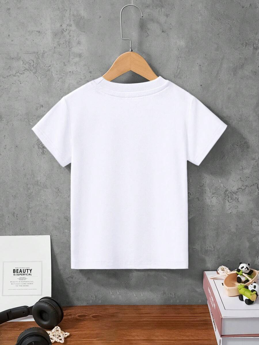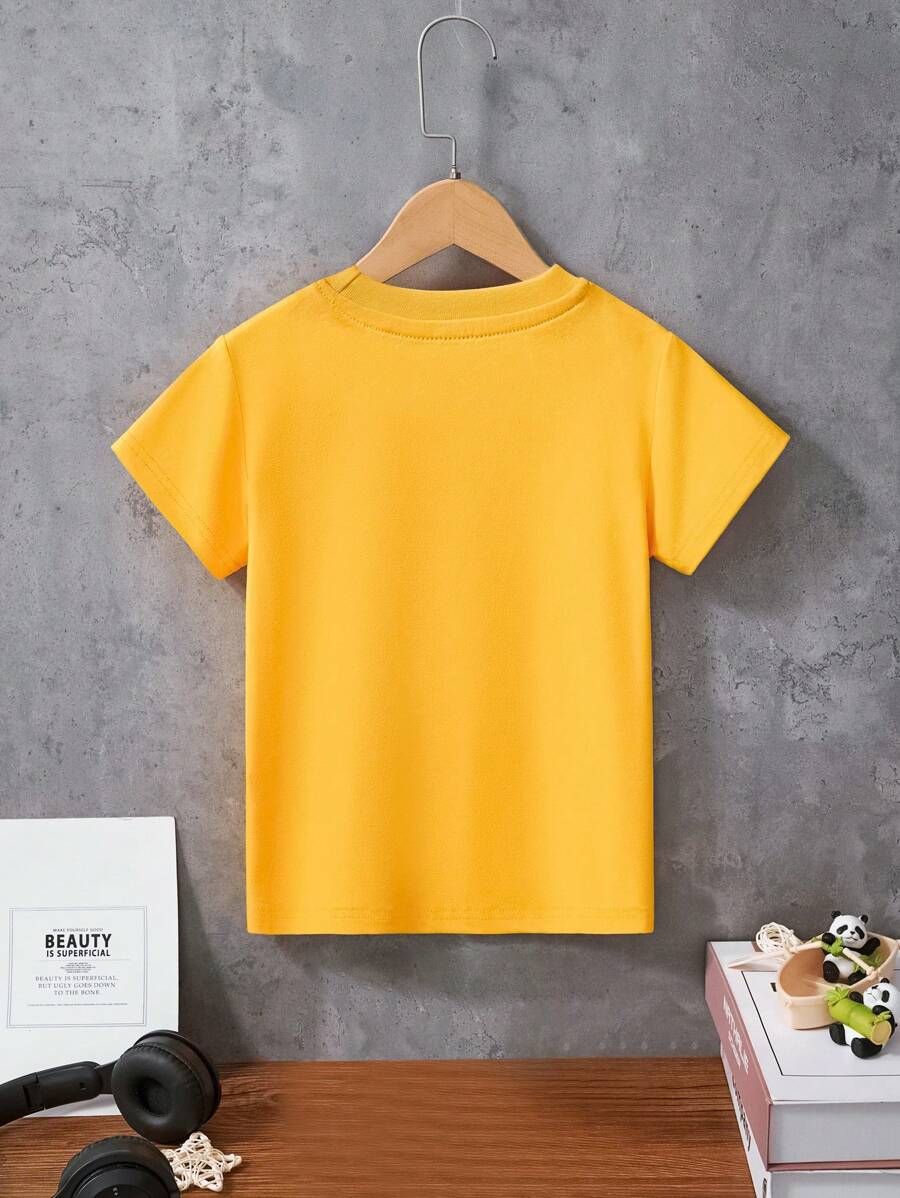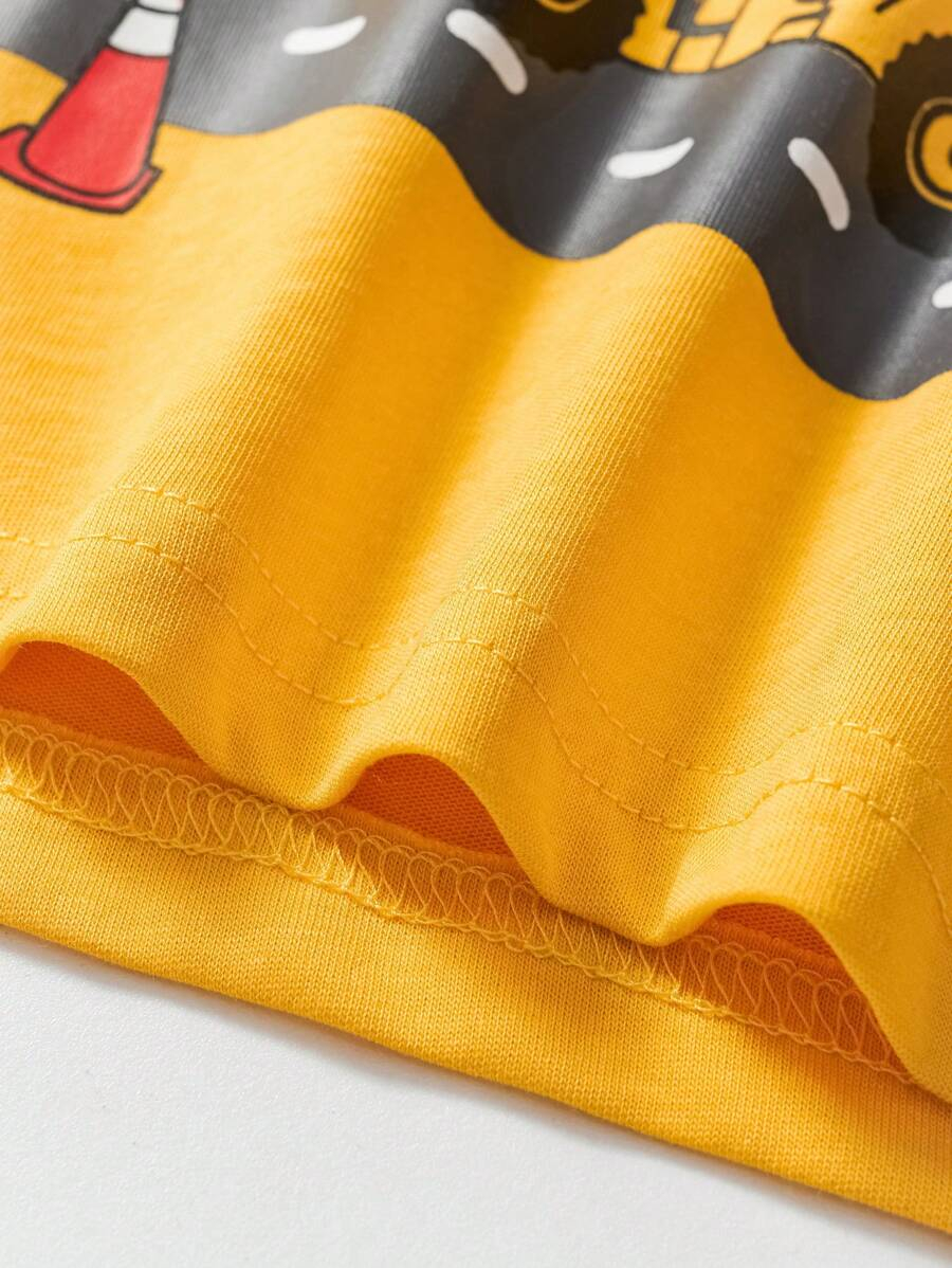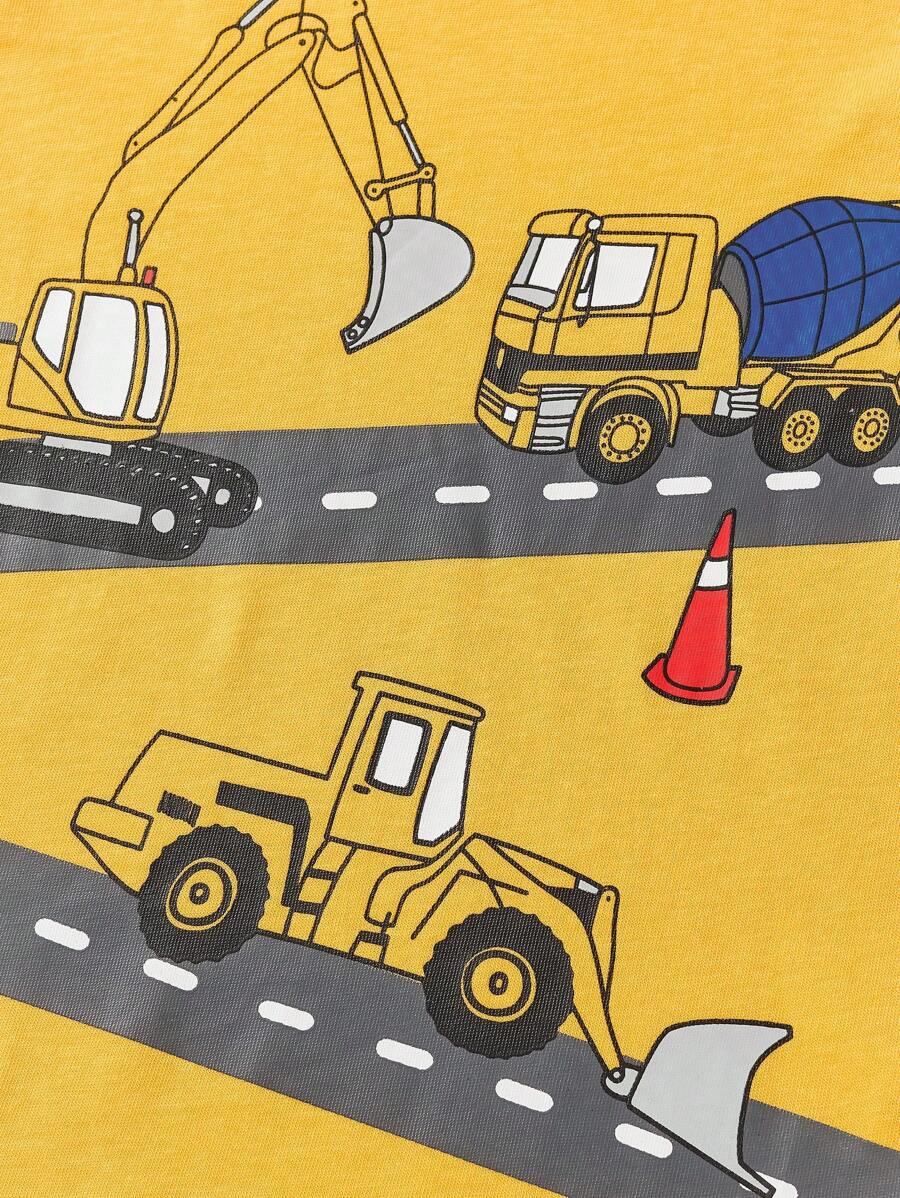 1pc Young Boy Casual Cartoon Excavator Print Round Neck Short Sleeve T-Shirt, For Spring/Summer YB00017