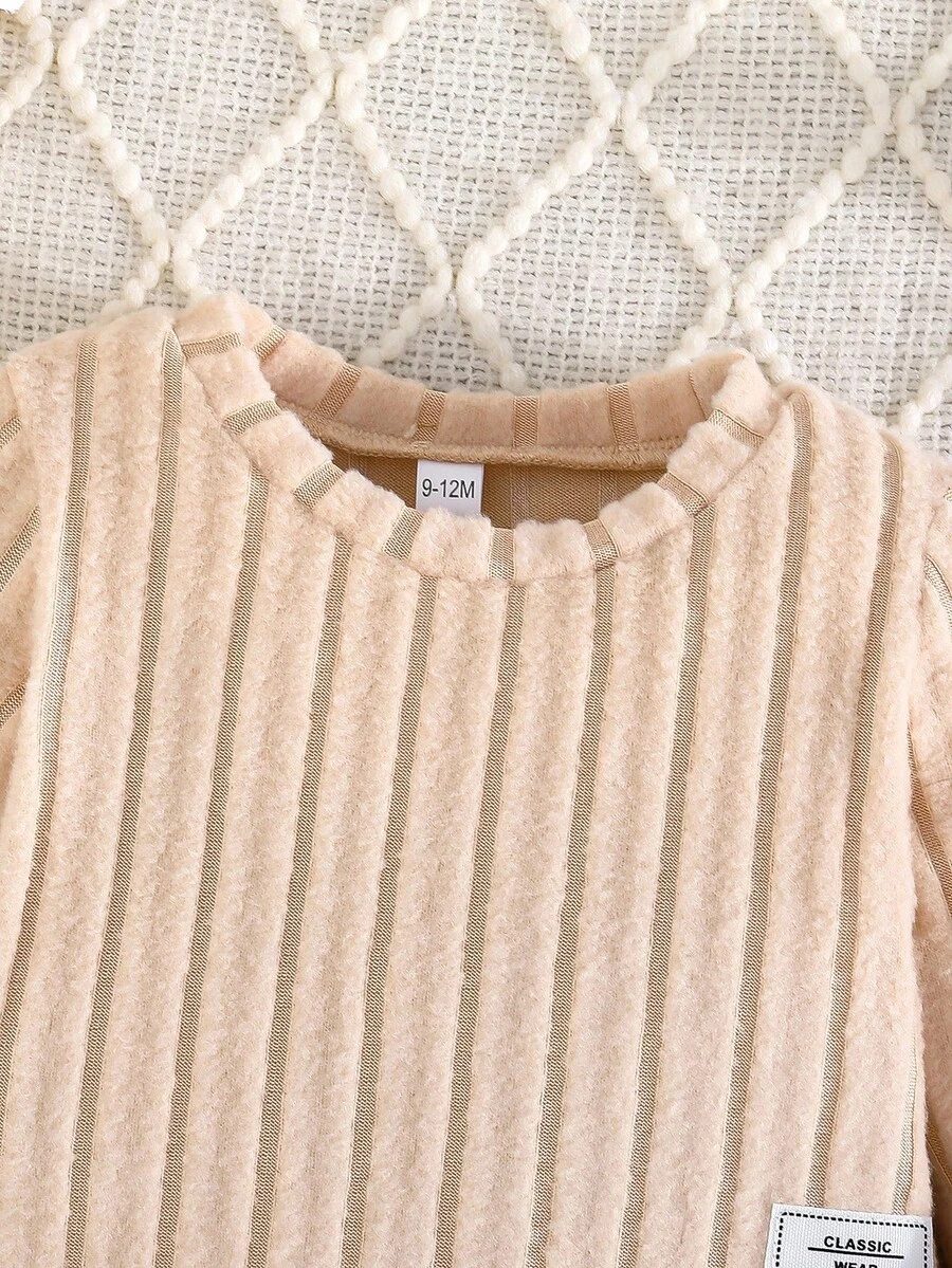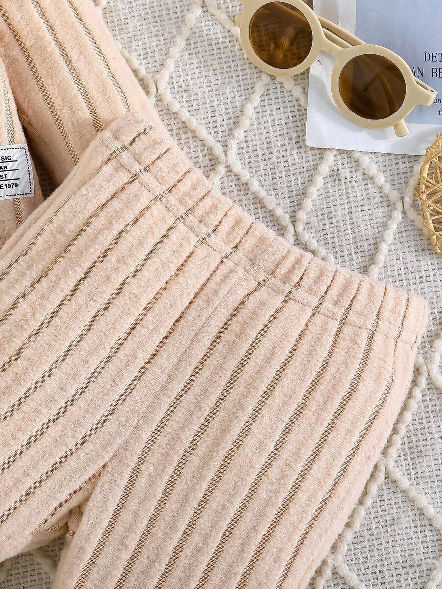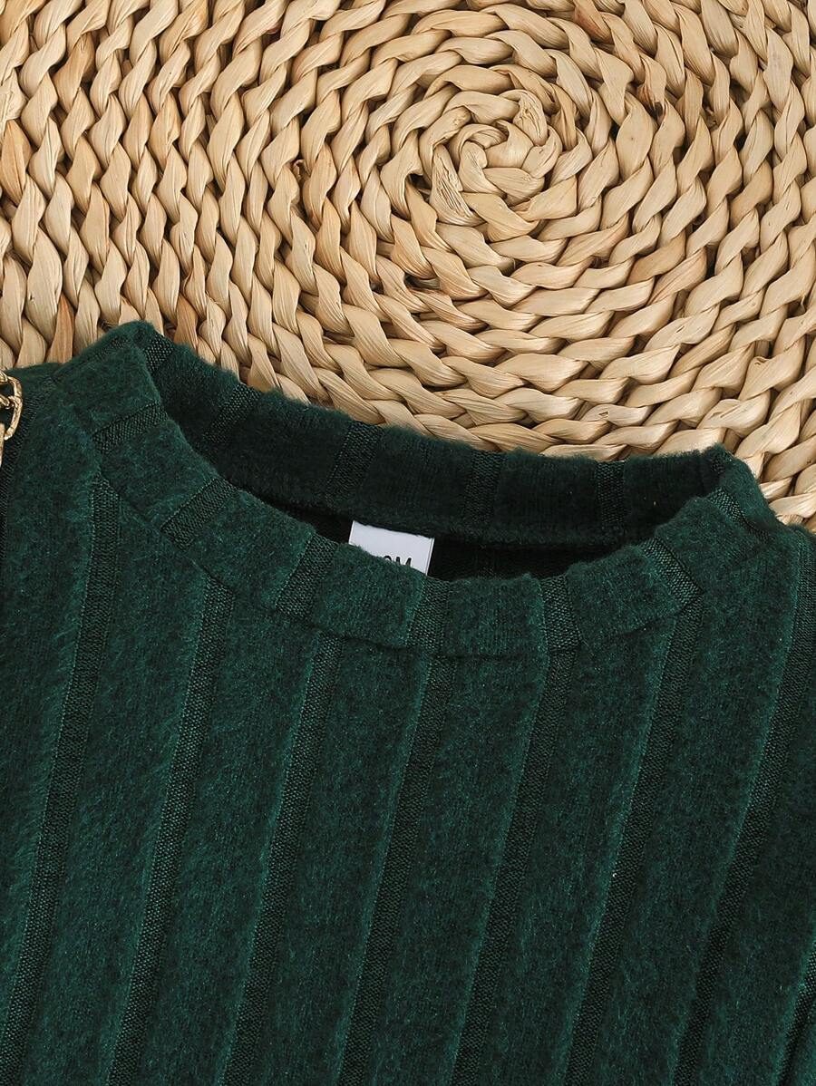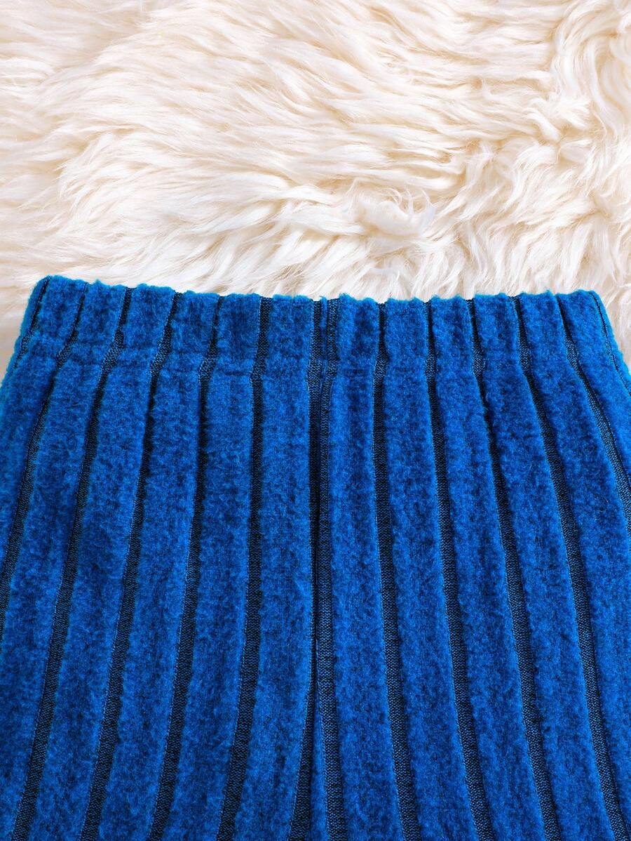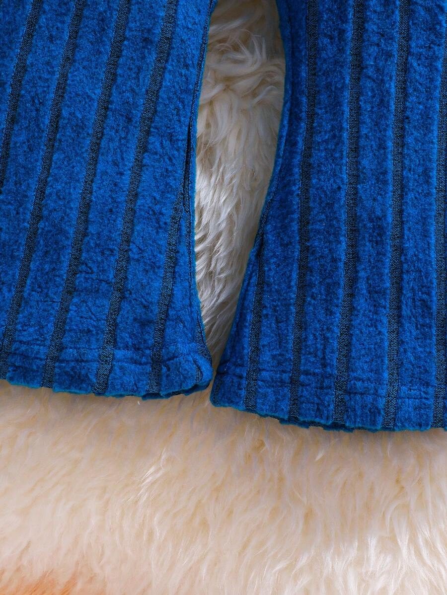 2pcs Set Baby Girls’ Ribbed Fleece Casual Outfit, Round Neck Top And Flare Pants, Spring Autumn WNTD0019