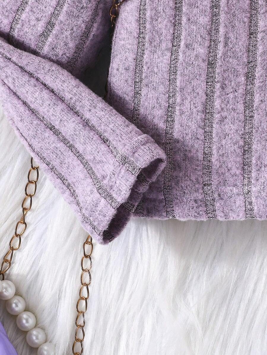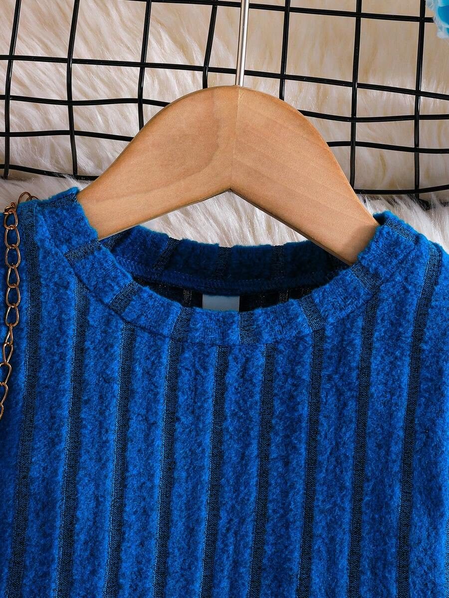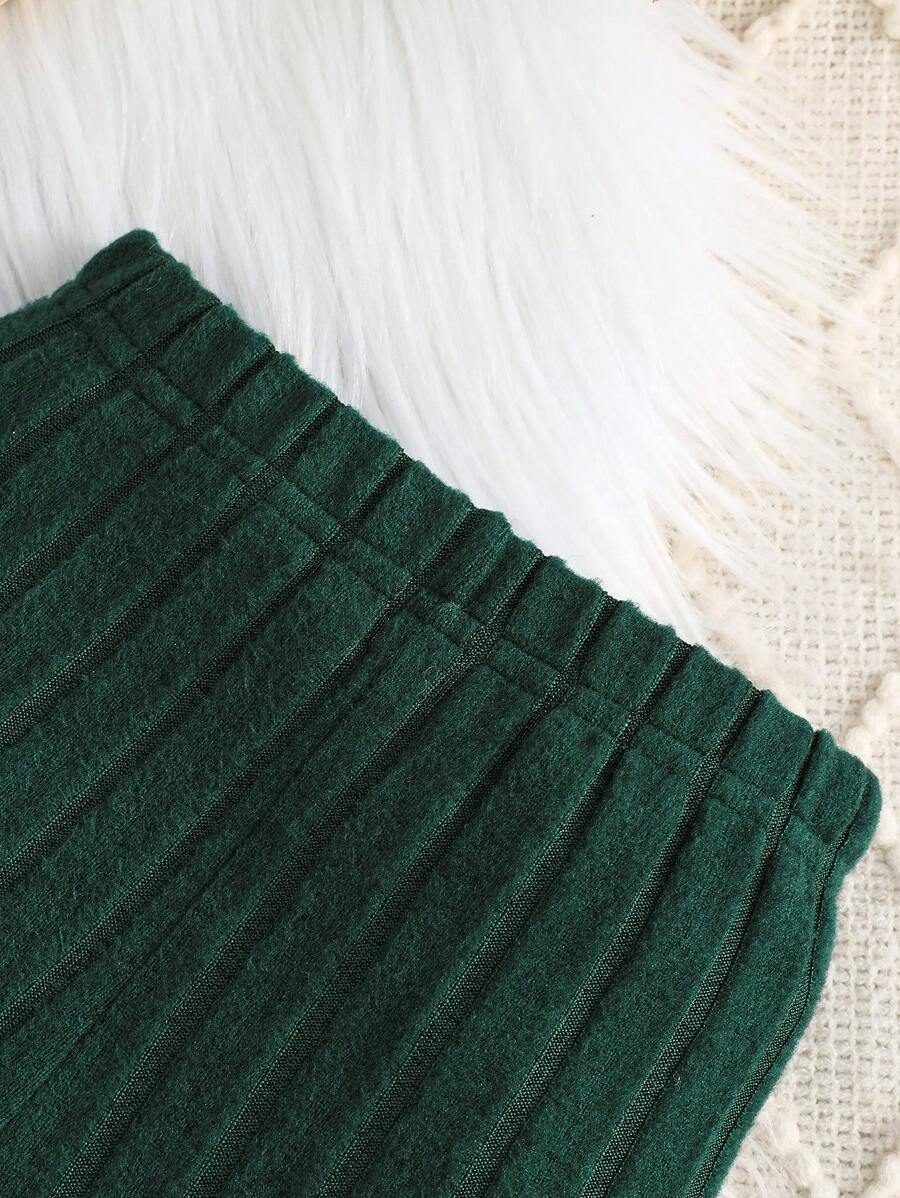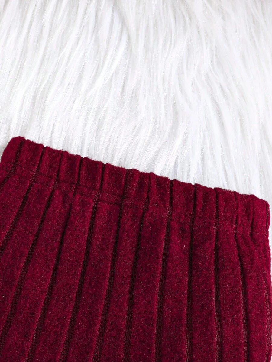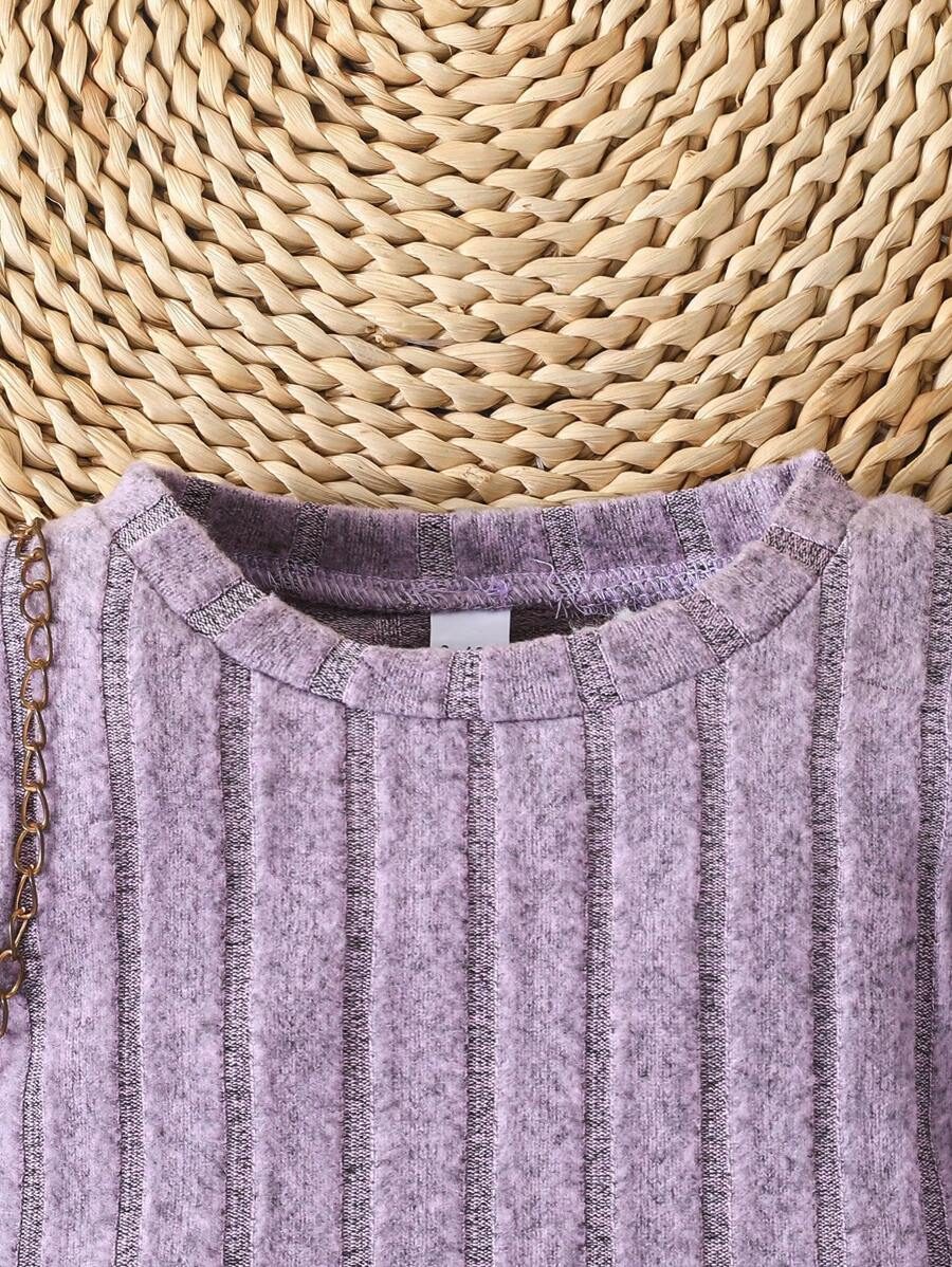 2pcs Set Baby Girls’ Ribbed Fleece Casual Outfit, Round Neck Top And Flare Pants, Spring Autumn WNTD0019