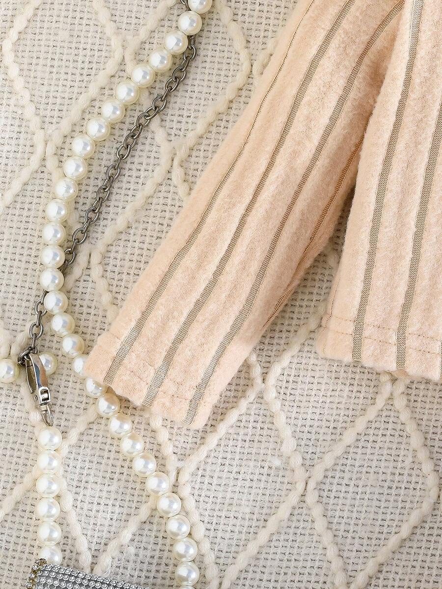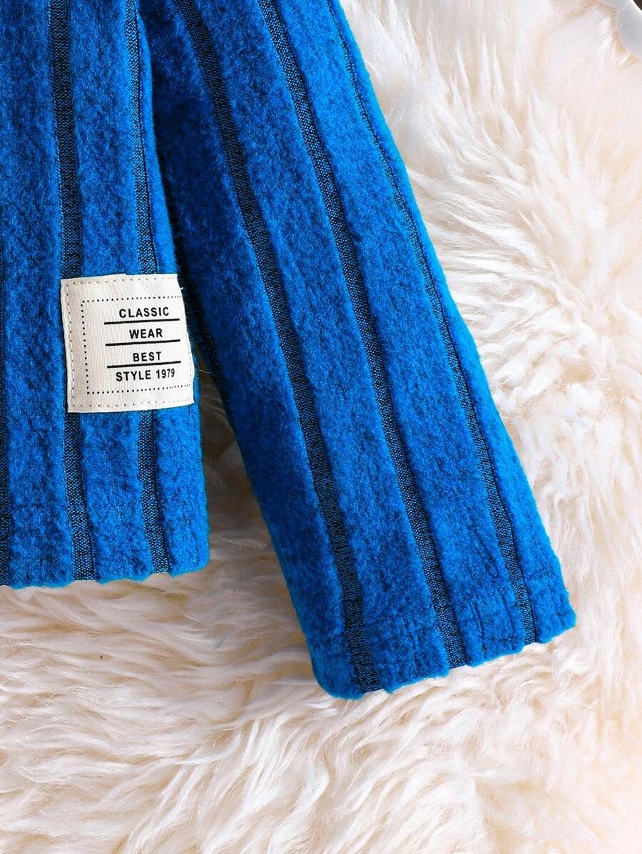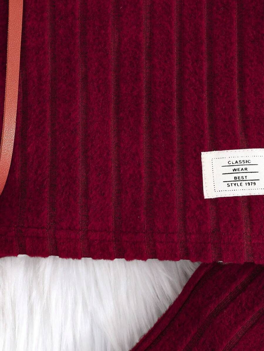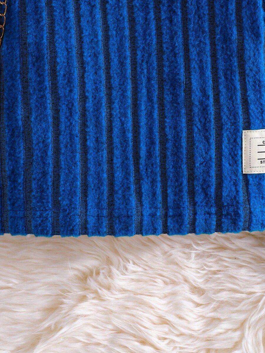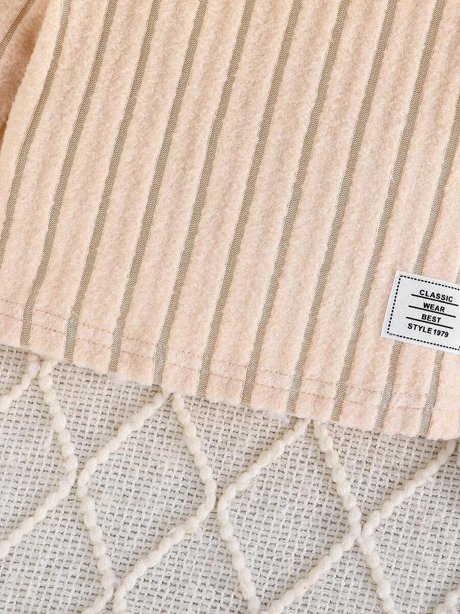 2pcs Set Baby Girls’ Ribbed Fleece Casual Outfit, Round Neck Top And Flare Pants, Spring Autumn WNTD0019