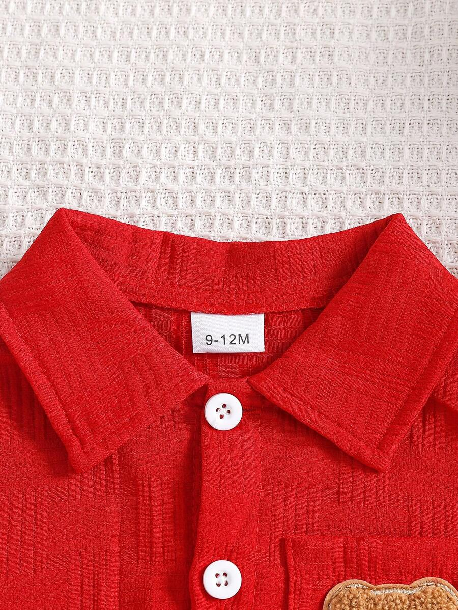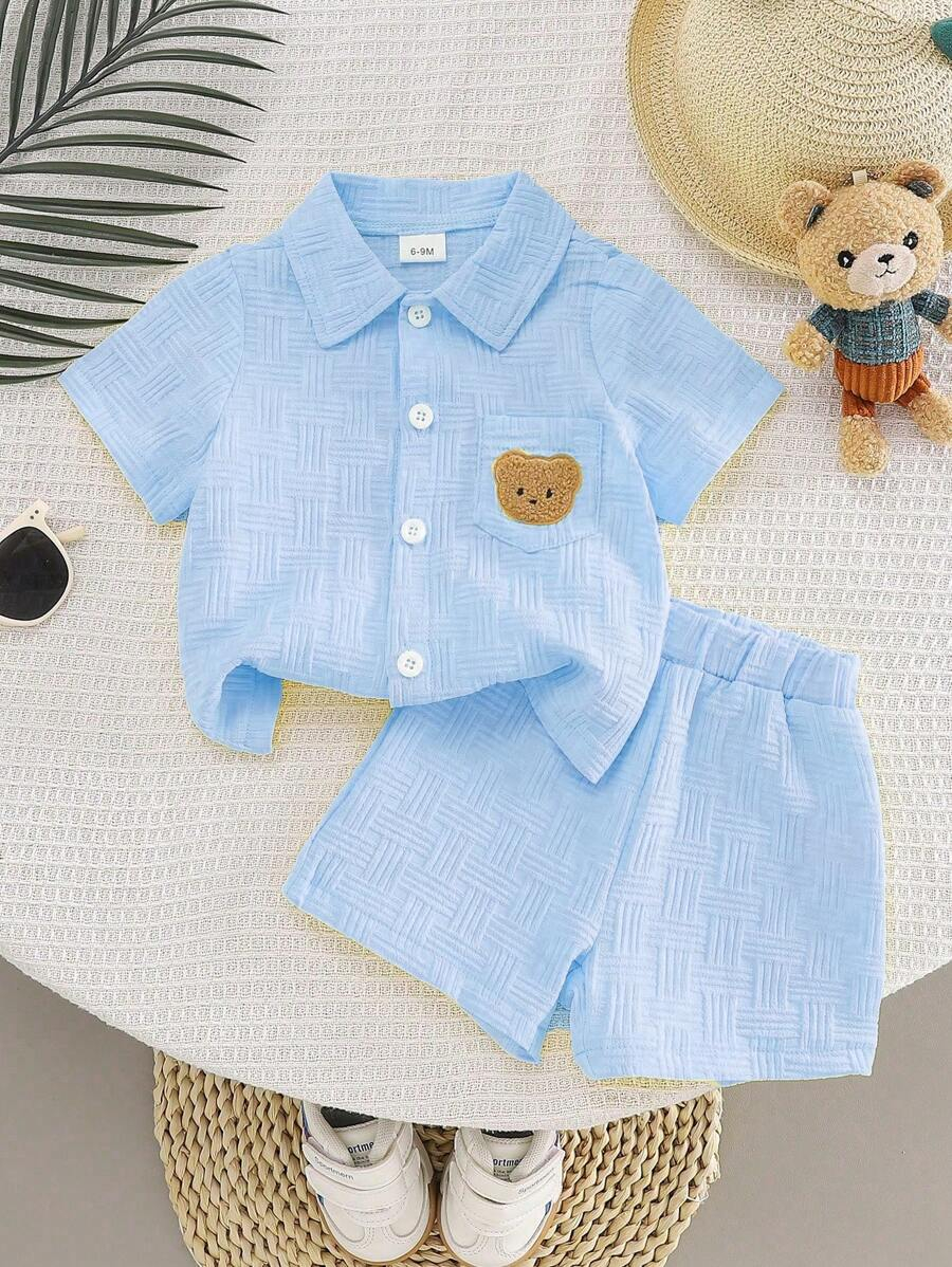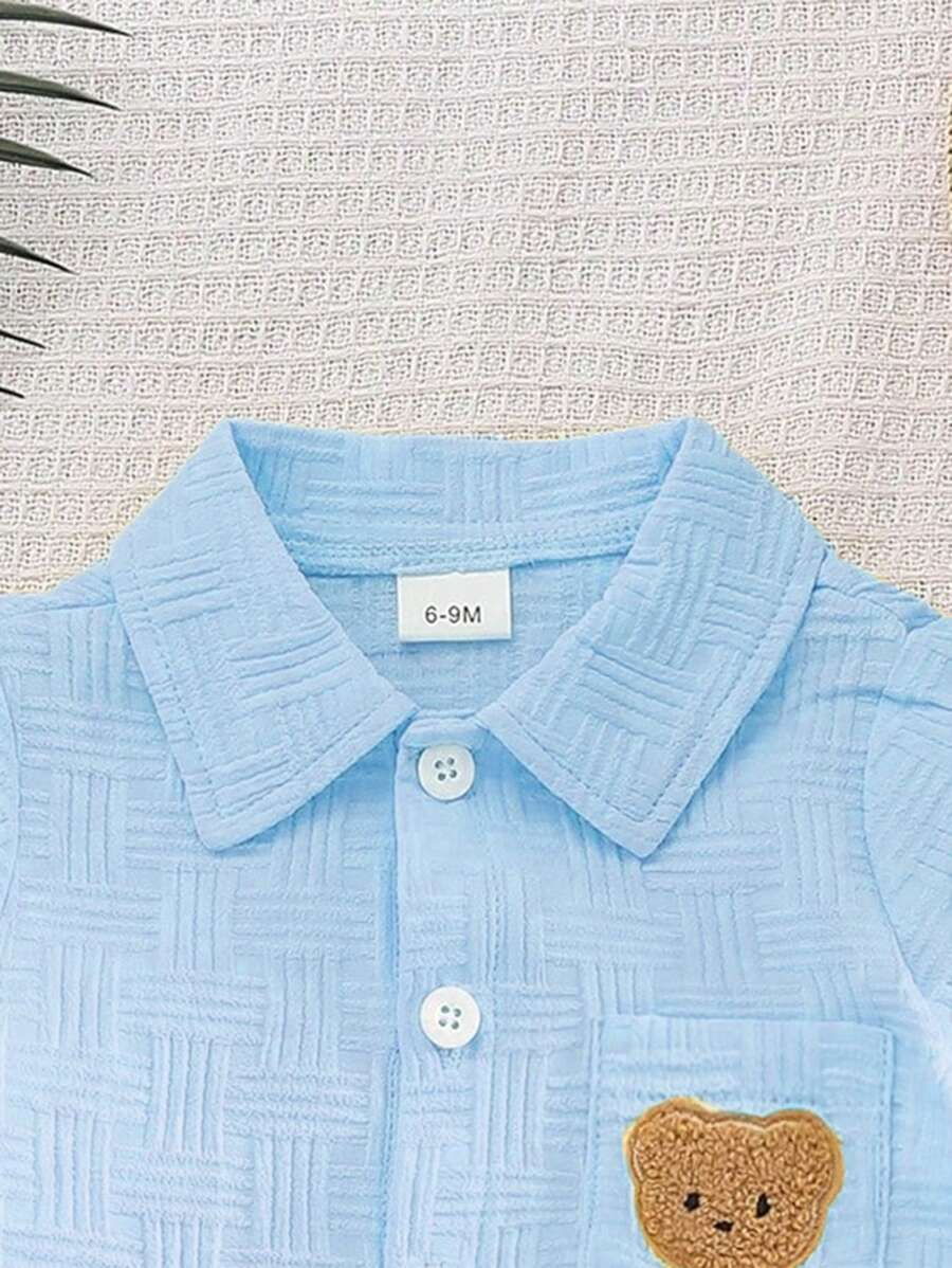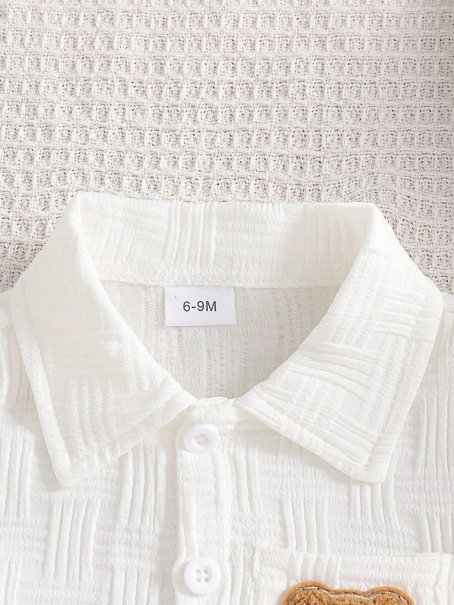 2pcs/Set Toddler Boys Textured Pocket Bear Embroidered Shirt And Shorts Street Fashion Children Outfit BB00004