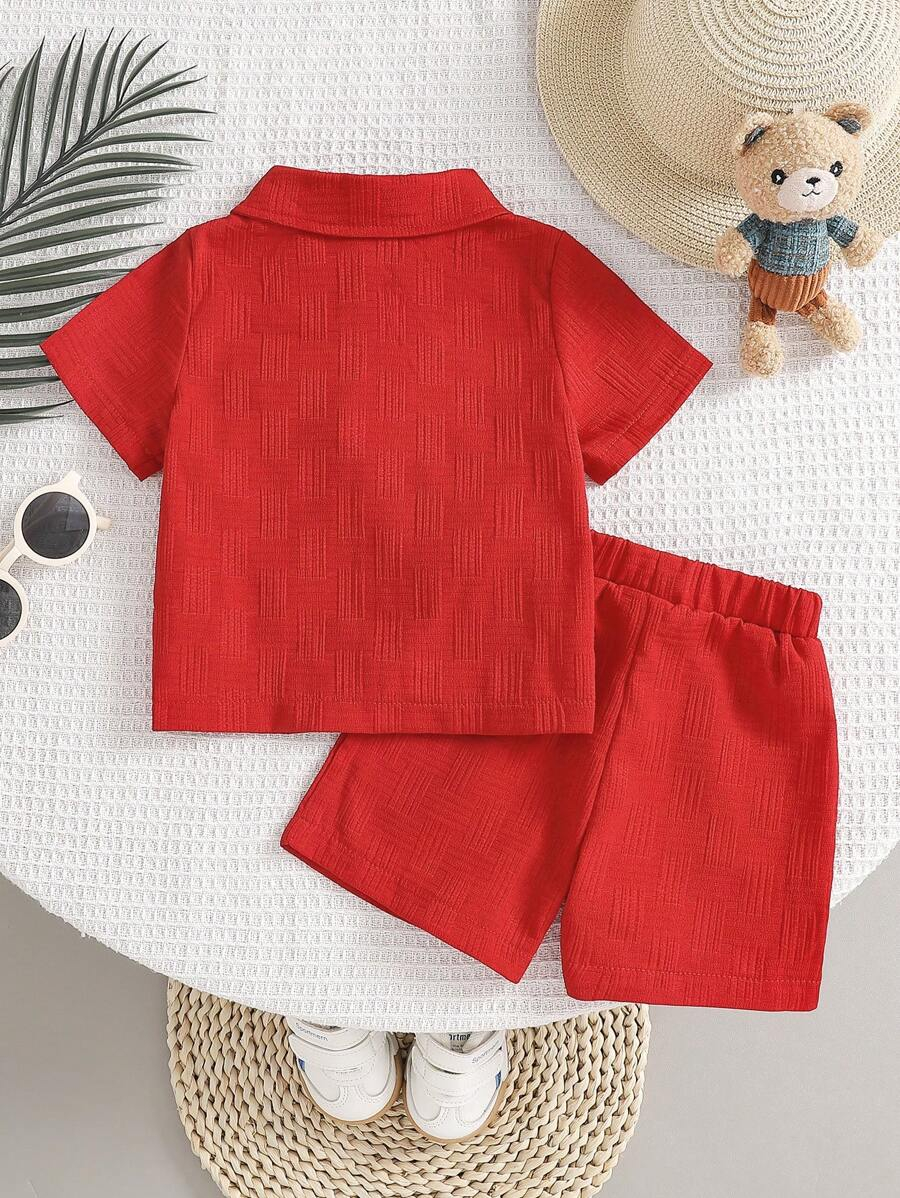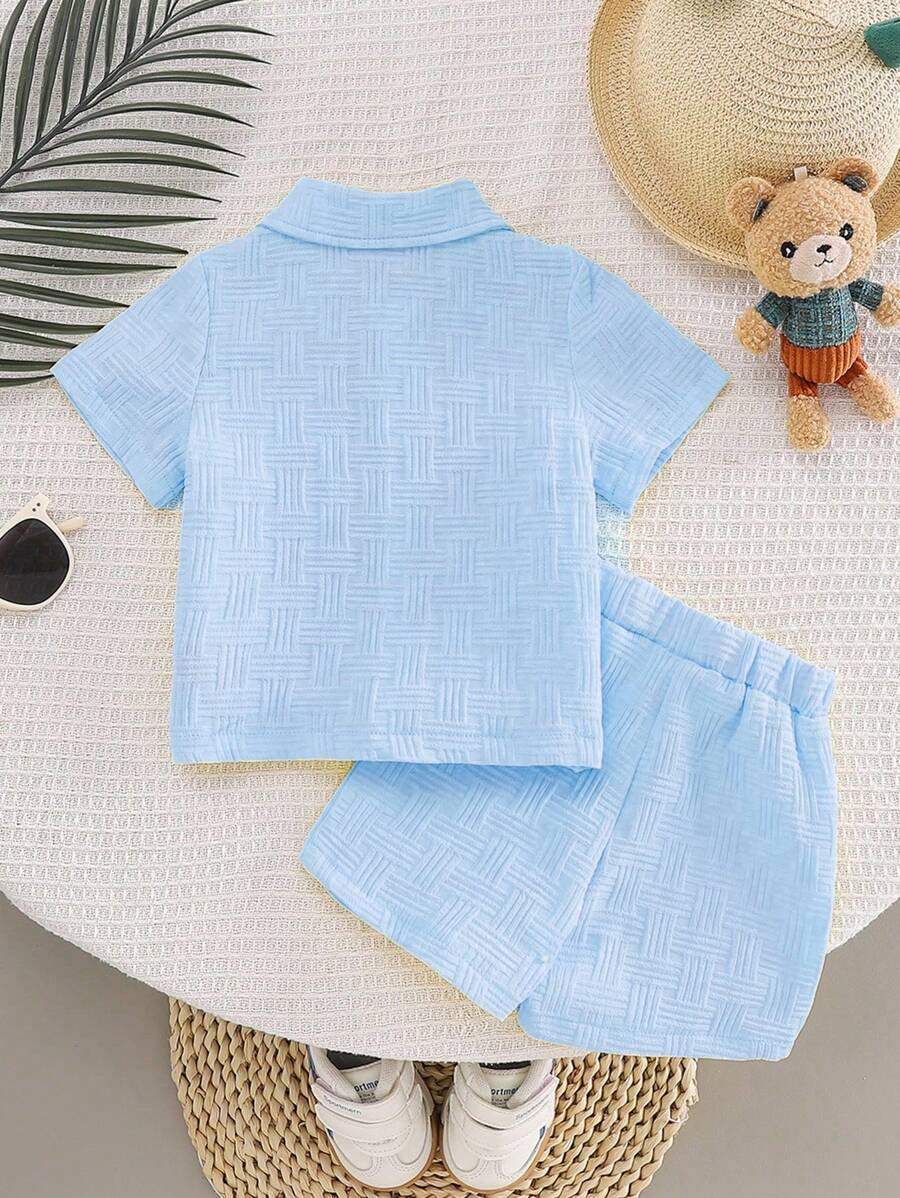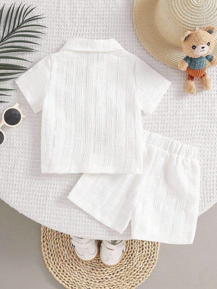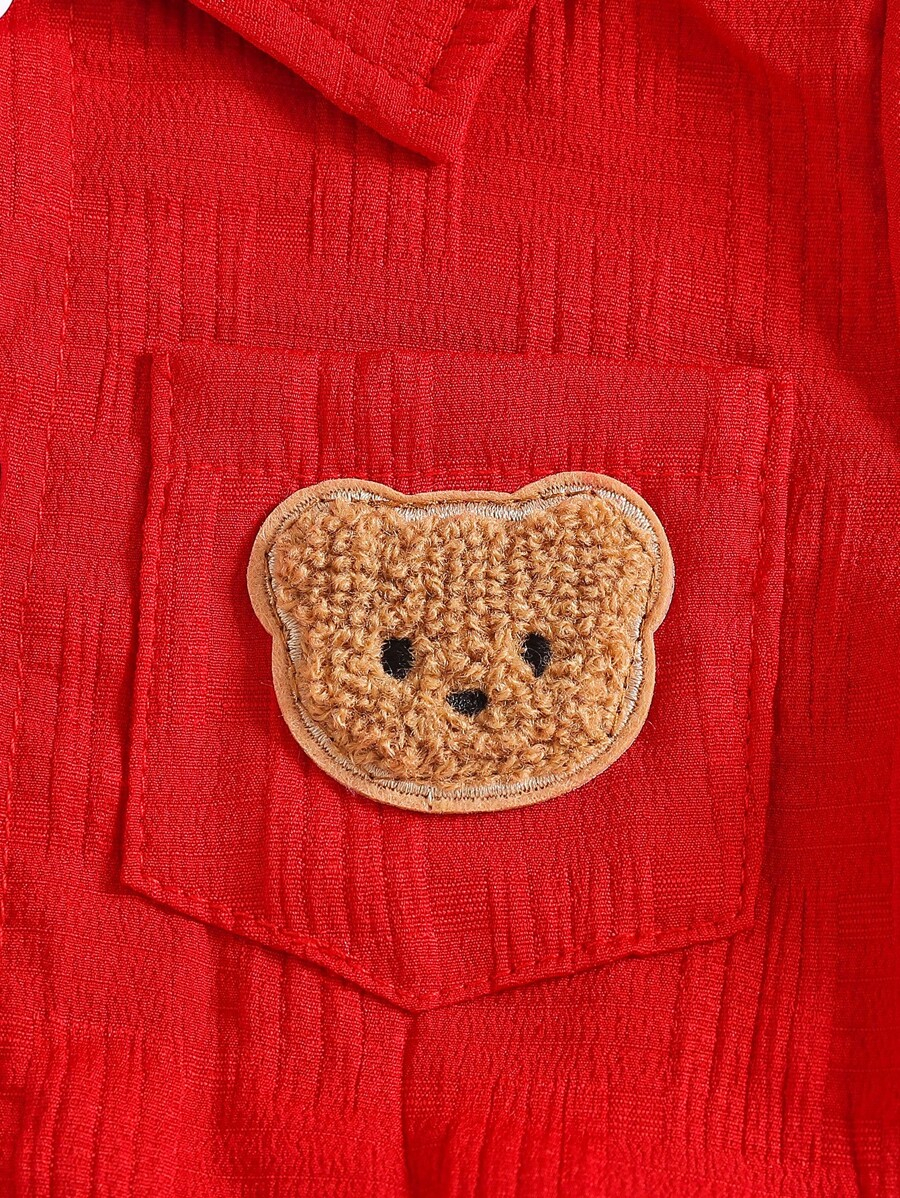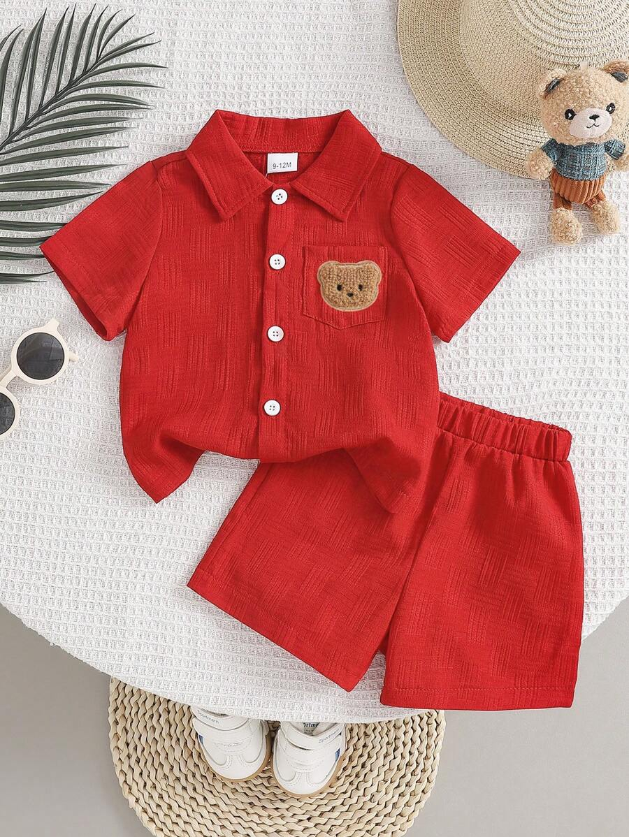 2pcs/Set Toddler Boys Textured Pocket Bear Embroidered Shirt And Shorts Street Fashion Children Outfit BB00004