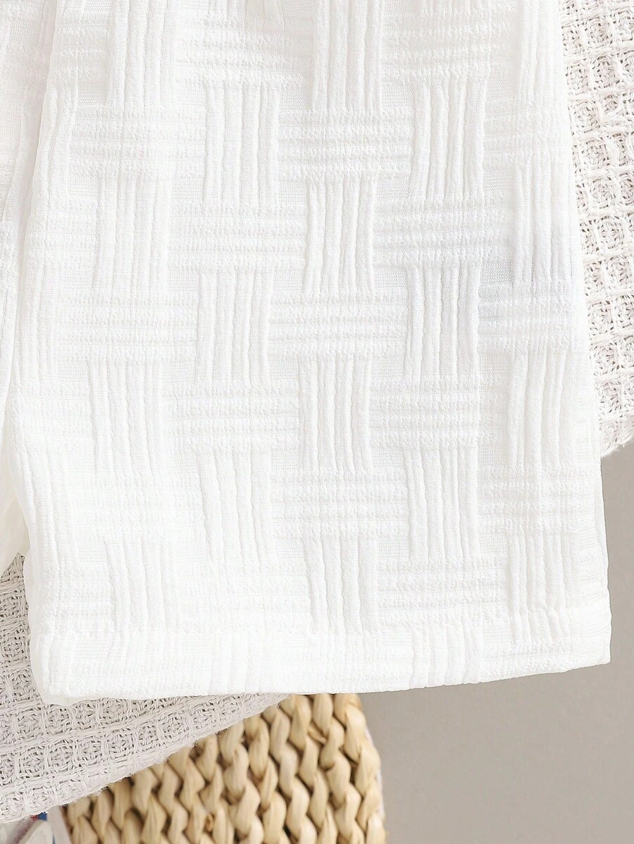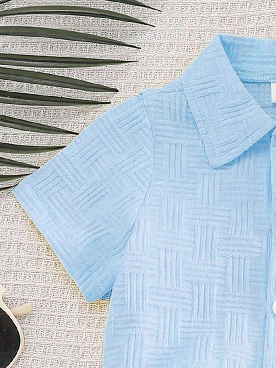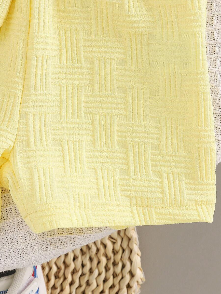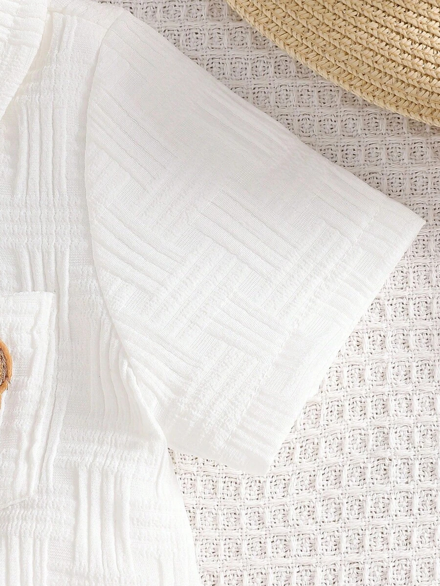 2pcs/Set Toddler Boys Textured Pocket Bear Embroidered Shirt And Shorts Street Fashion Children Outfit BB00004