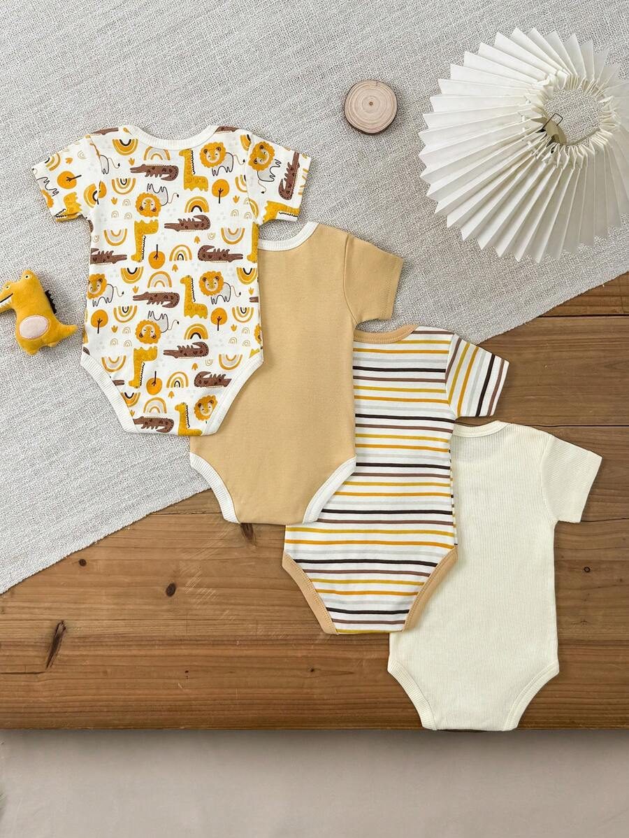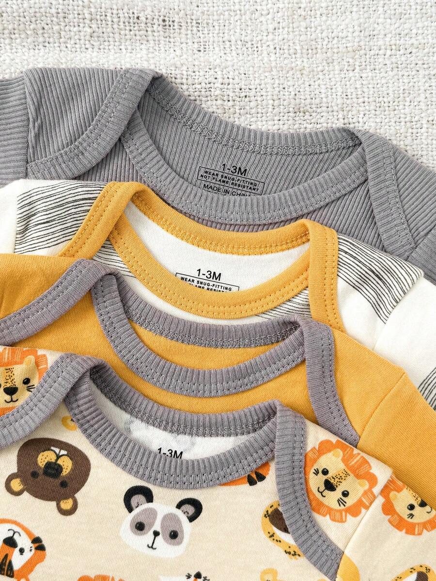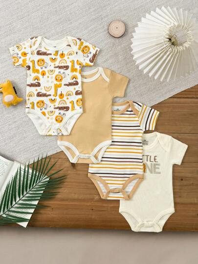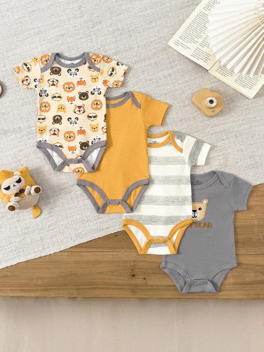 4 PCS Baby Boys Casual Short Sleeves Cute Cartoon Baby Bodysuits Four Seasons