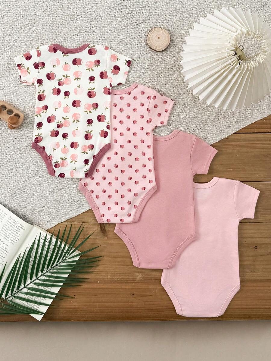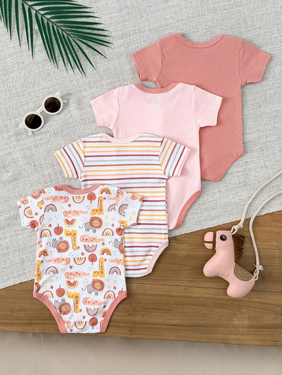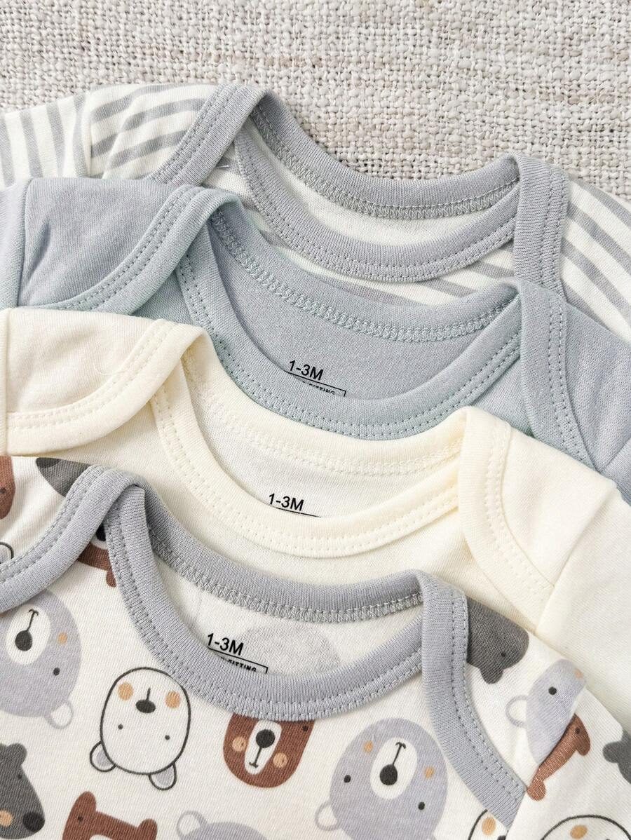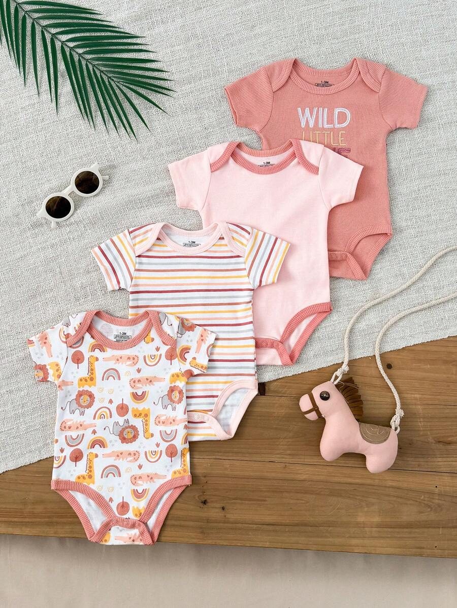 4 PCS Baby Boys Casual Short Sleeves Cute Cartoon Baby Bodysuits Four Seasons