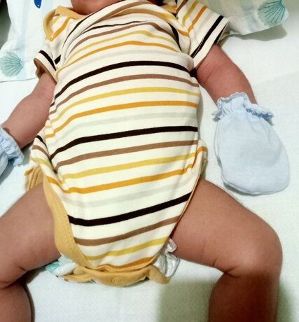 this very recommended fit from 1 – 4 months,my baby is very comfortable the short sleeve is pure cotton. I will buy again soon.