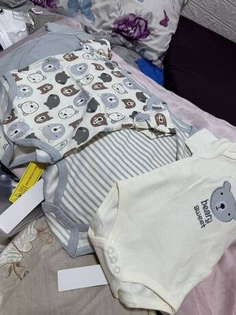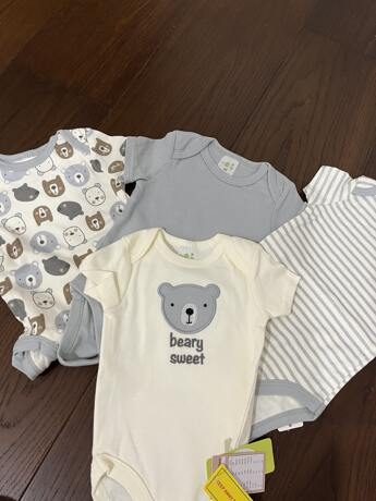 Very cute! Solid cotton. True to size 🙂 good for my 1 month old.