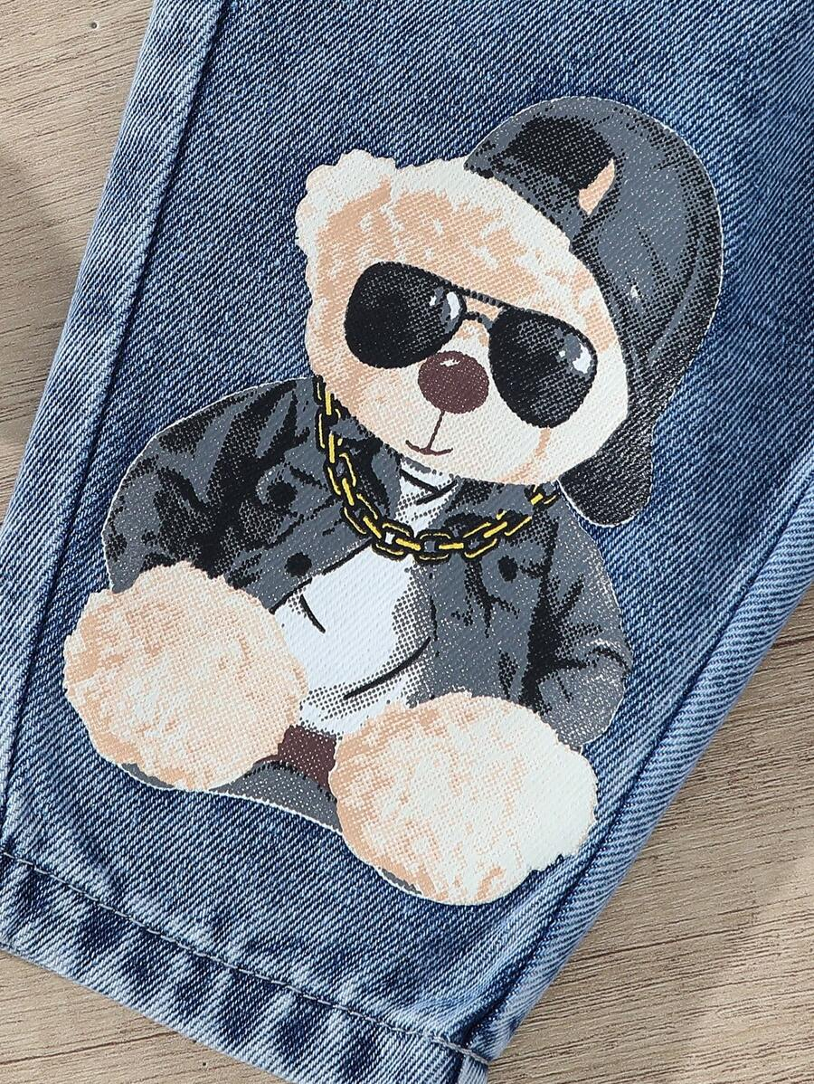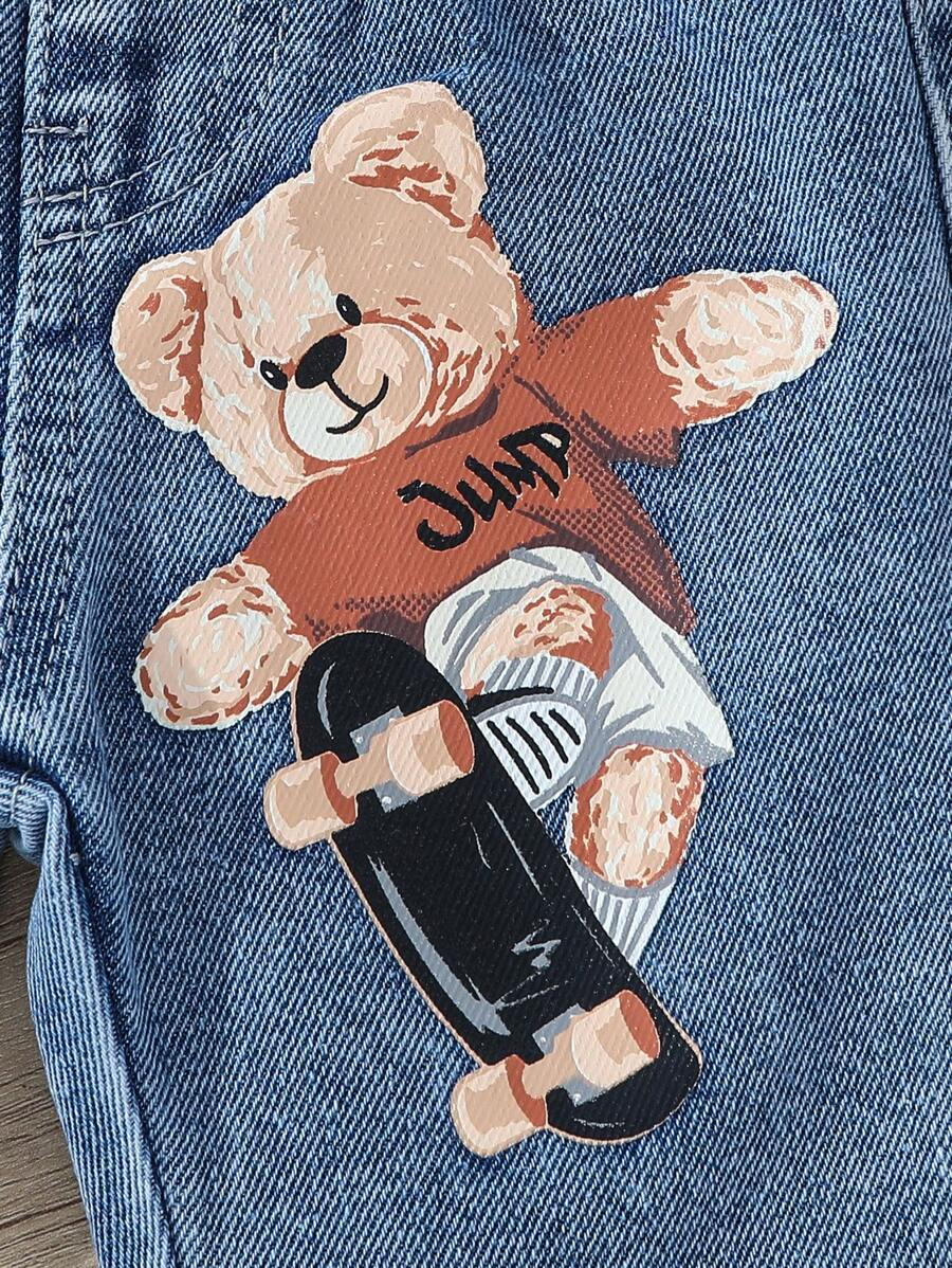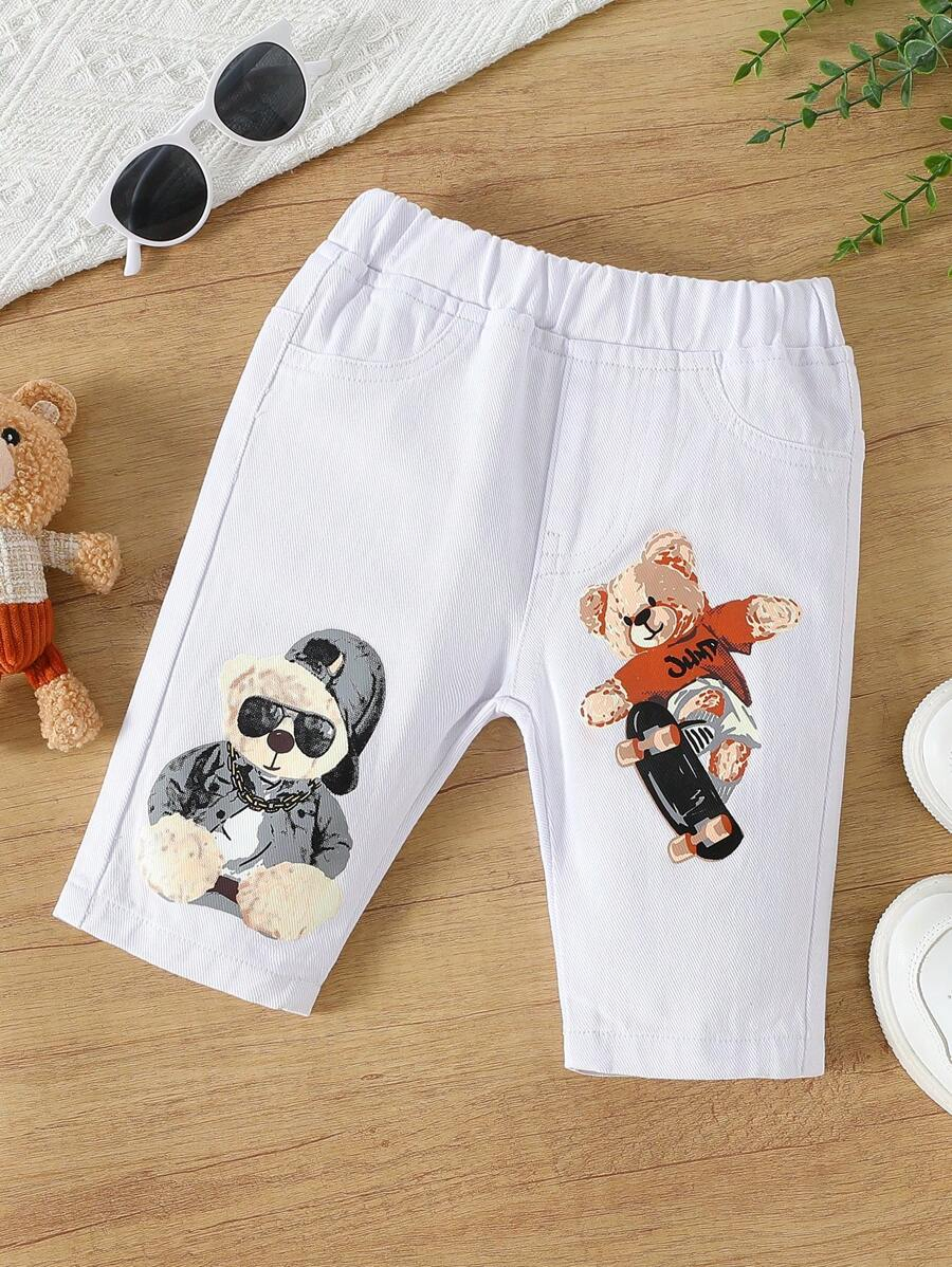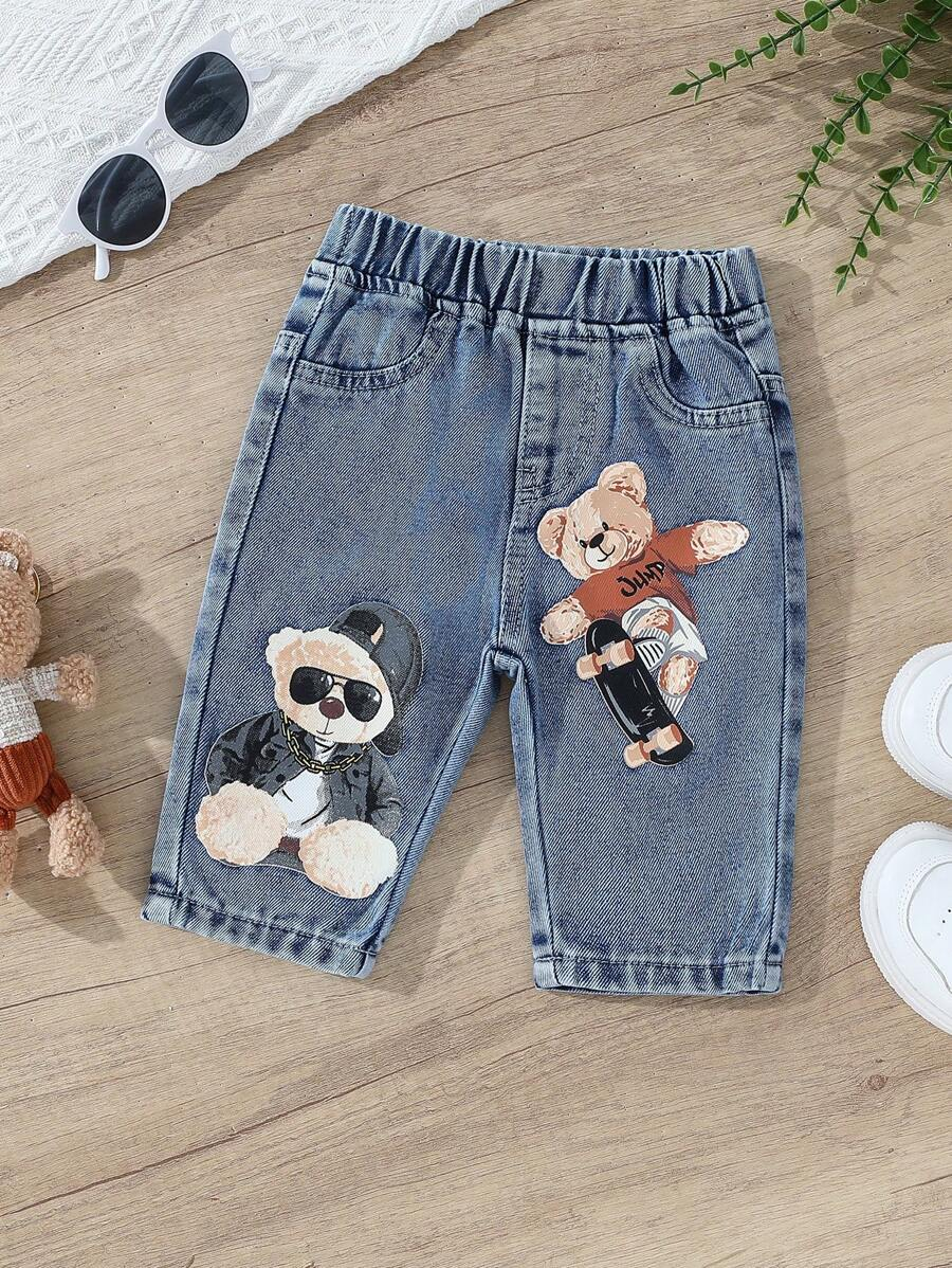 Baby Boy Street-Style Cool Skateboarding Bear Pattern Print Elastic Waist Wide And Comfortable Denim 3/4 Pants BB00021