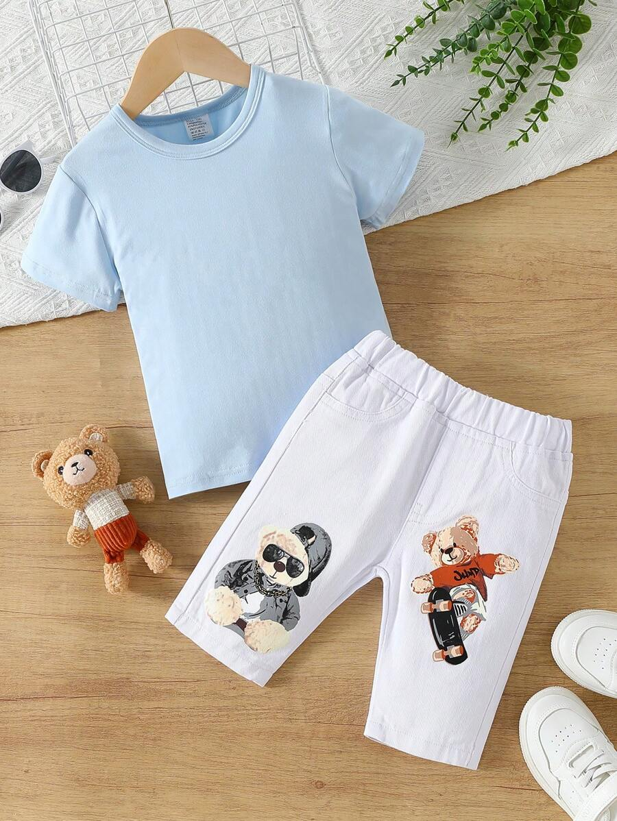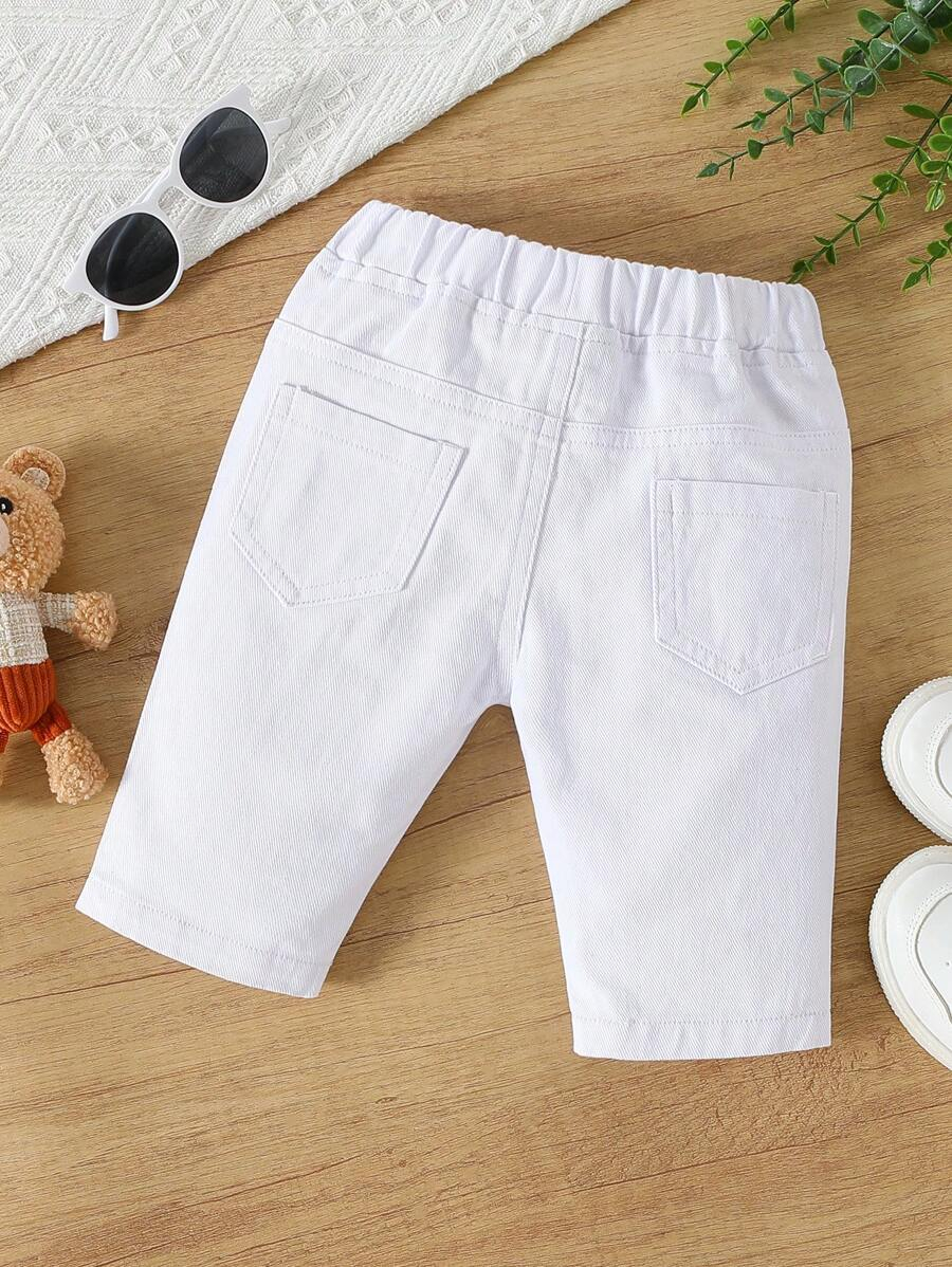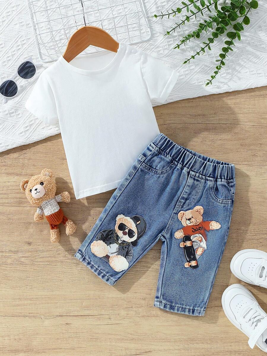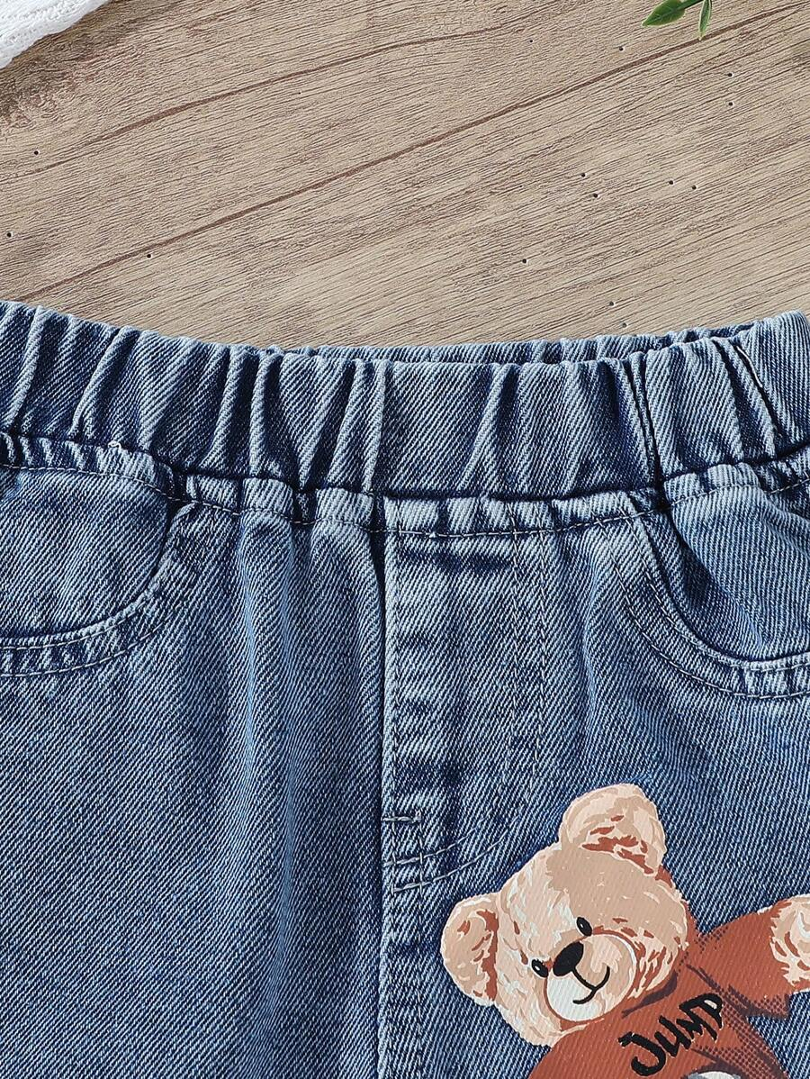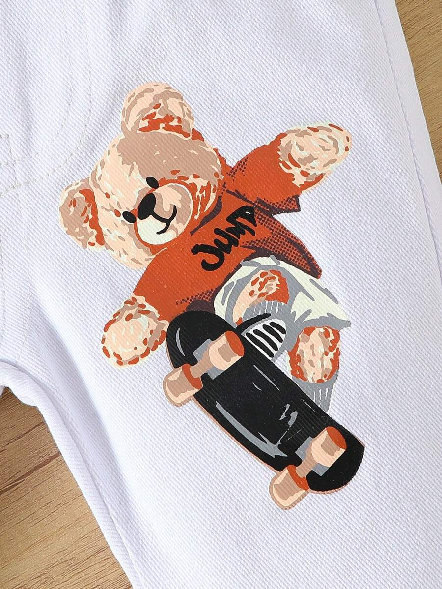 Baby Boy Street-Style Cool Skateboarding Bear Pattern Print Elastic Waist Wide And Comfortable Denim 3/4 Pants BB00021