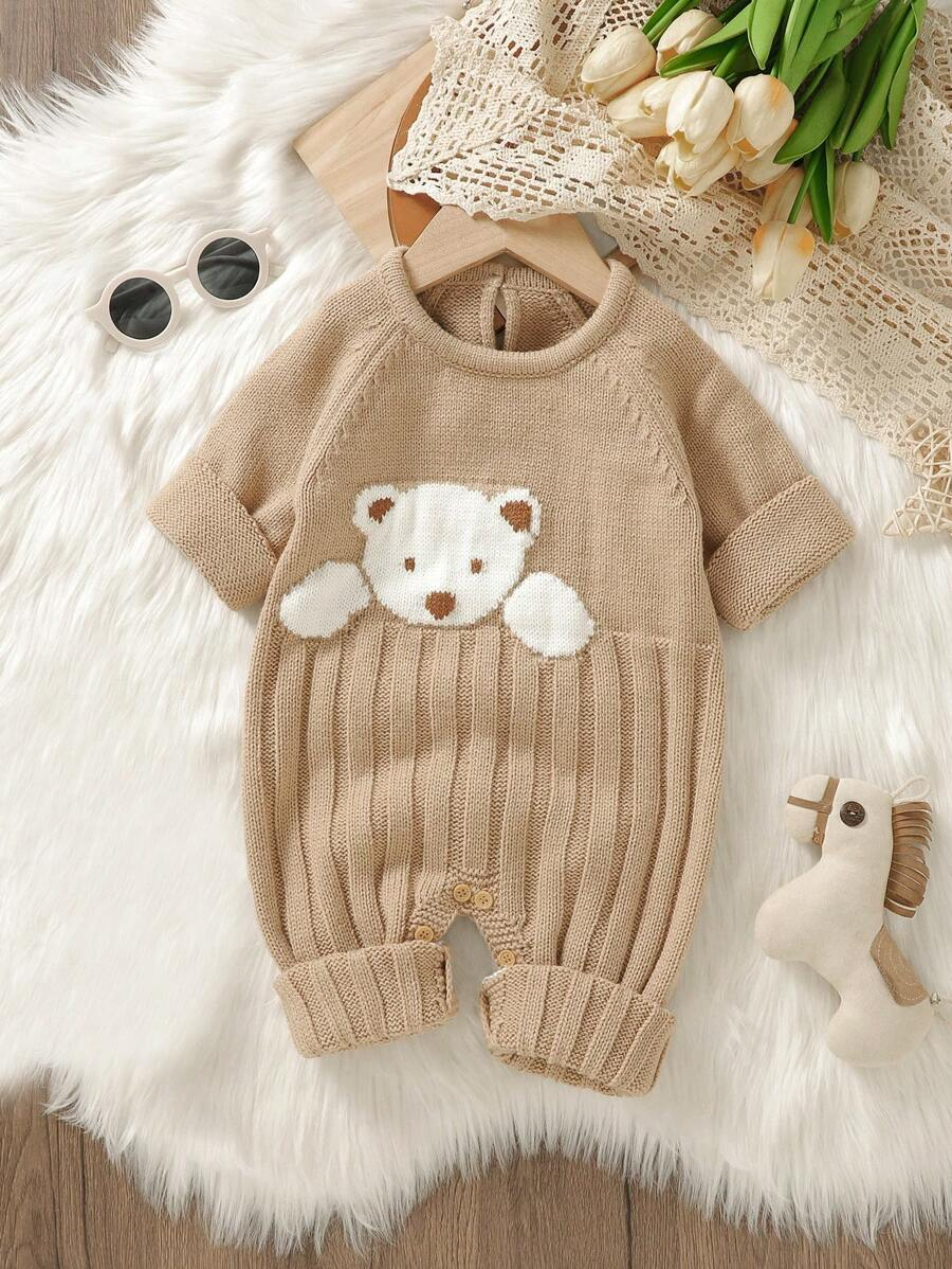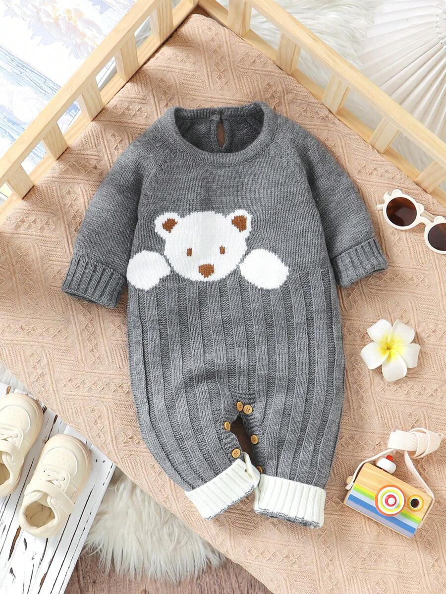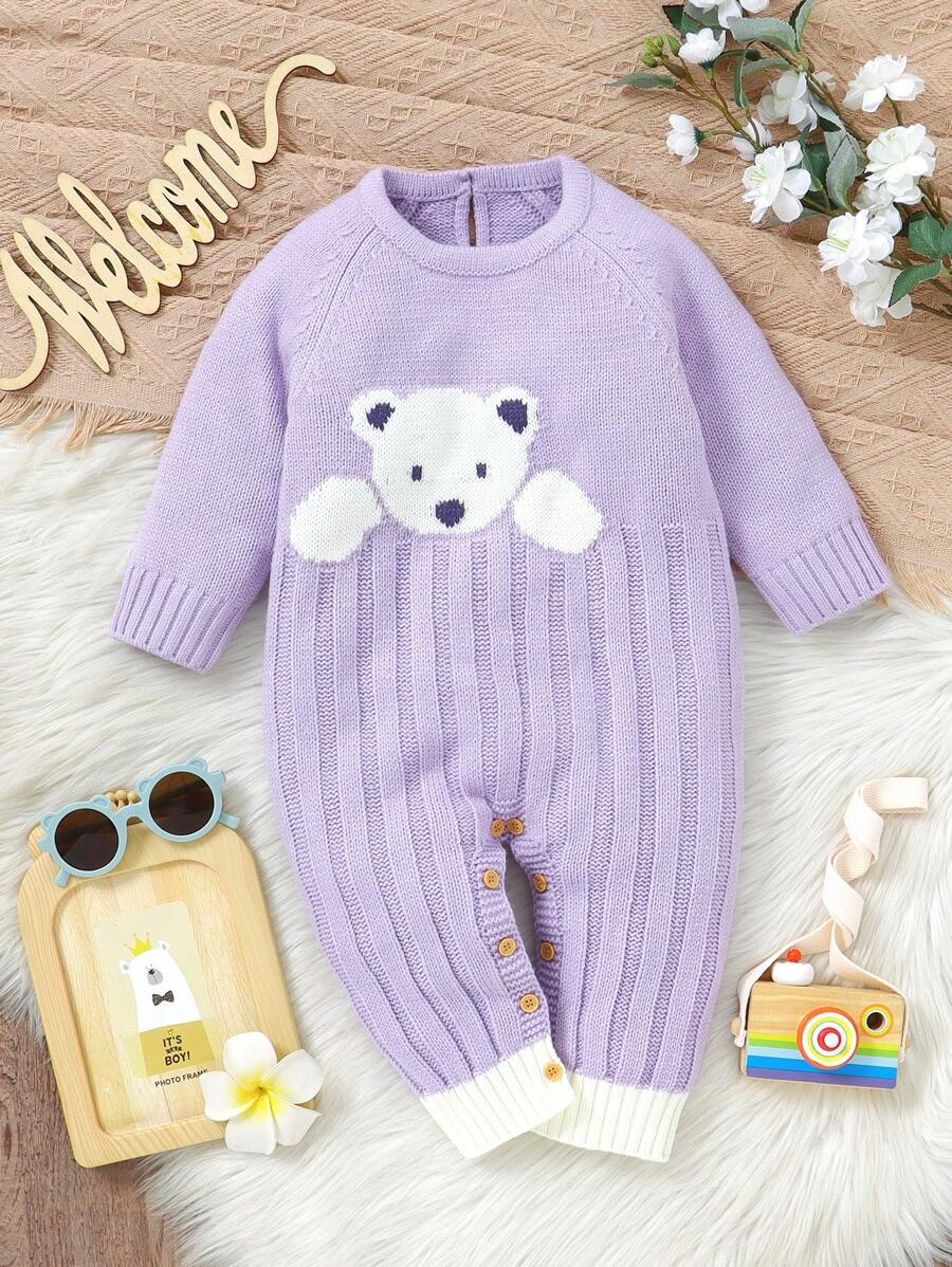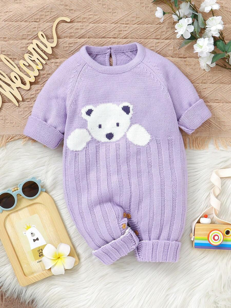 Baby Girl Bear Pattern Raglan Sleeve Knit Jumpsuit BG00009