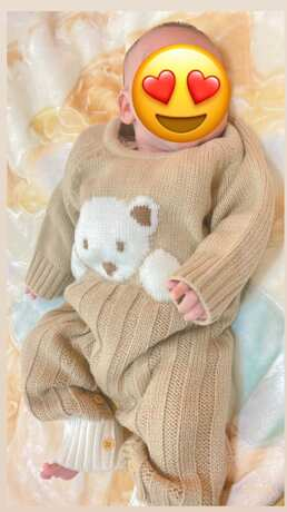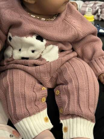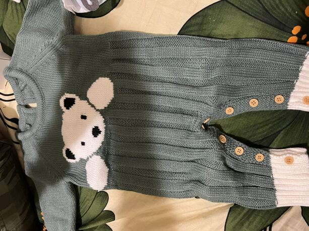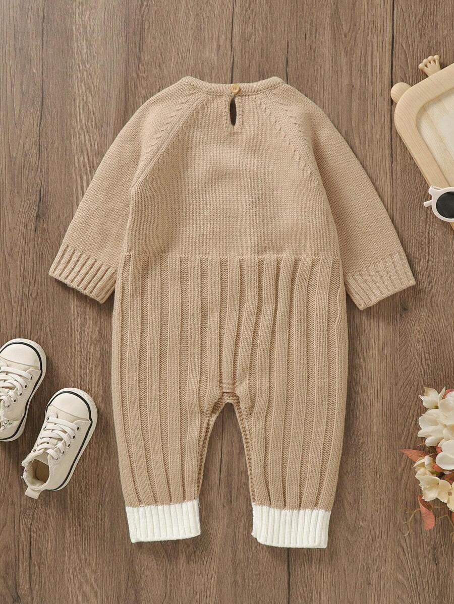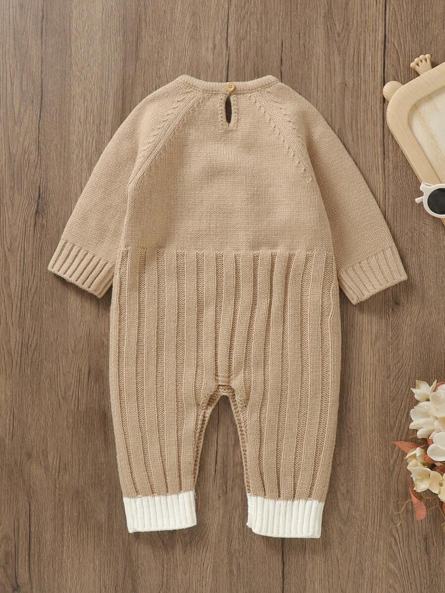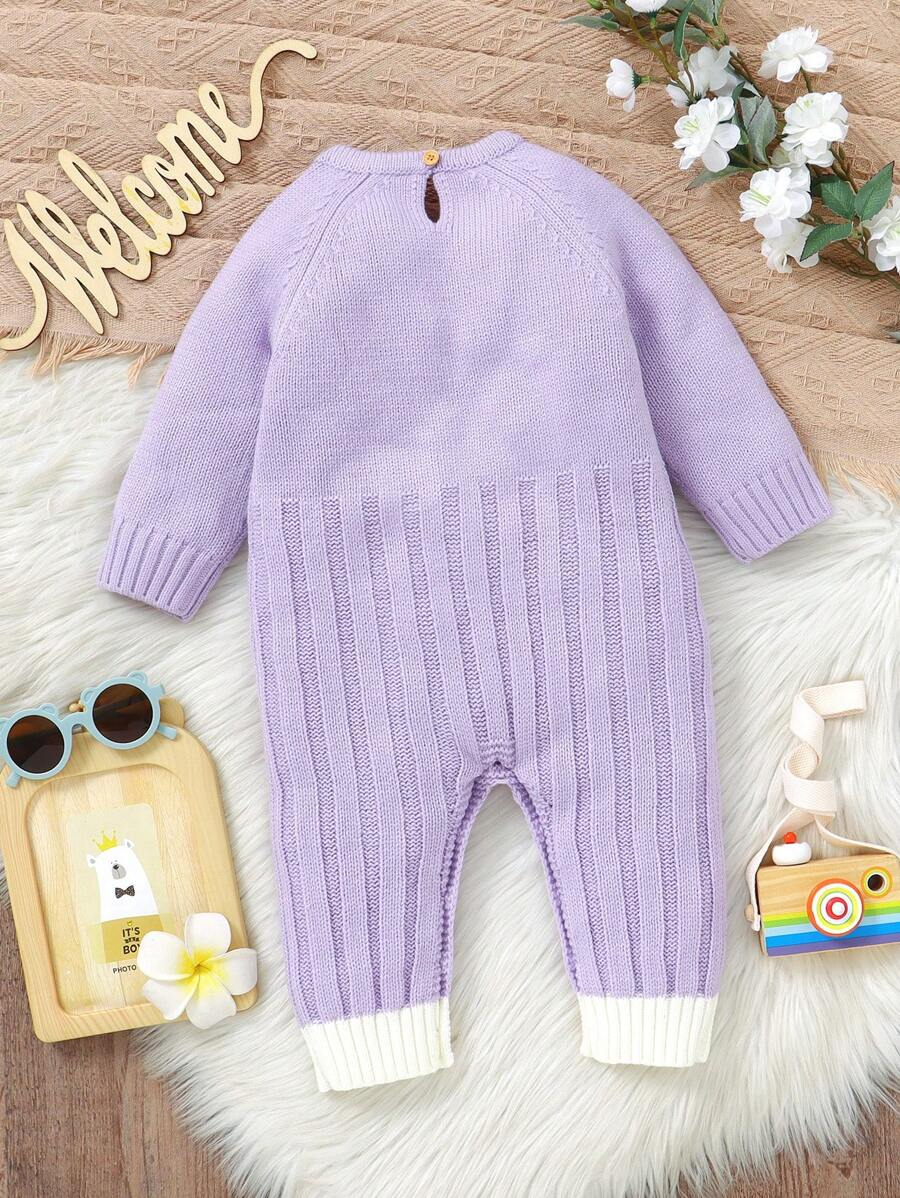 Baby Girl Bear Pattern Raglan Sleeve Knit Jumpsuit BG00009