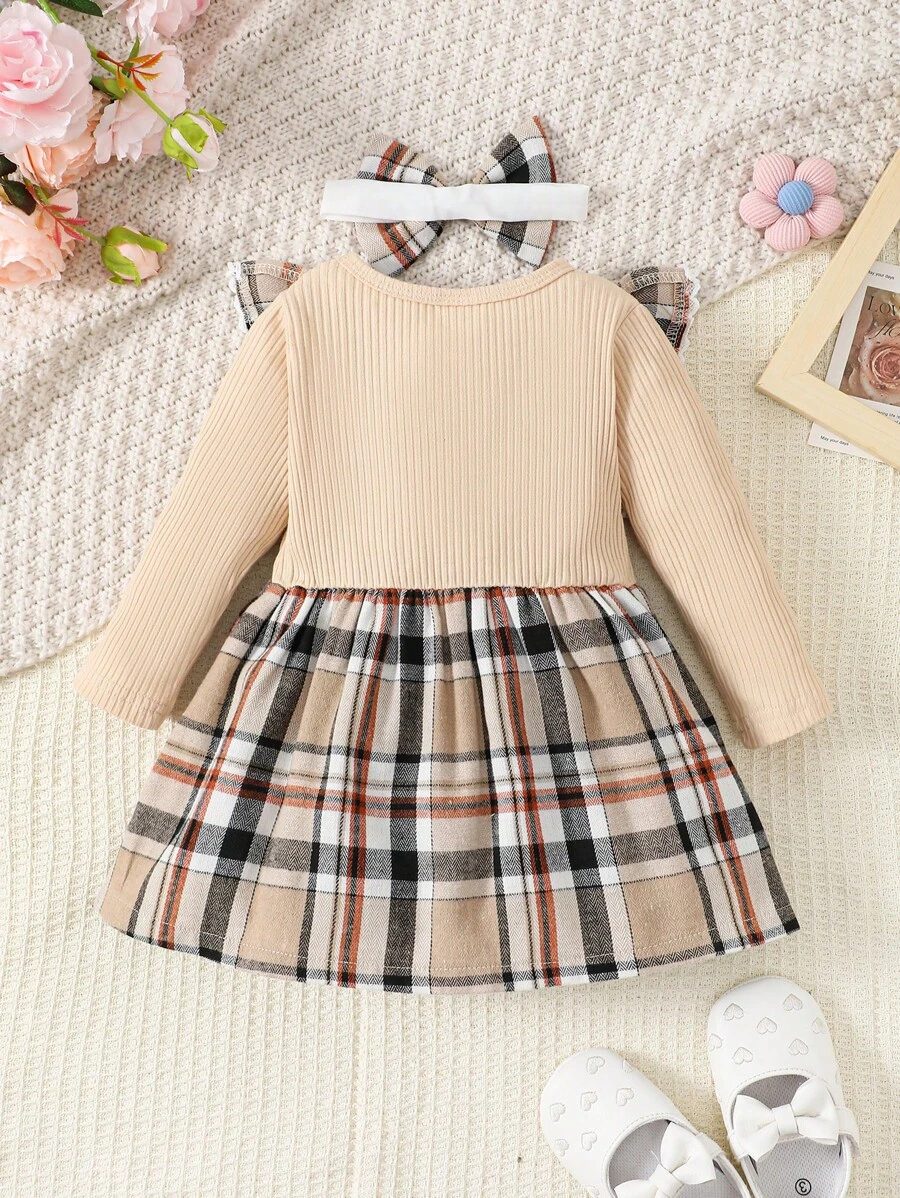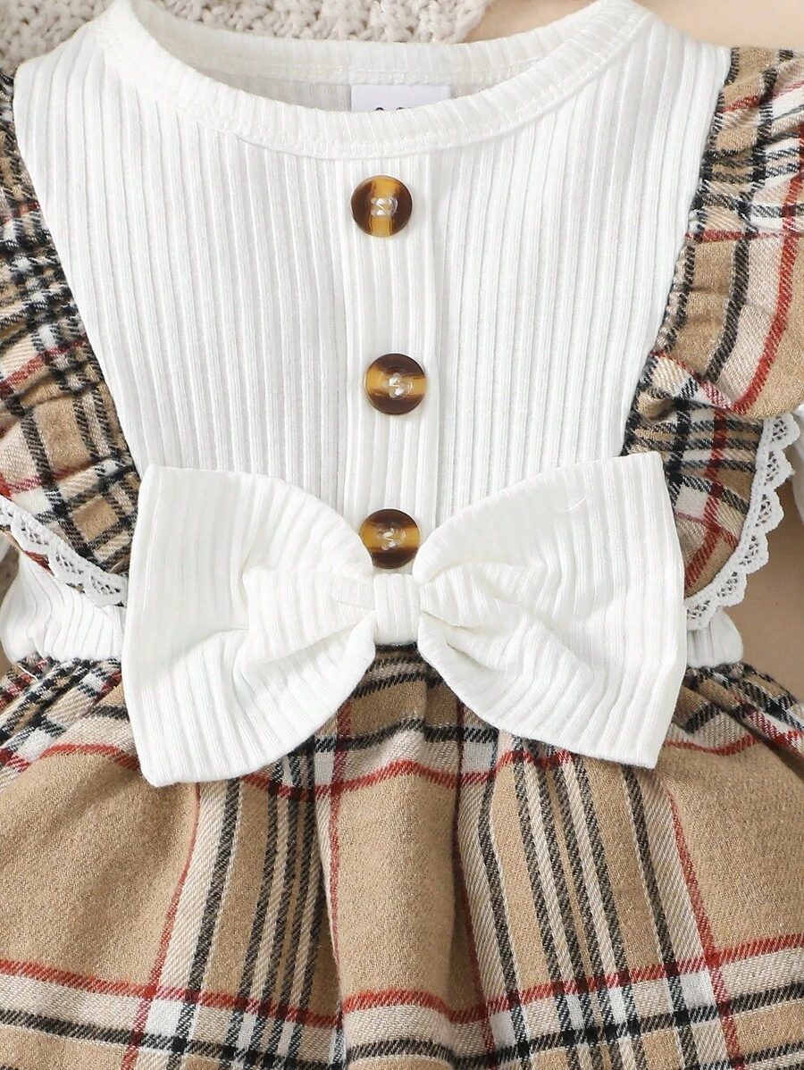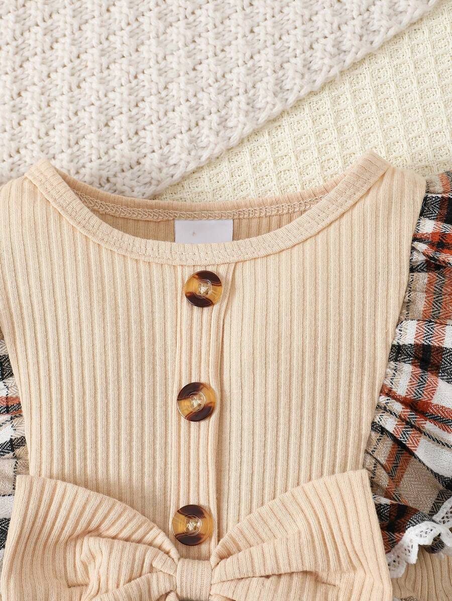 Baby Girl Fashionable 2pcs Ribbed Dress Set, For Christmas WNTD0048