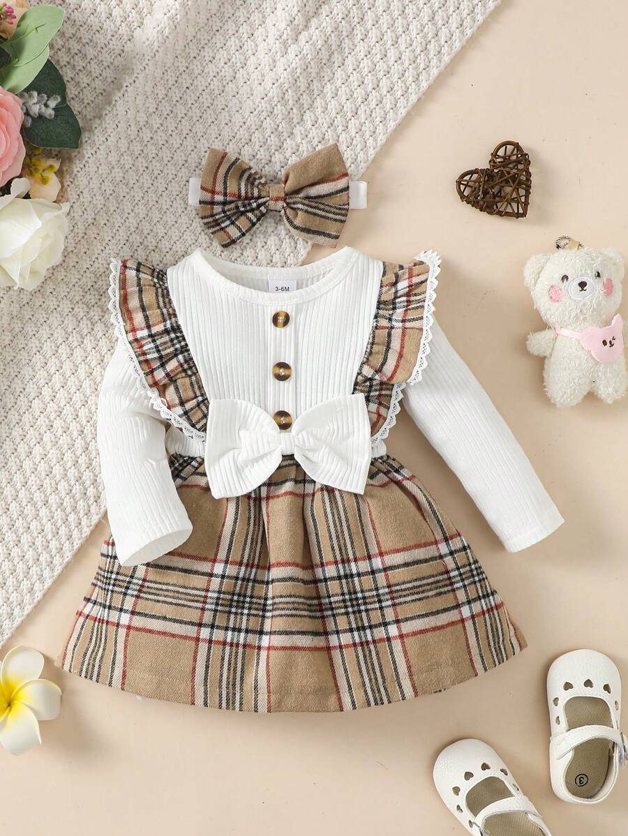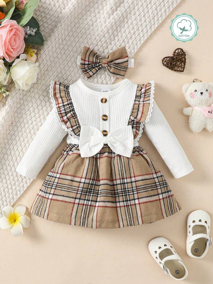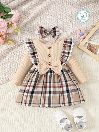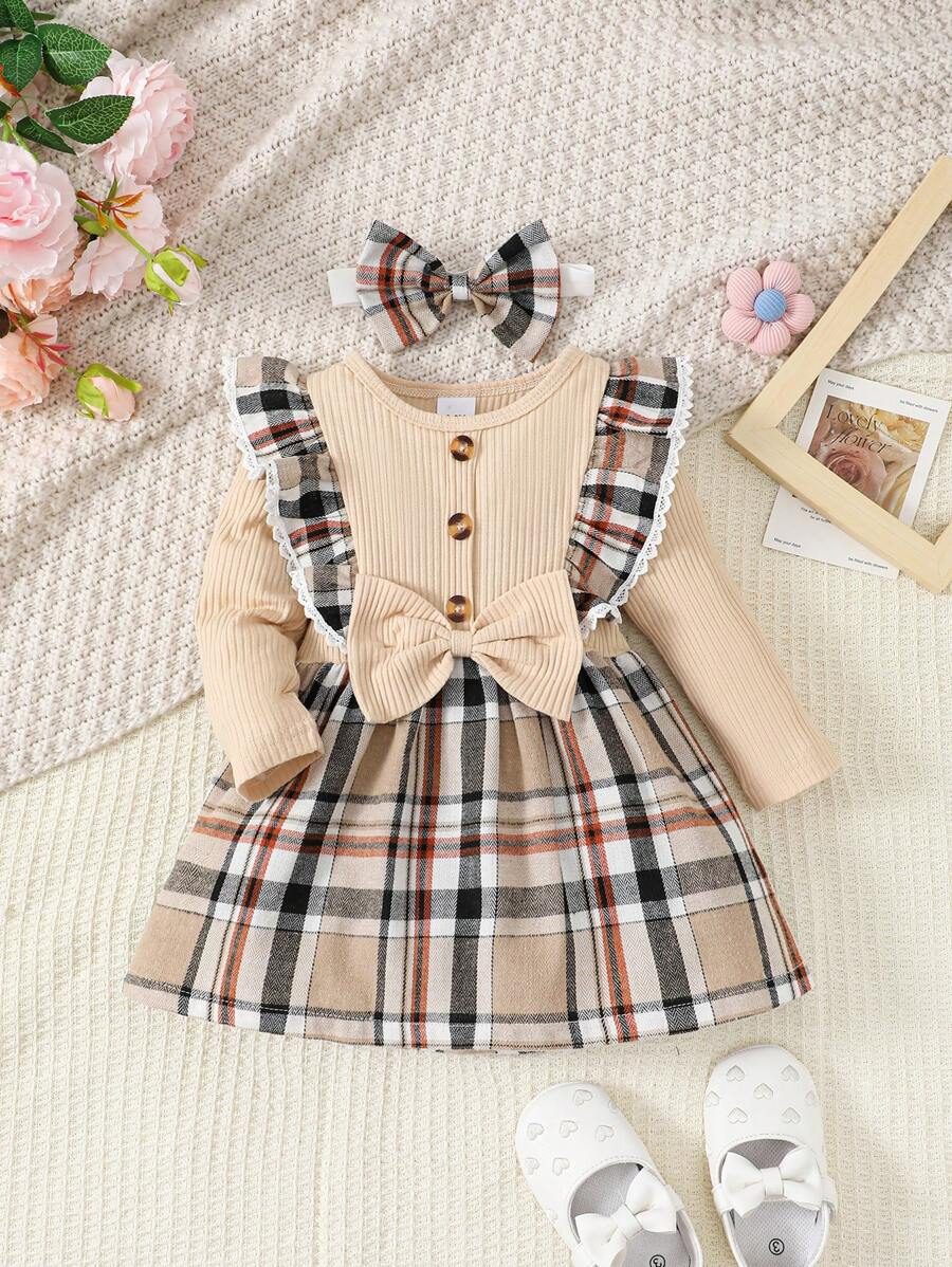 Baby Girl Fashionable 2pcs Ribbed Dress Set, For Christmas WNTD0048