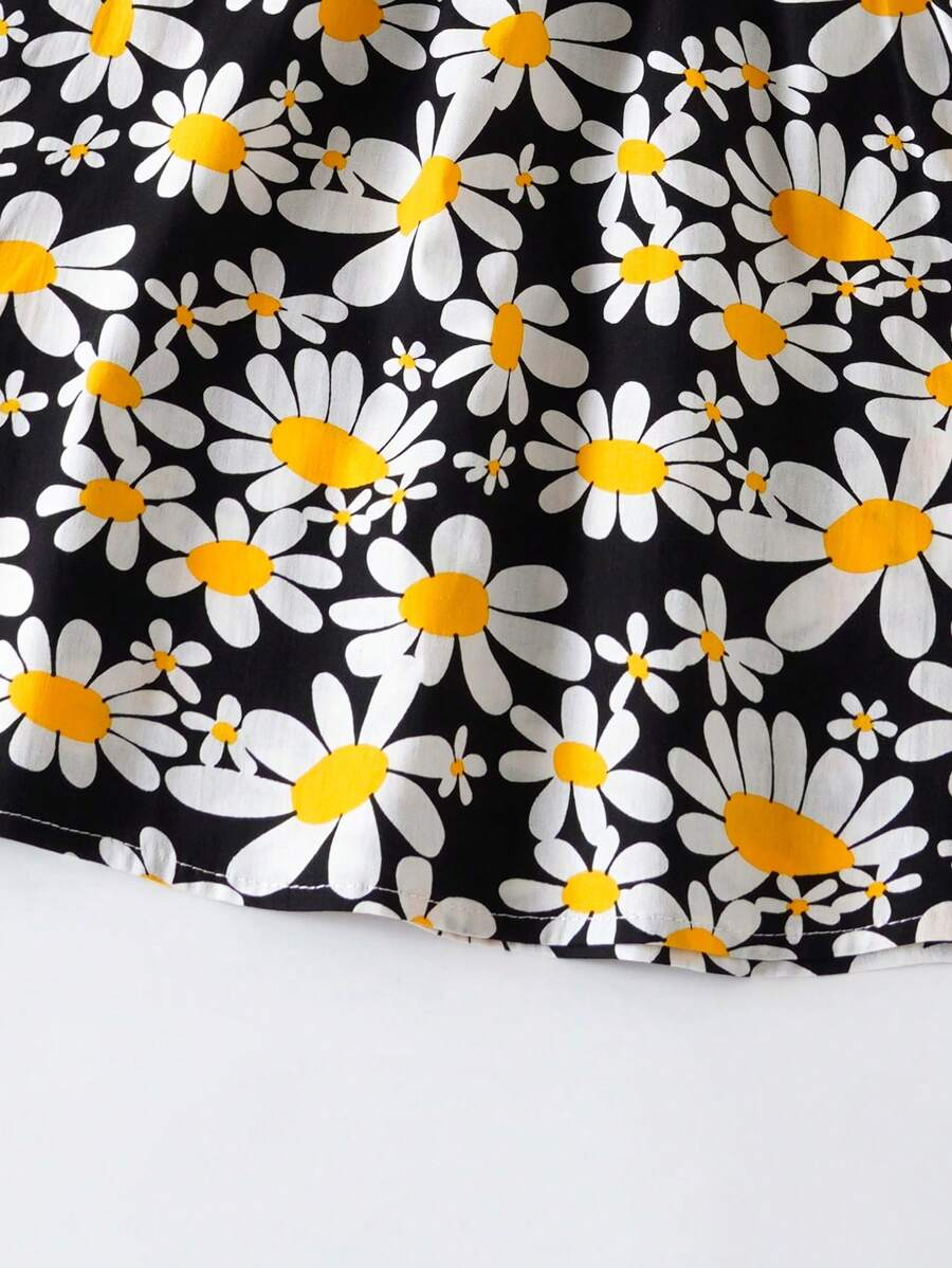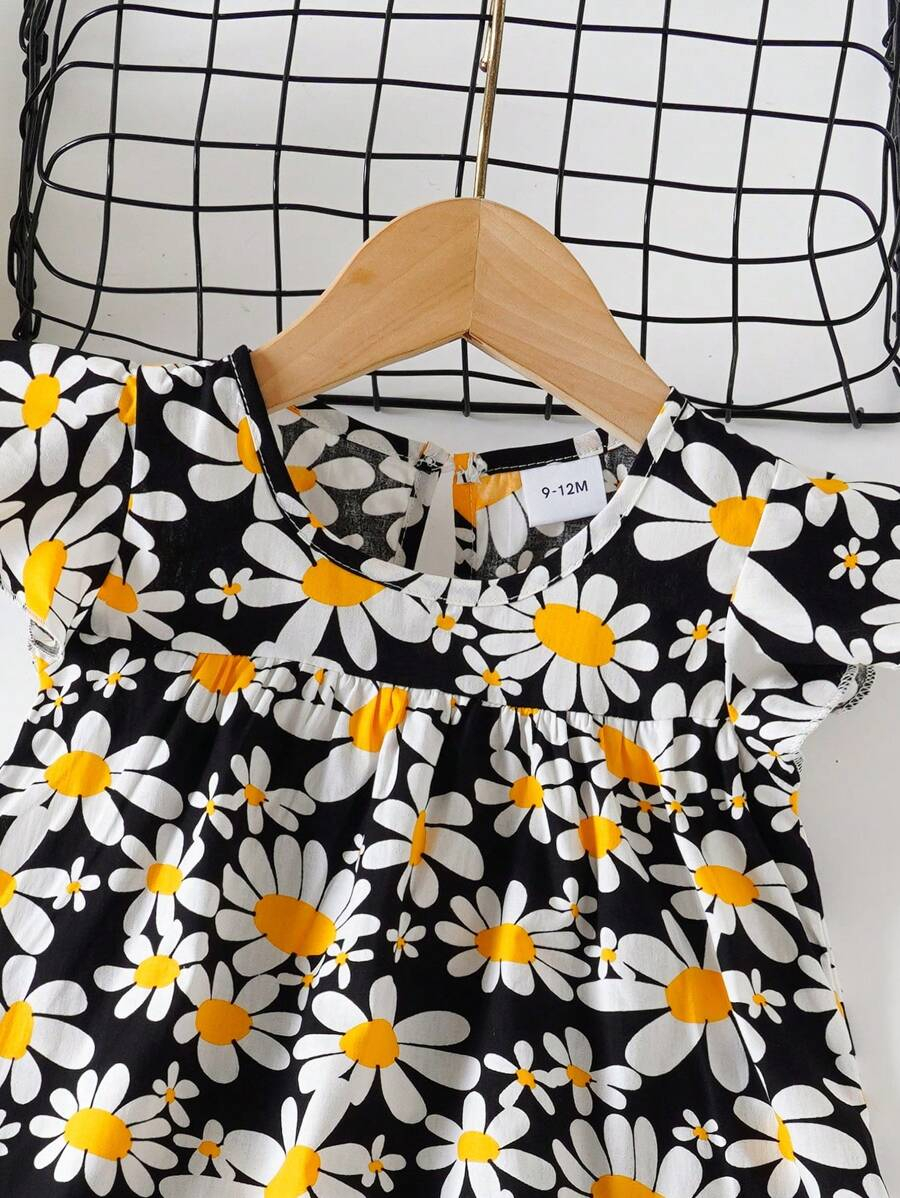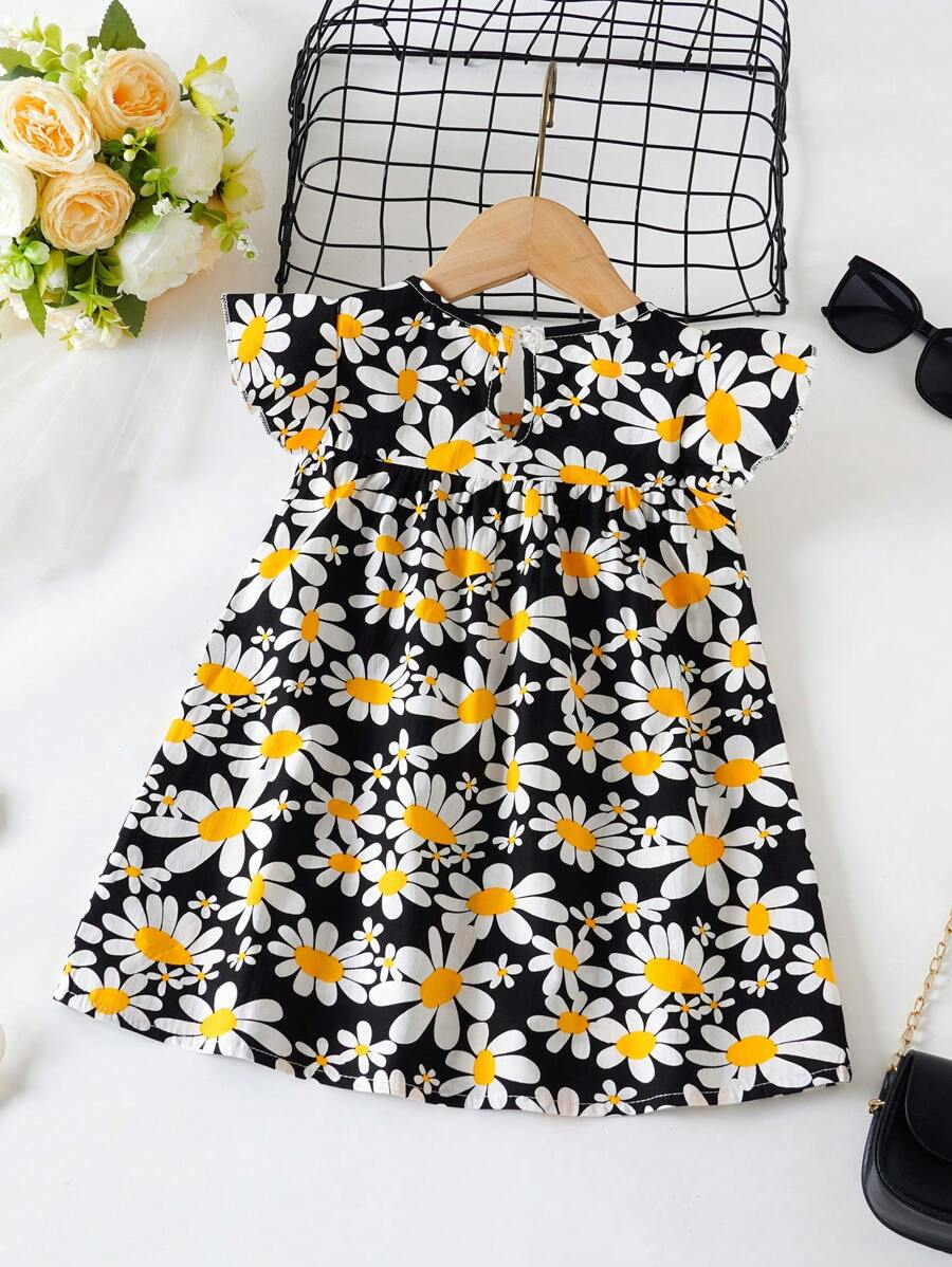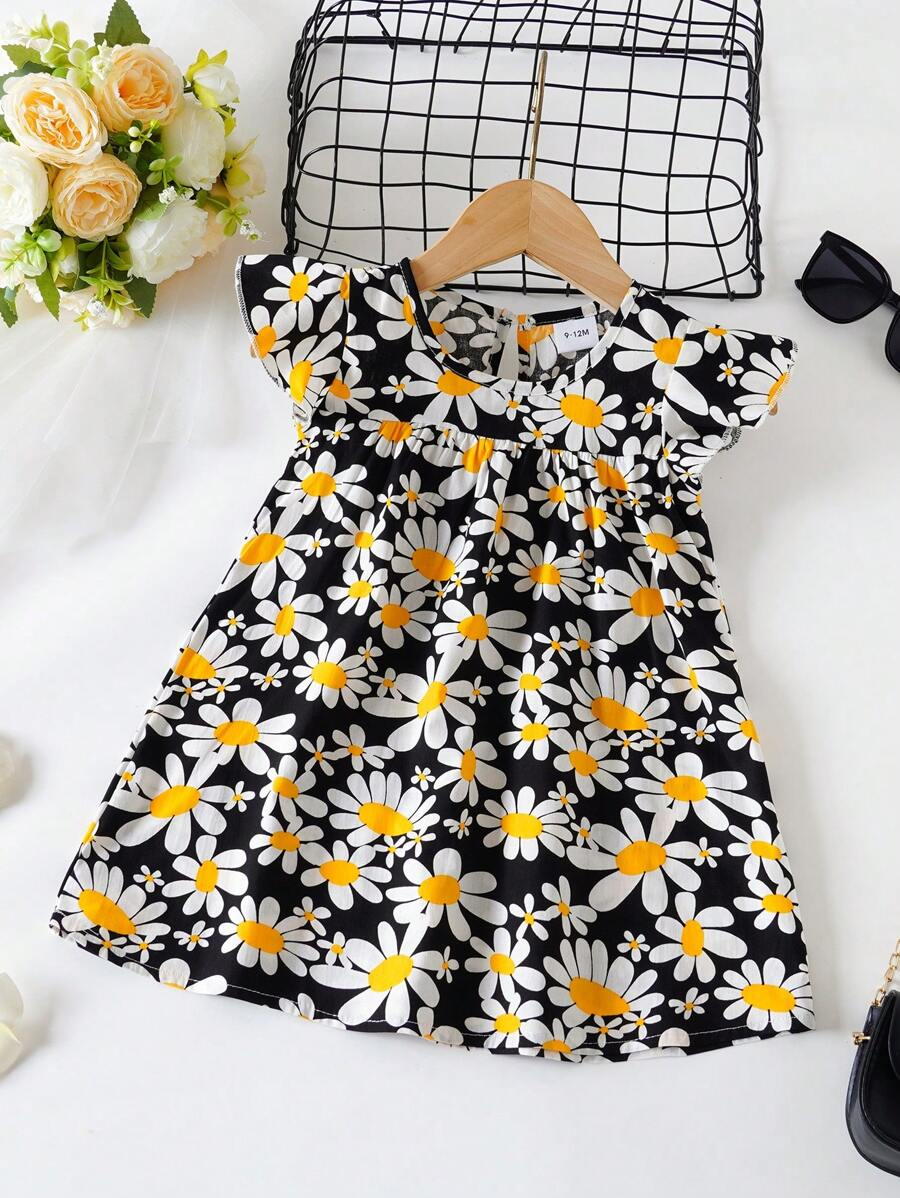The dress perfectly fits my baby girl. Very cute flower design and fits well.