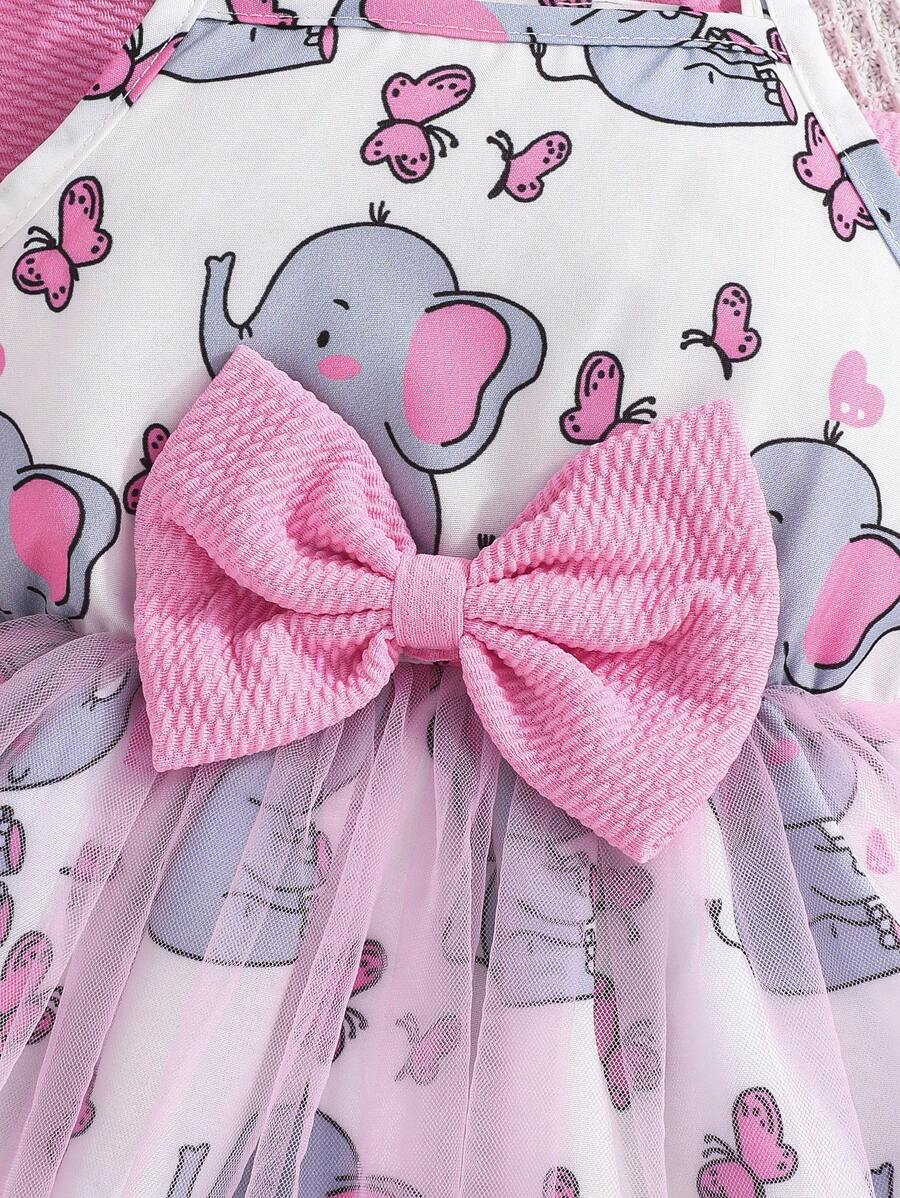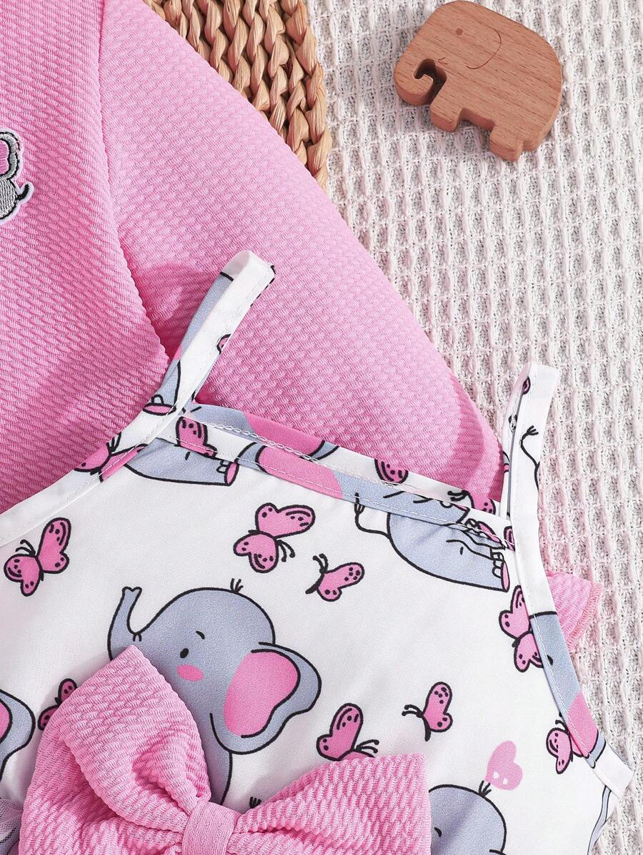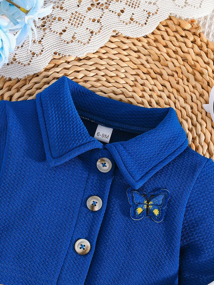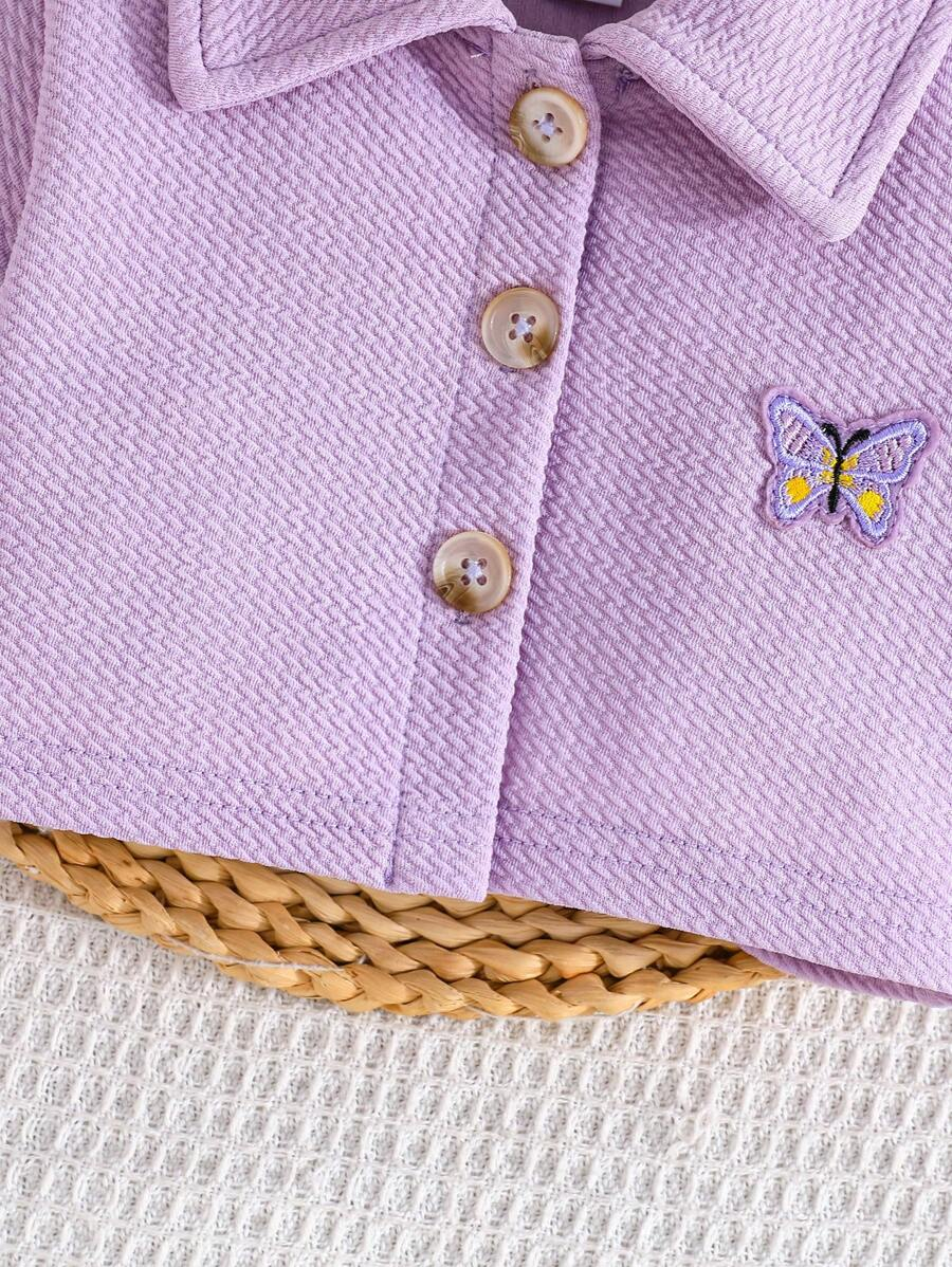Baby Girls’ Elegant Ruffle Trim Long Sleeve Butterfly Embroidered Jacket Paired With Minimalist Butterfly Print Mesh Dress 2pcs Set WNTD0067