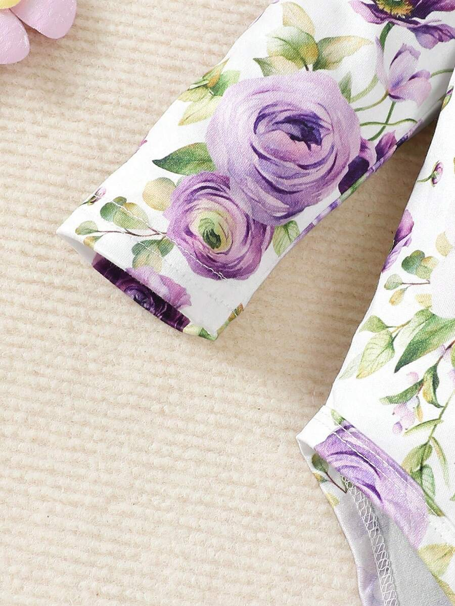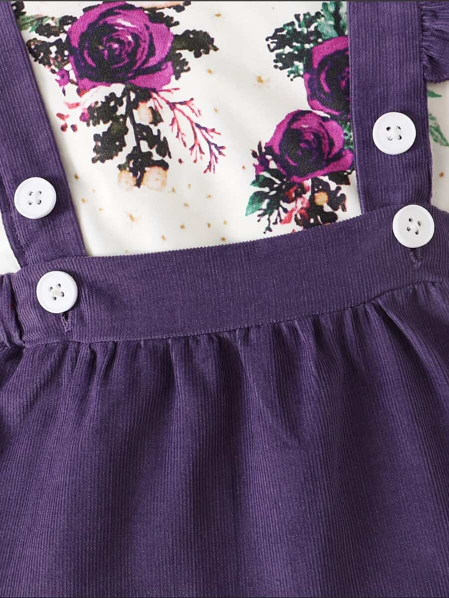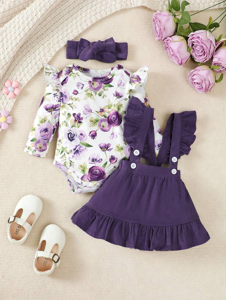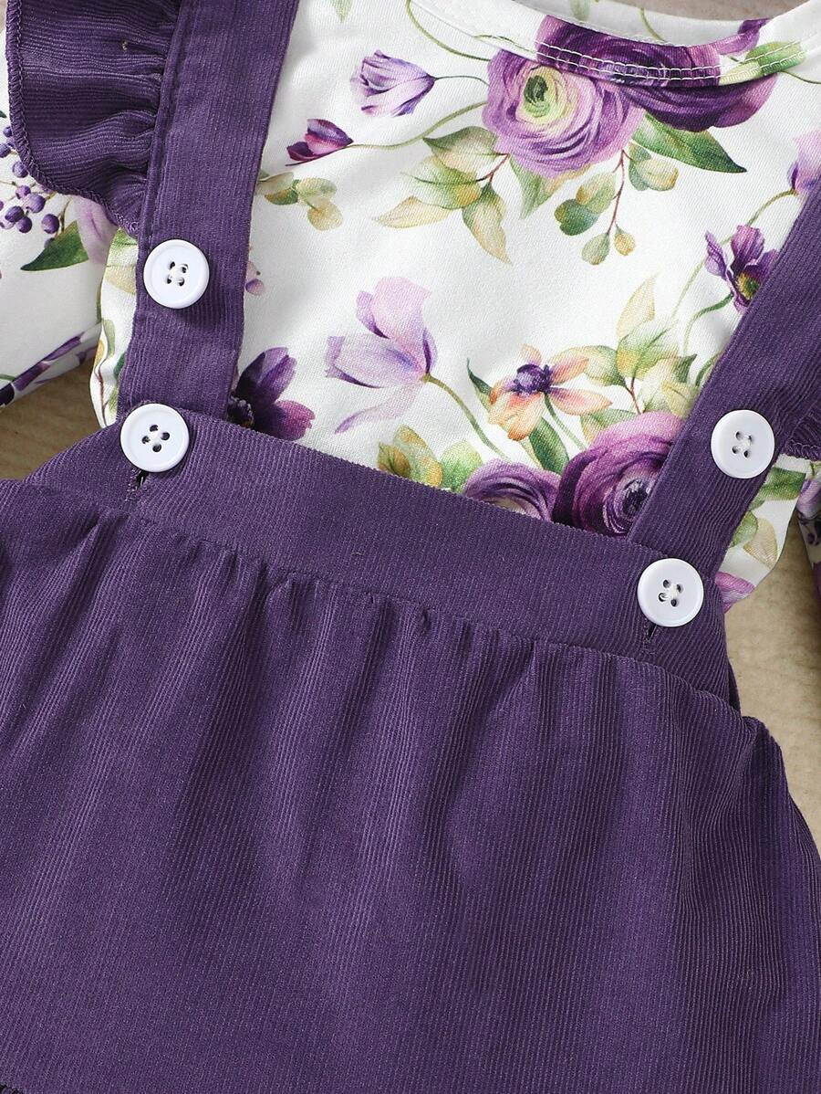 BrownBark Baby Girl 3pcs Set Ditsy Floral Long Sleeve Blouse And Solid Color Suspender Dress And Headpiece, Autumn-Winter WNTD0063