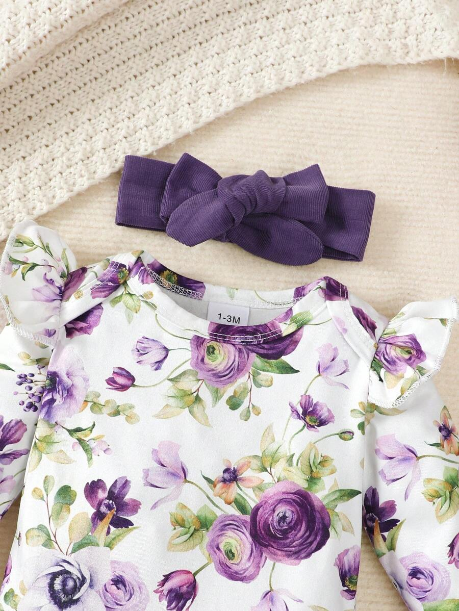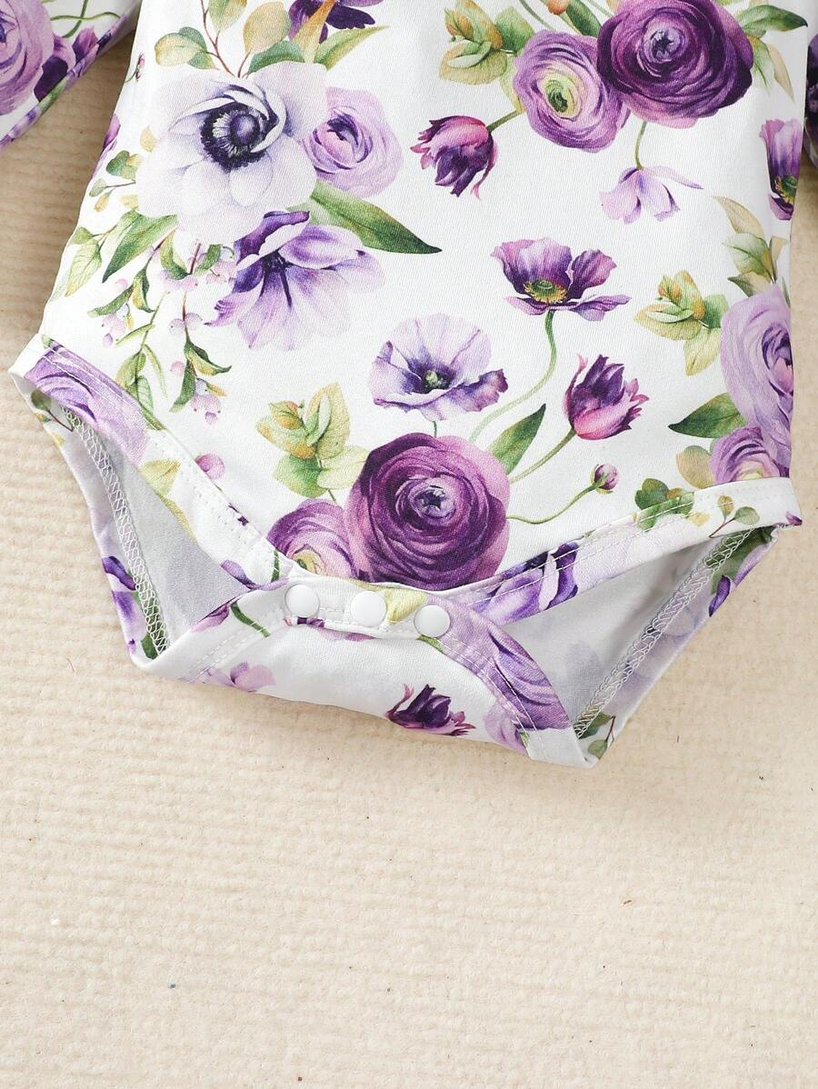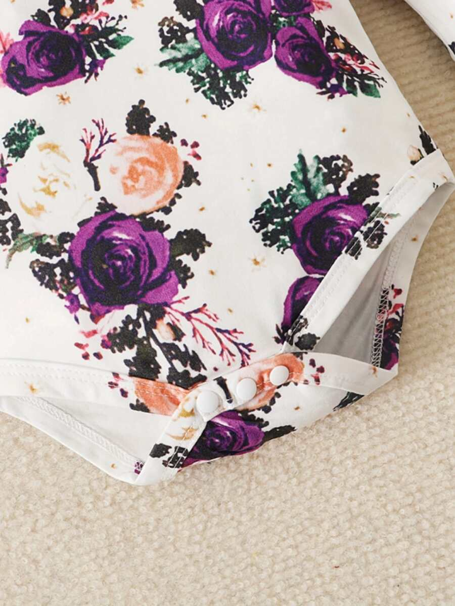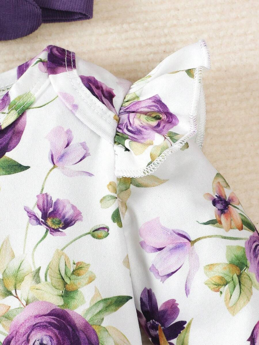 BrownBark Baby Girl 3pcs Set Ditsy Floral Long Sleeve Blouse And Solid Color Suspender Dress And Headpiece, Autumn-Winter WNTD0063