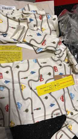 Looks exactly as shown in the picture, love the cute print and material is 96% cotton. Happy with my purchase 😊