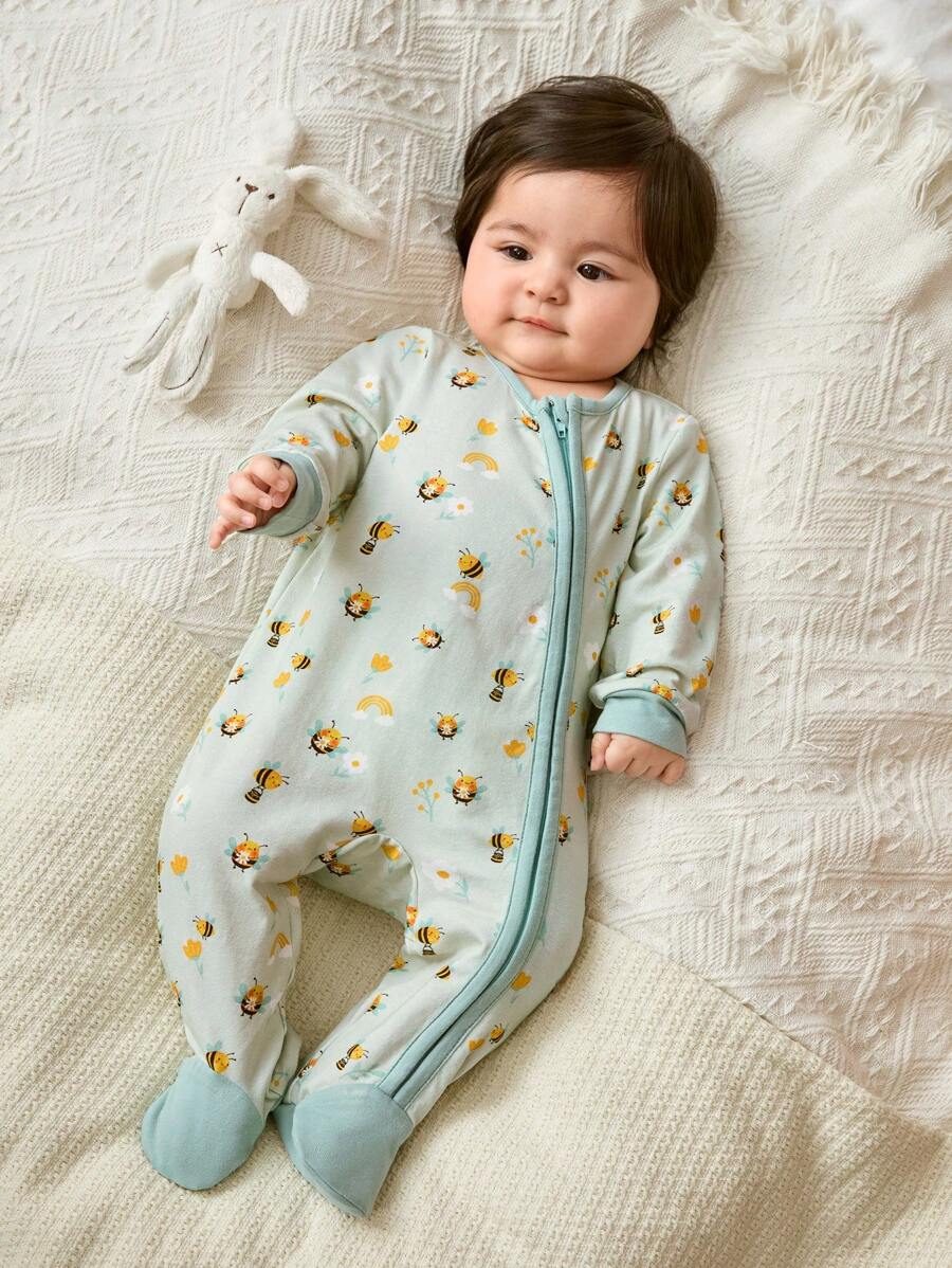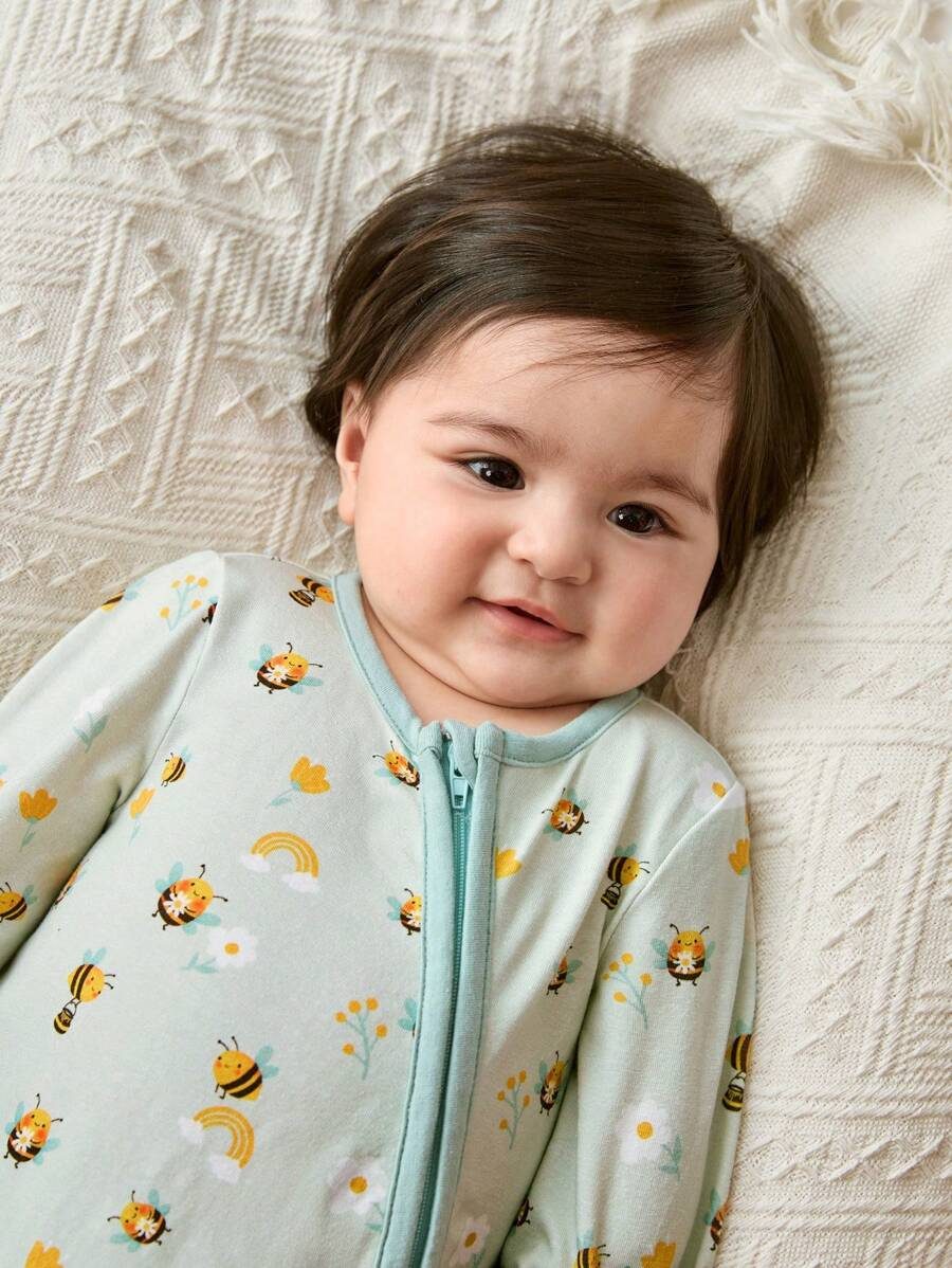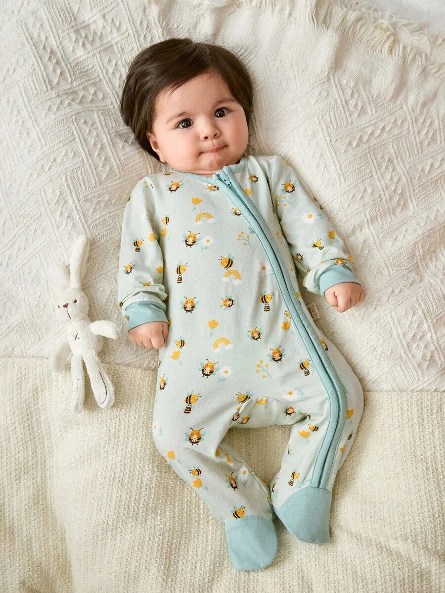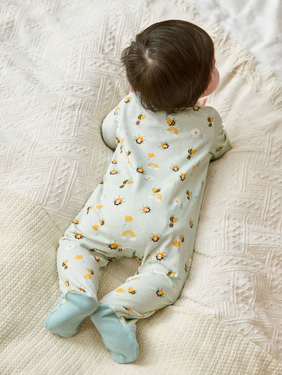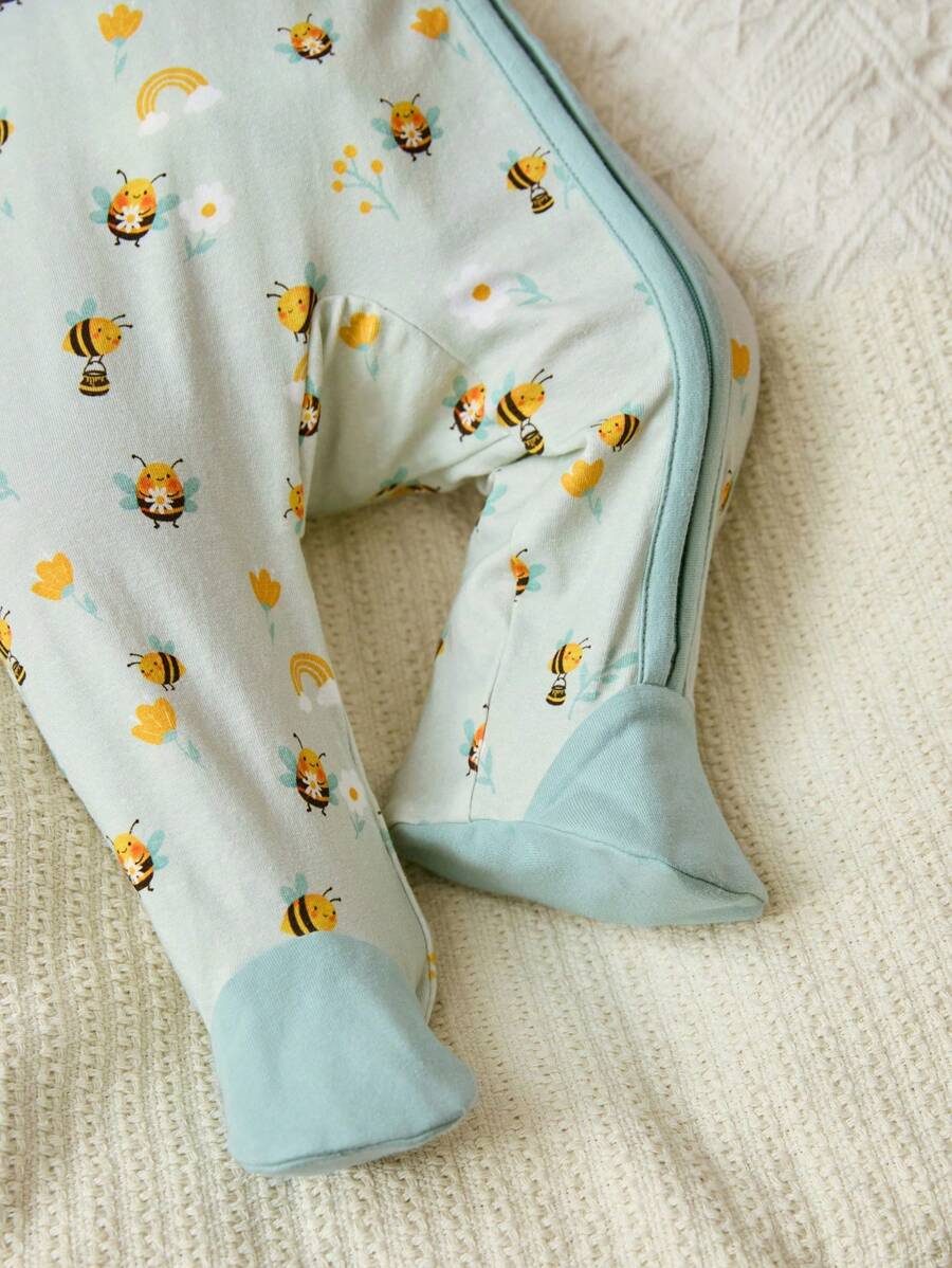 Cozy Pixies Newborn Baby Girl Cartoon Bee & Flower Pattern Knitted Soft Colorblock Crew Neck Long Sleeve Romper With Pants NB00018