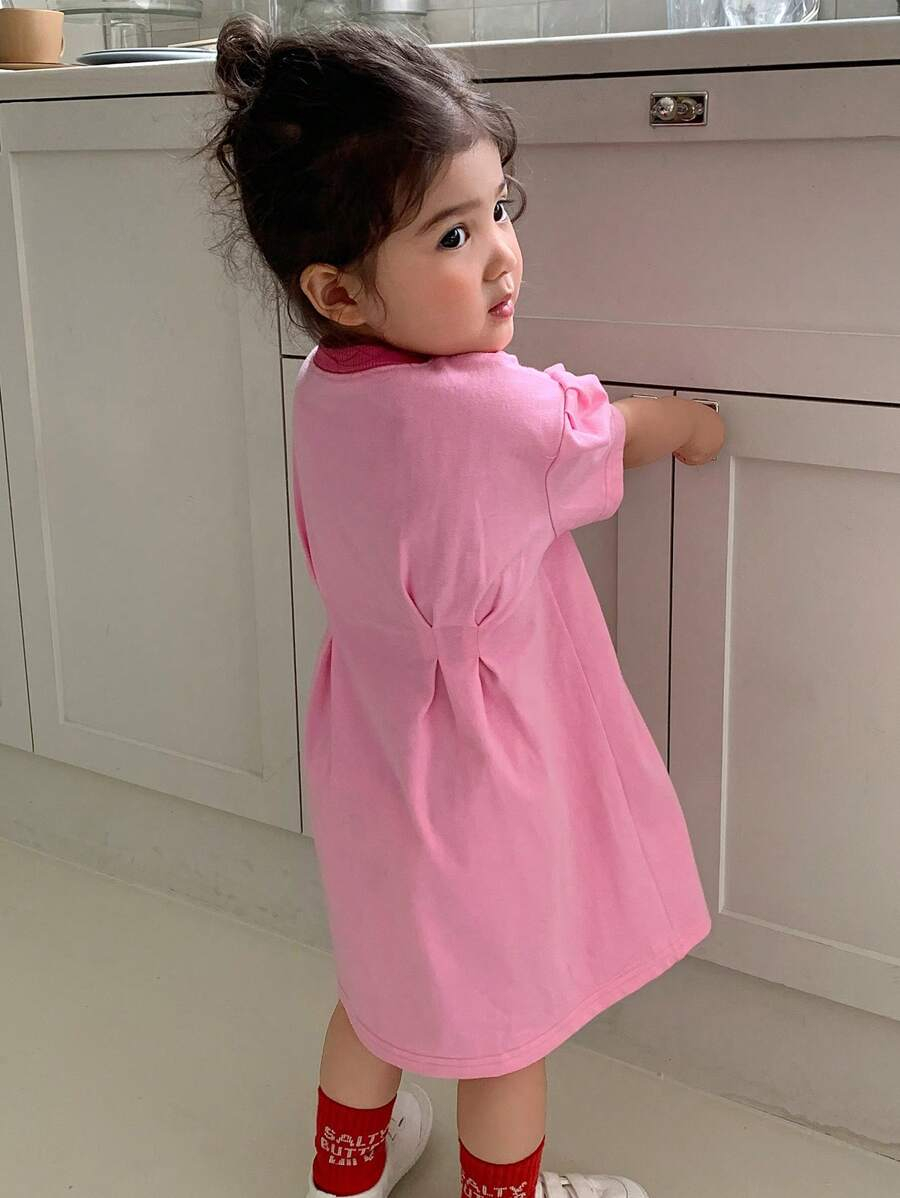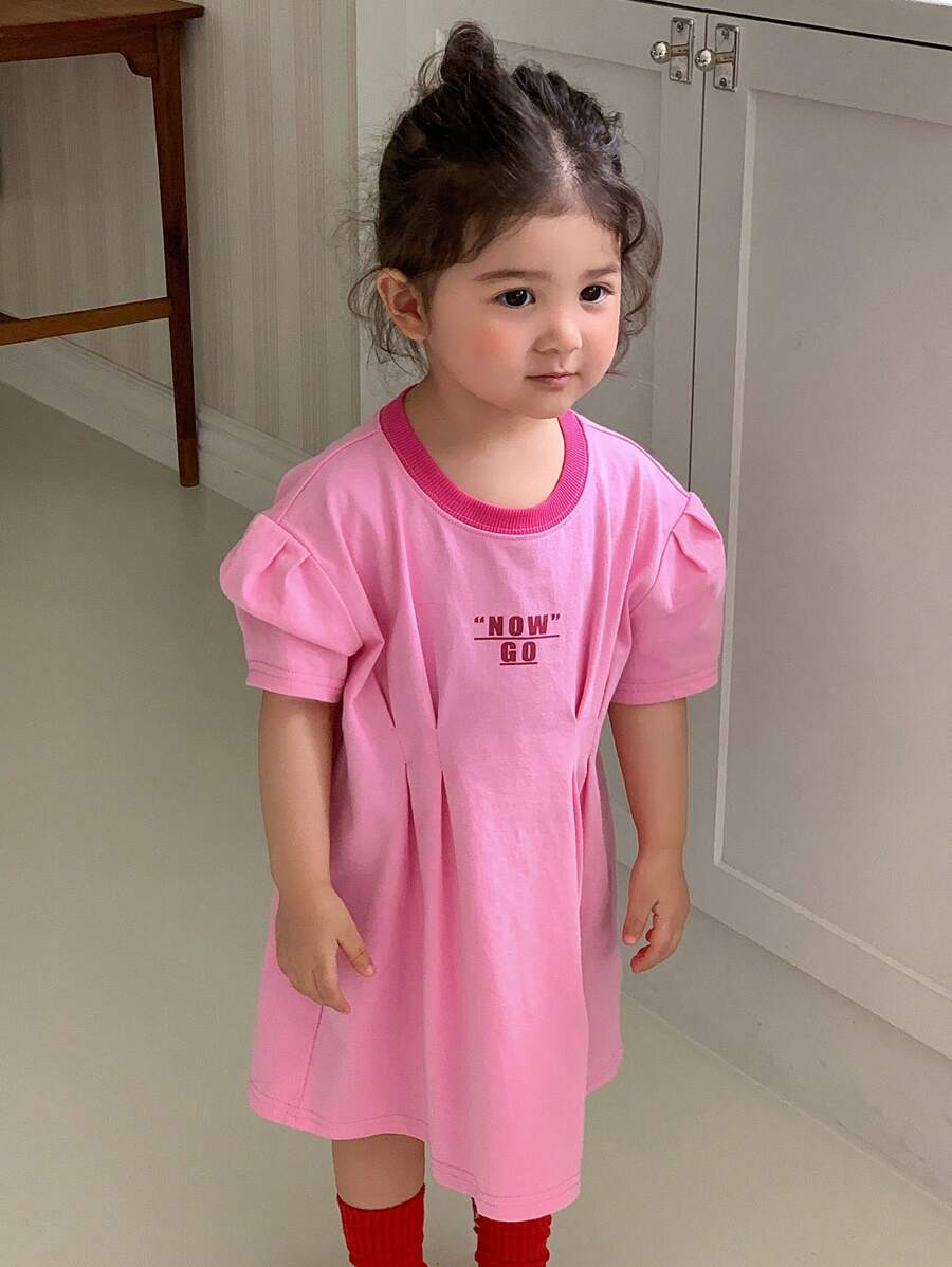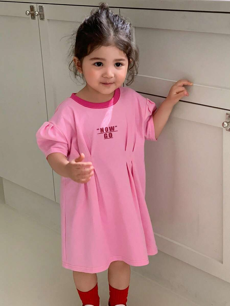 Hapijoa Toddler Girls Casual Letter Print Round Neck Short Sleeve Dress BG00047