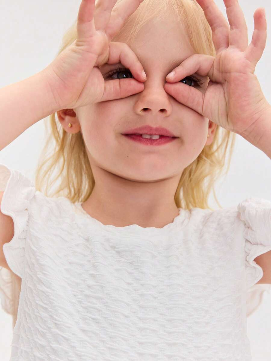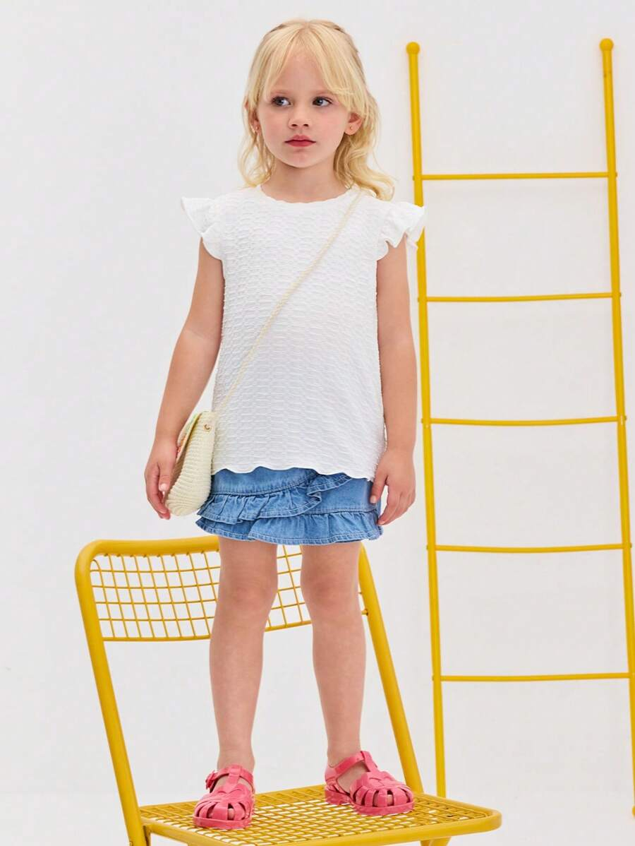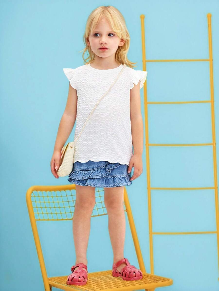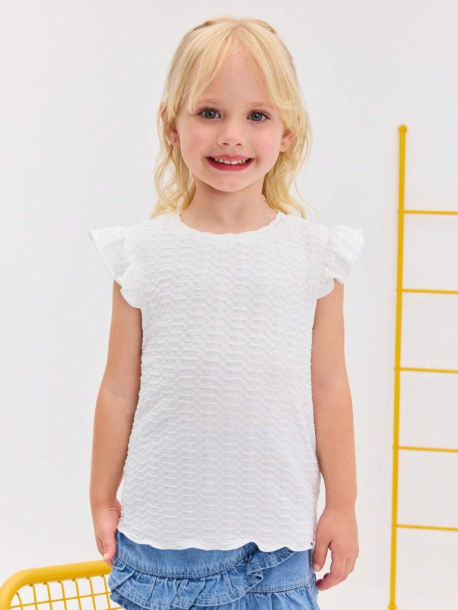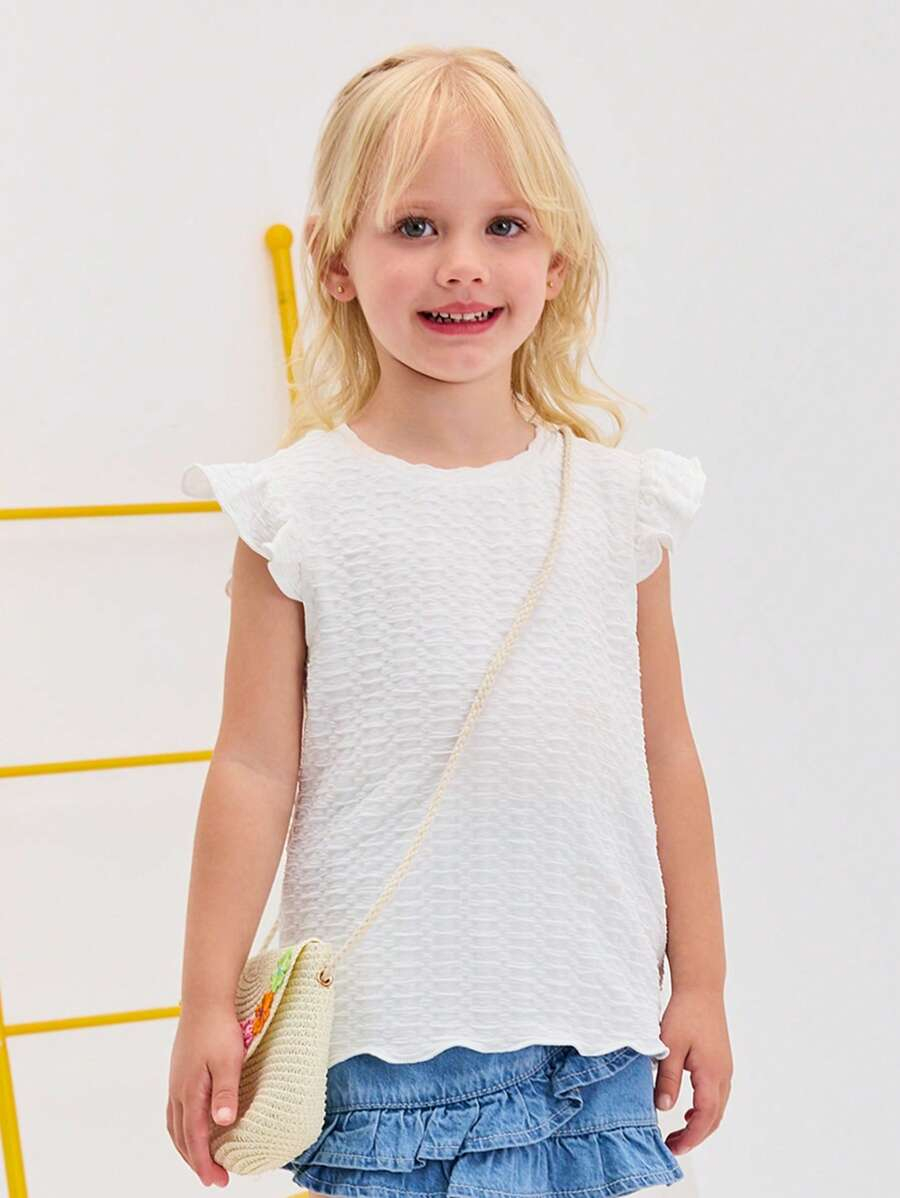 Leap Crew Leap Crew Young Girl Casual Minimalist Comfortable Round Neck Cap Sleeve Wavy Hem T-Shirt YG00048