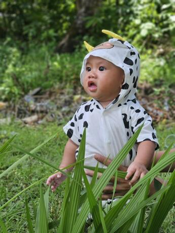 the romper is very cute and fits perfectly on my son. The texture is also good for sunmer season. what u see is what u get.