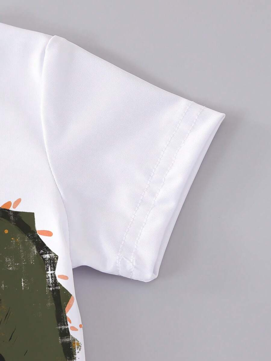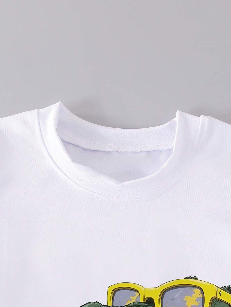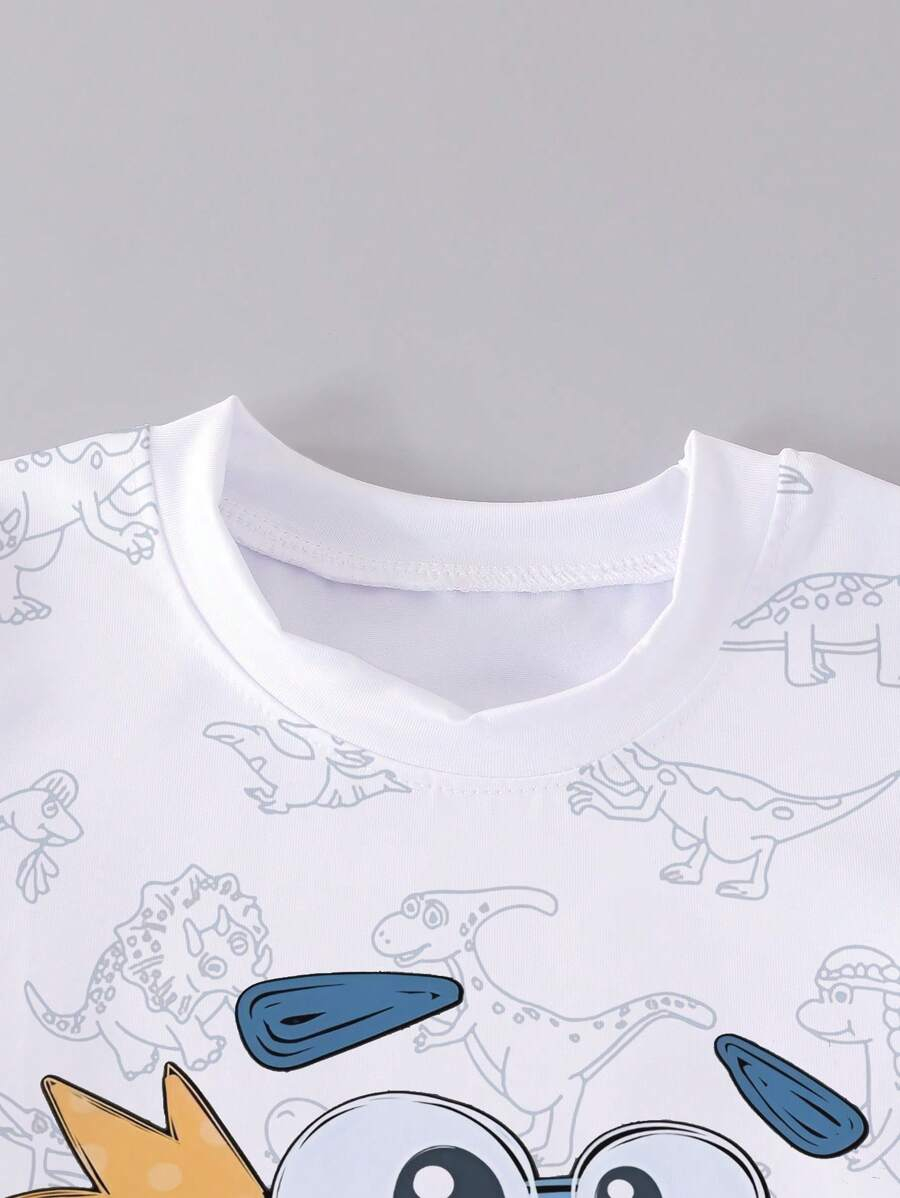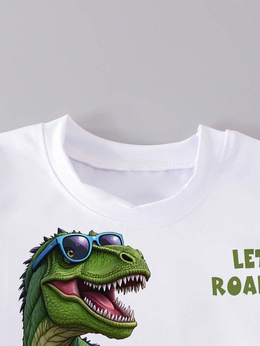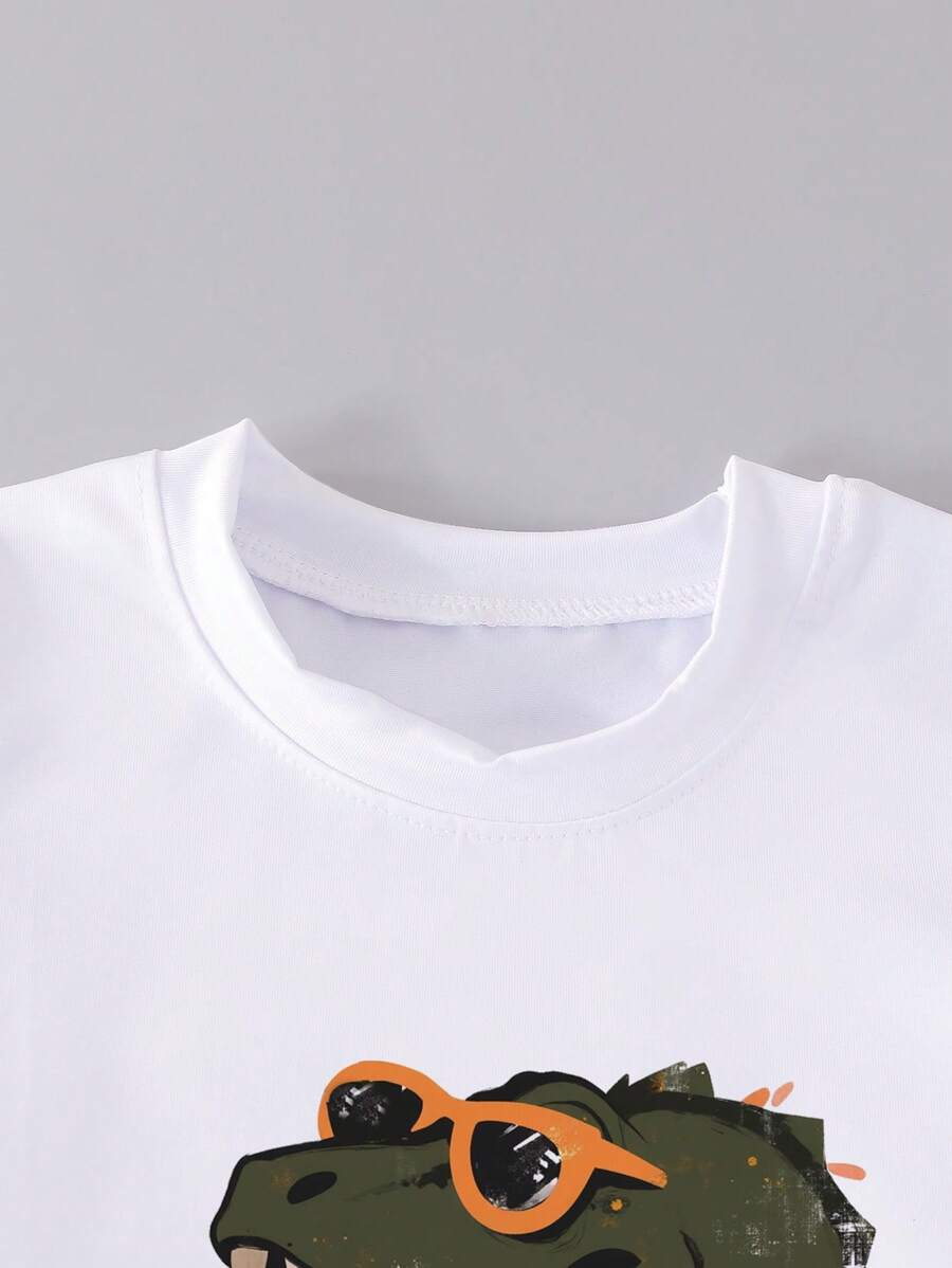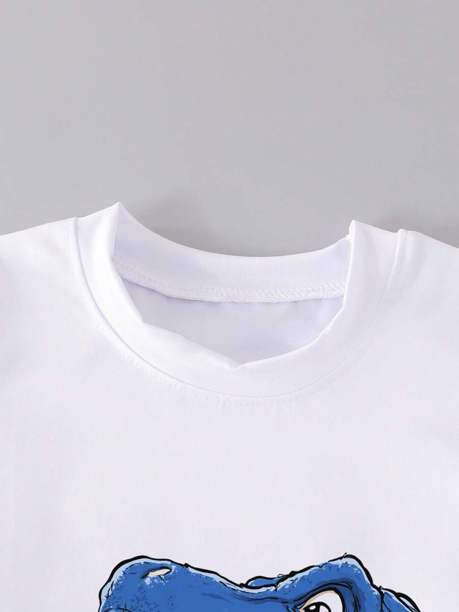 SHEIN 1 Set Toddler Boys Cartoon Dinosaur Print Short Sleeve T-Shirt And Shorts Set, Lightweight For Daily Wear, Suitable For Spring/Summer Dinosaur Clothes For Boys Summer Holiday YB00009