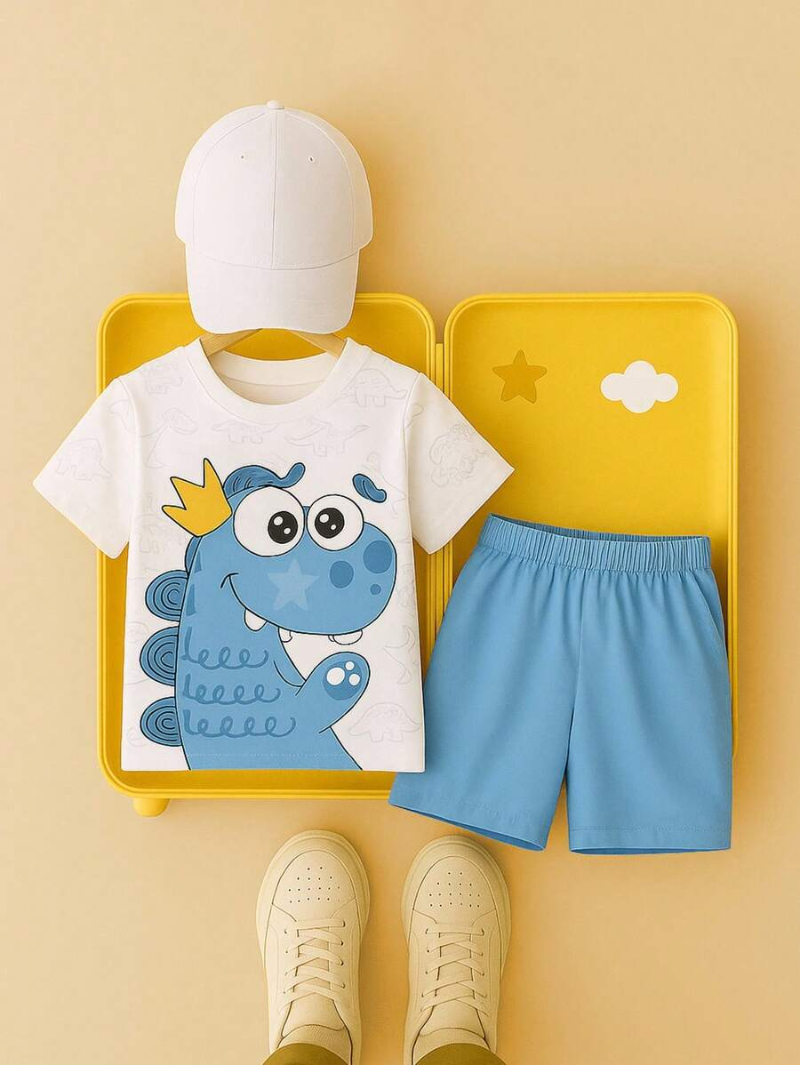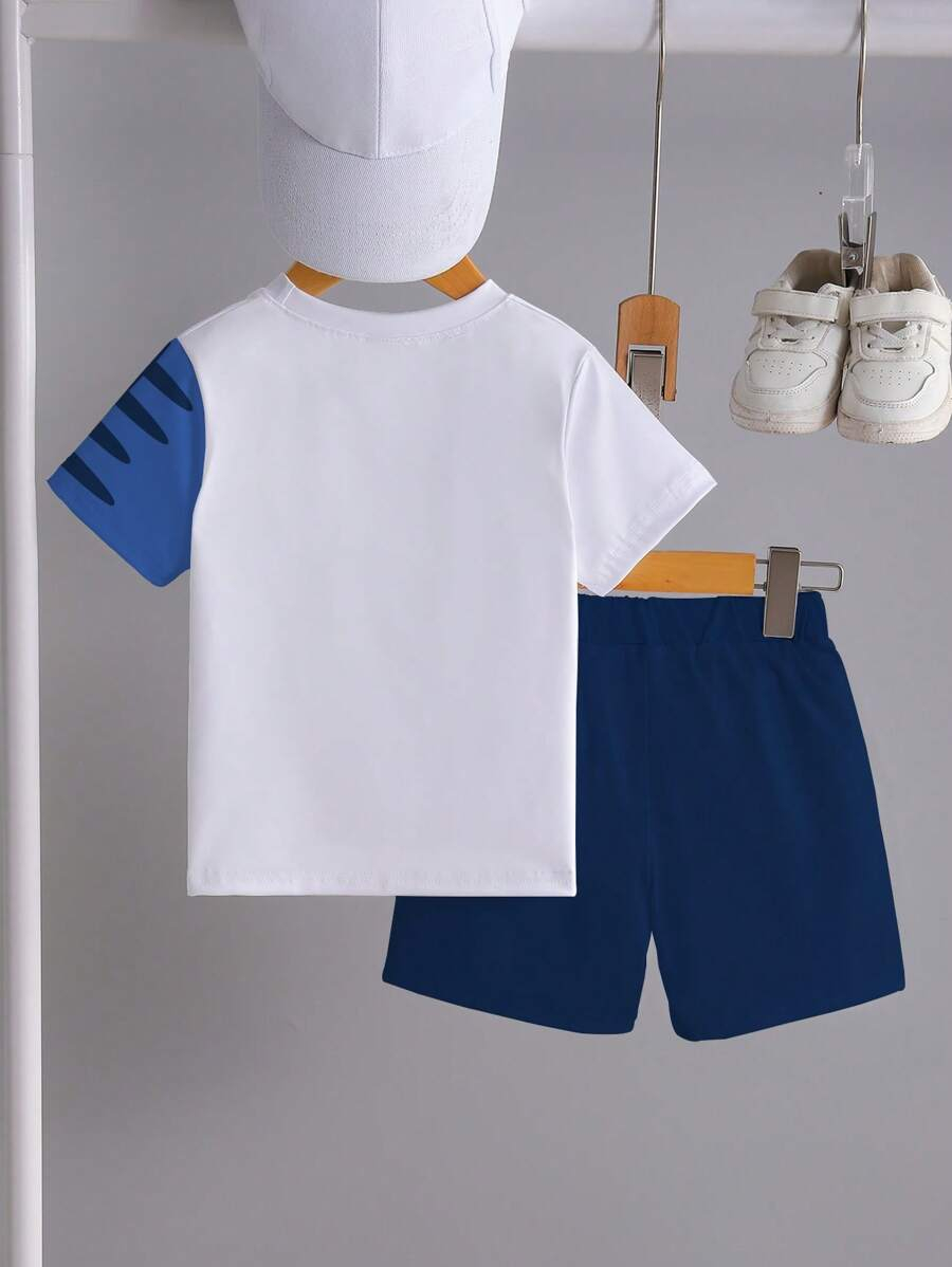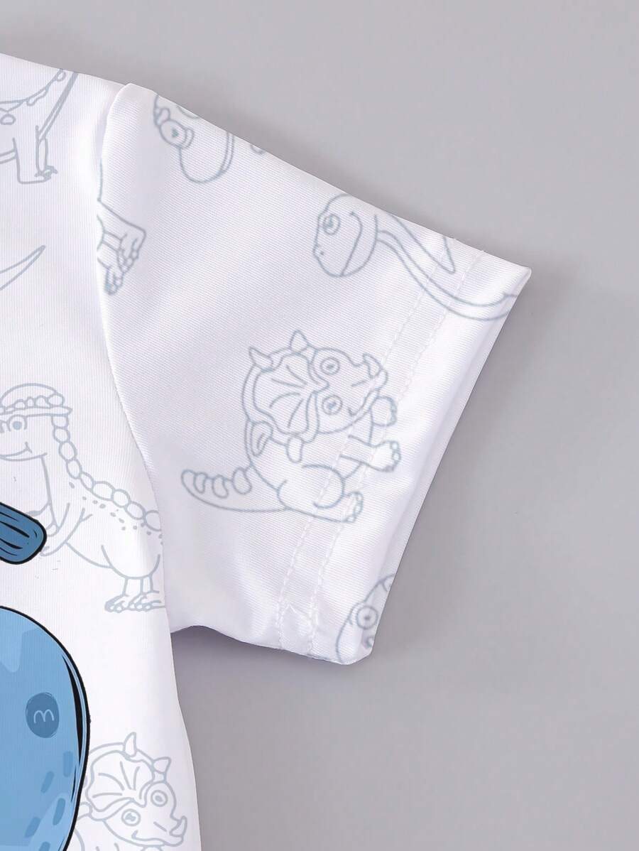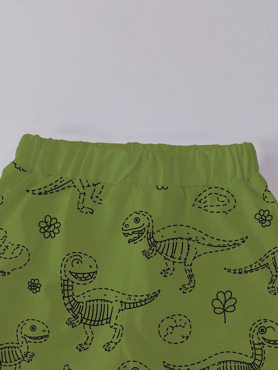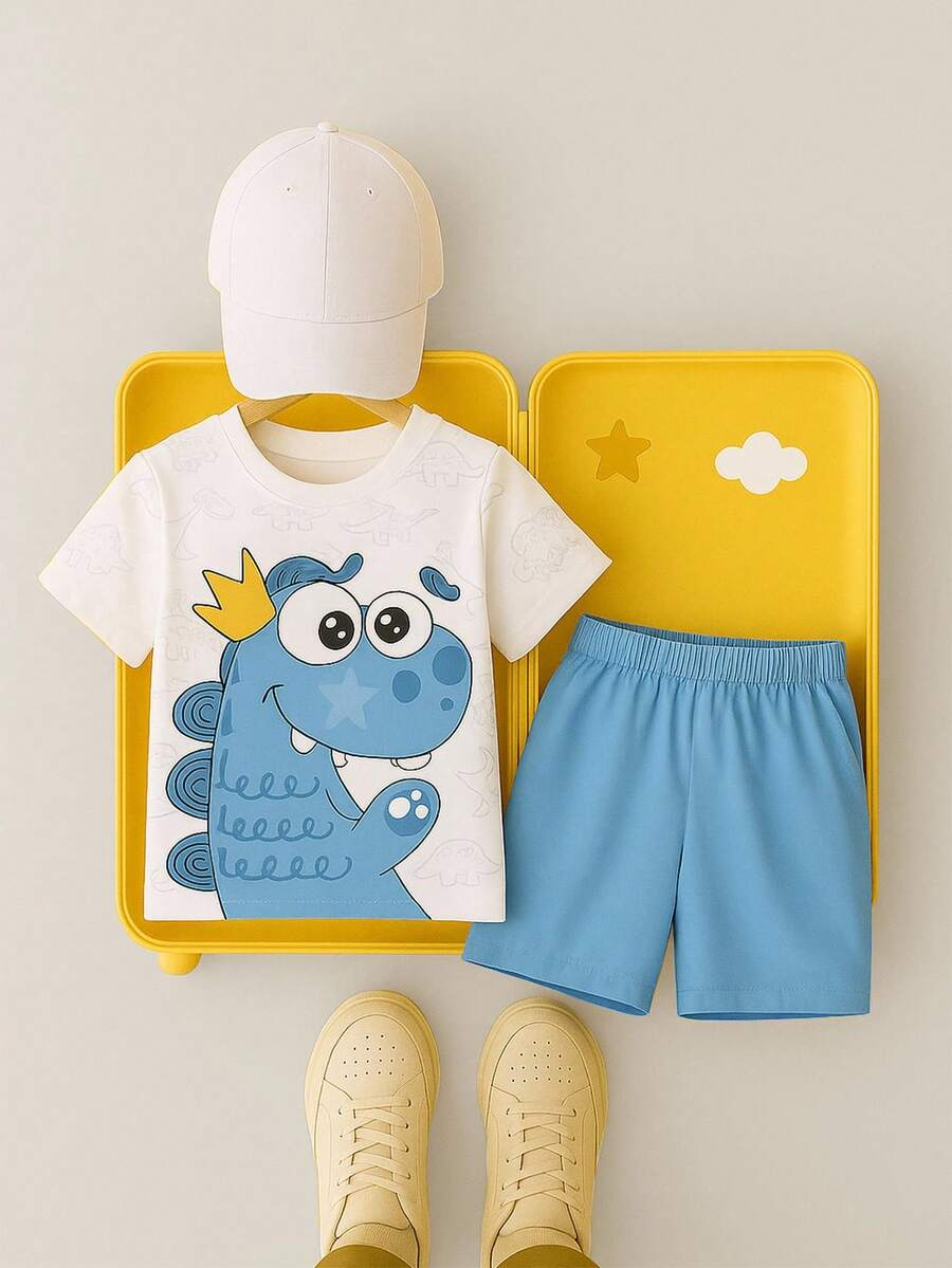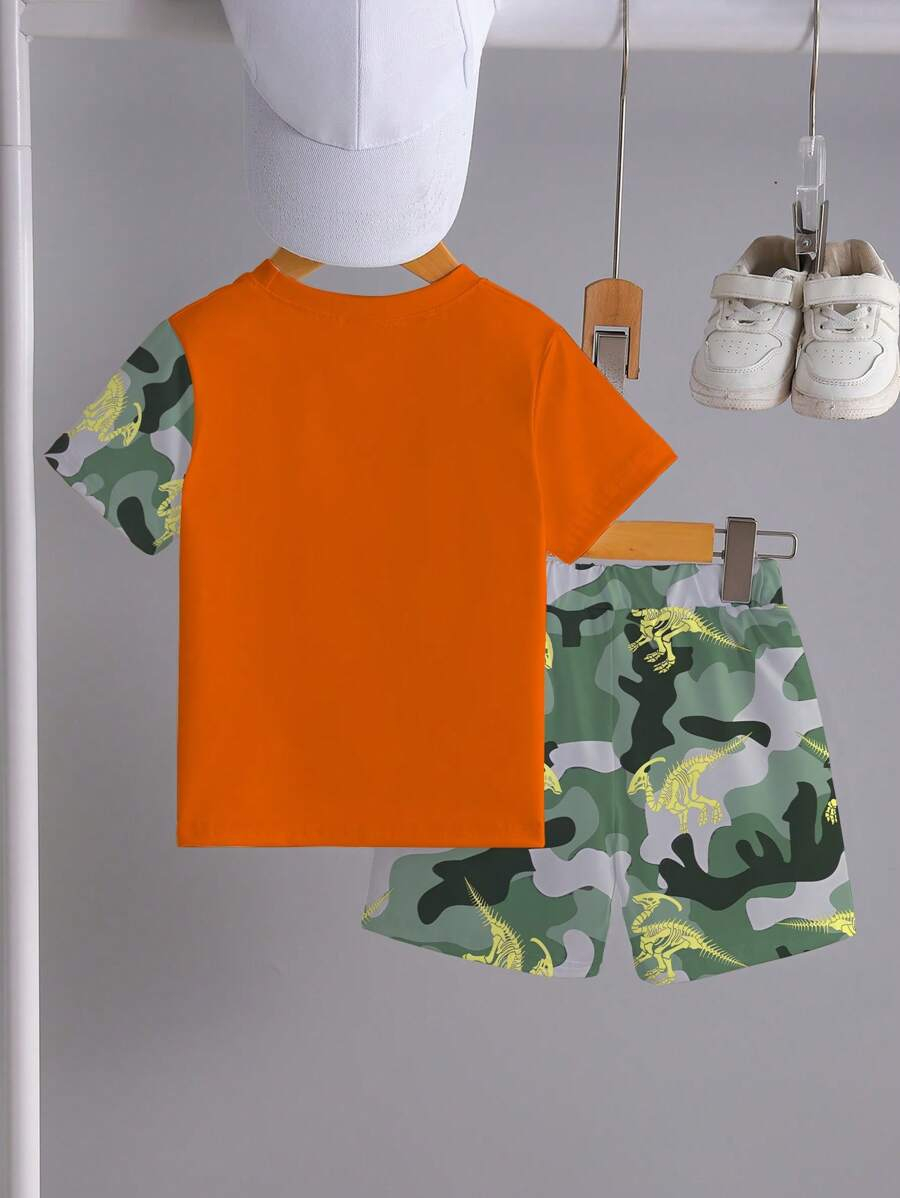 SHEIN 1 Set Toddler Boys Cartoon Dinosaur Print Short Sleeve T-Shirt And Shorts Set, Lightweight For Daily Wear, Suitable For Spring/Summer Dinosaur Clothes For Boys Summer Holiday YB00009